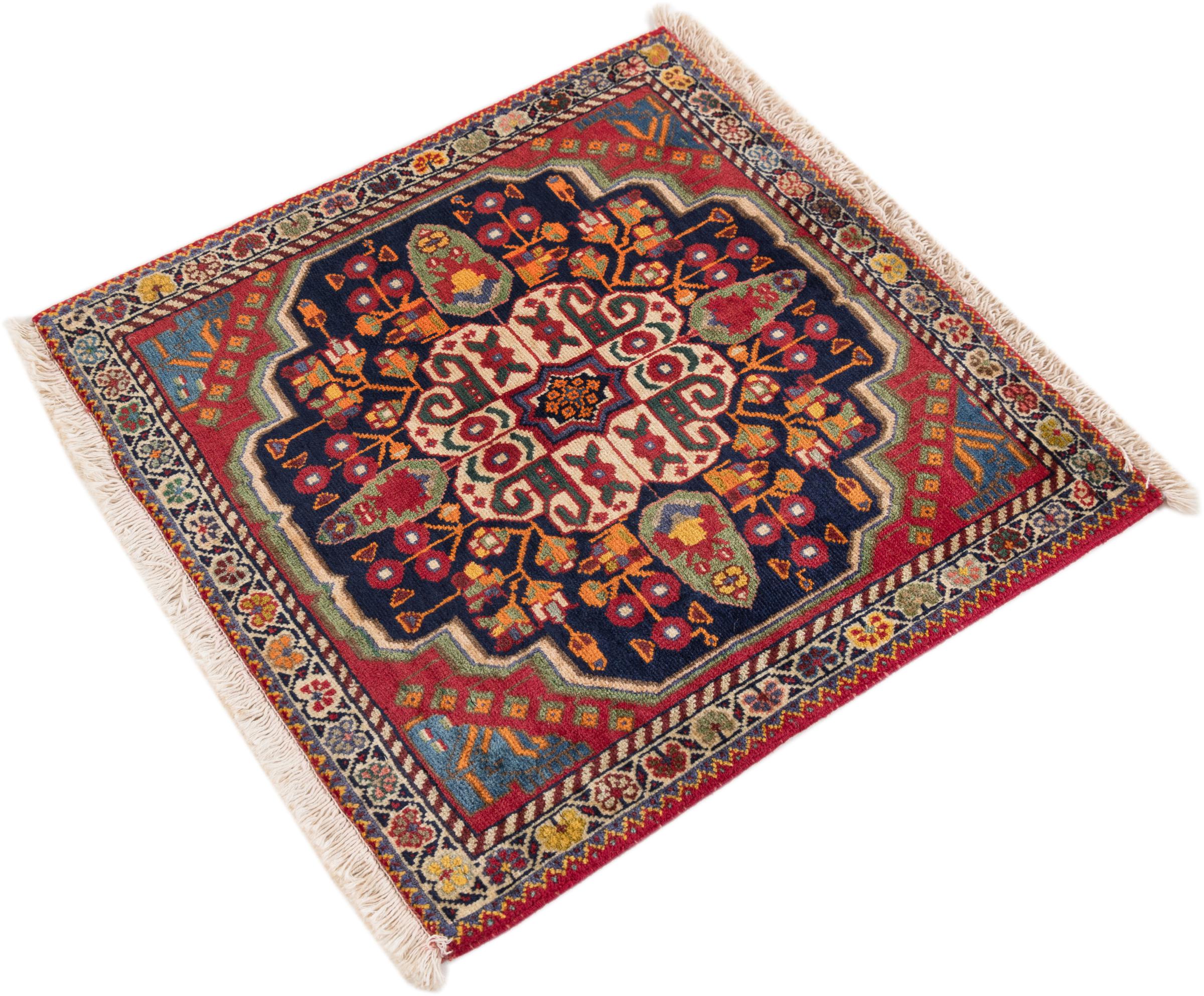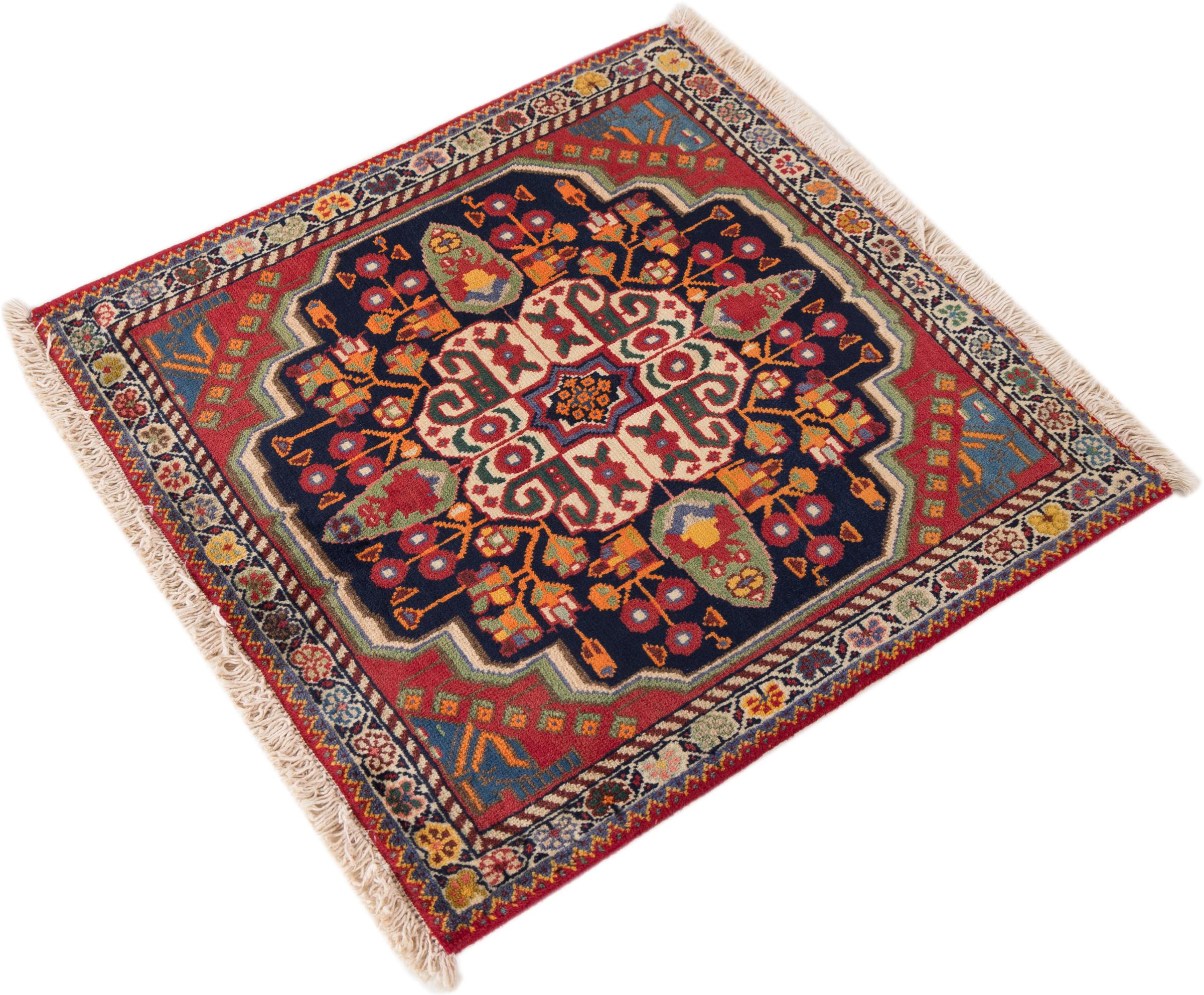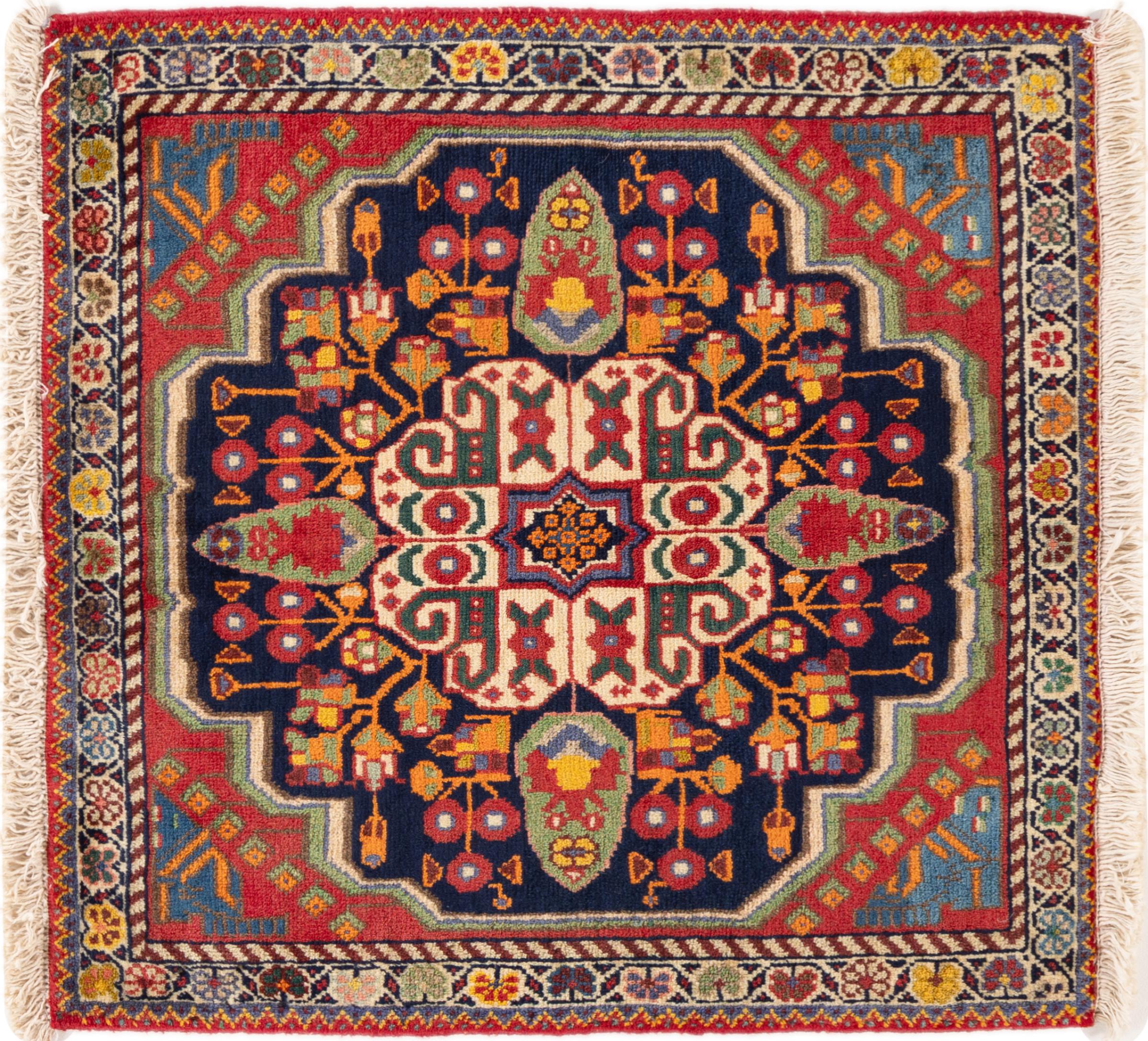 Covor Nr.: 295592004008 Mărime: 63x60 cm Grosime: cca. 12 mm Noduri: 128 000 - 160 000 / m² Prelucrare: Lucrate de mână Catifeaua: Lână toarsă manual Urzeala: Bumbac Origine: Persien / Iran Vechime: vechi/semi-antic, vechi de peste 50 de ani Greutate: cca. 1 kg De asemenea cunoscut ca si Qashqai, Gaschgai, Gashghai, Kashgai În stoc: Unic - Doar 1 în stoc