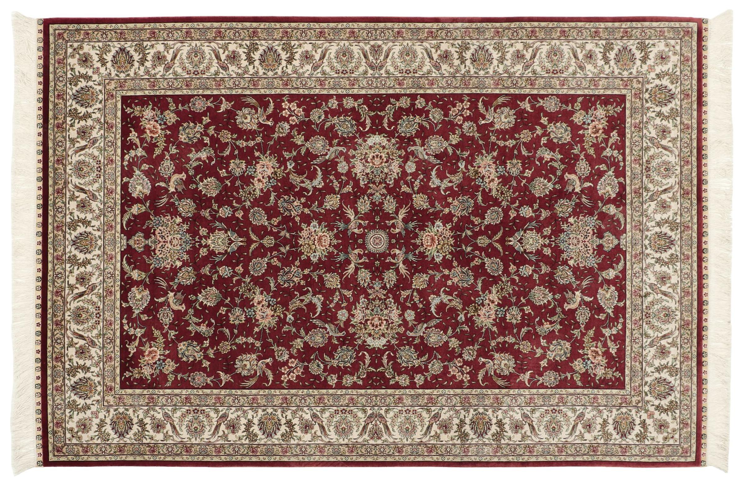 Covor Nr.: 309005004458916 Mărime: 185x123 cm Grosime: cca. 5 mm Noduri: 1 000 - 810 / m² Prelucrare: Lucrate de mână Catifeaua: Mătase Urzeala: Mătase Origine: China Vechime: Nou Greutate: cca. 7 kg În stoc: Unic - Doar 1 în stoc