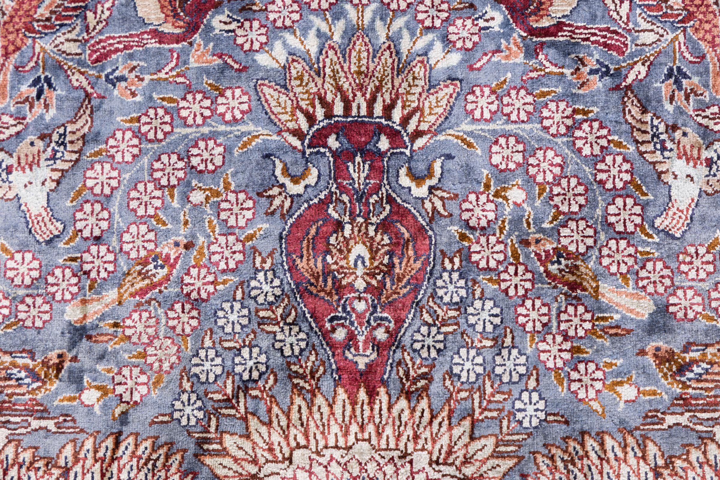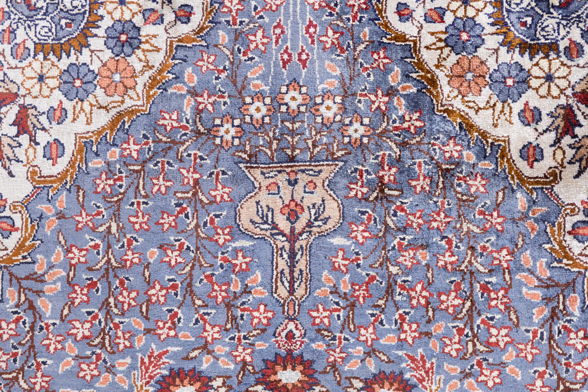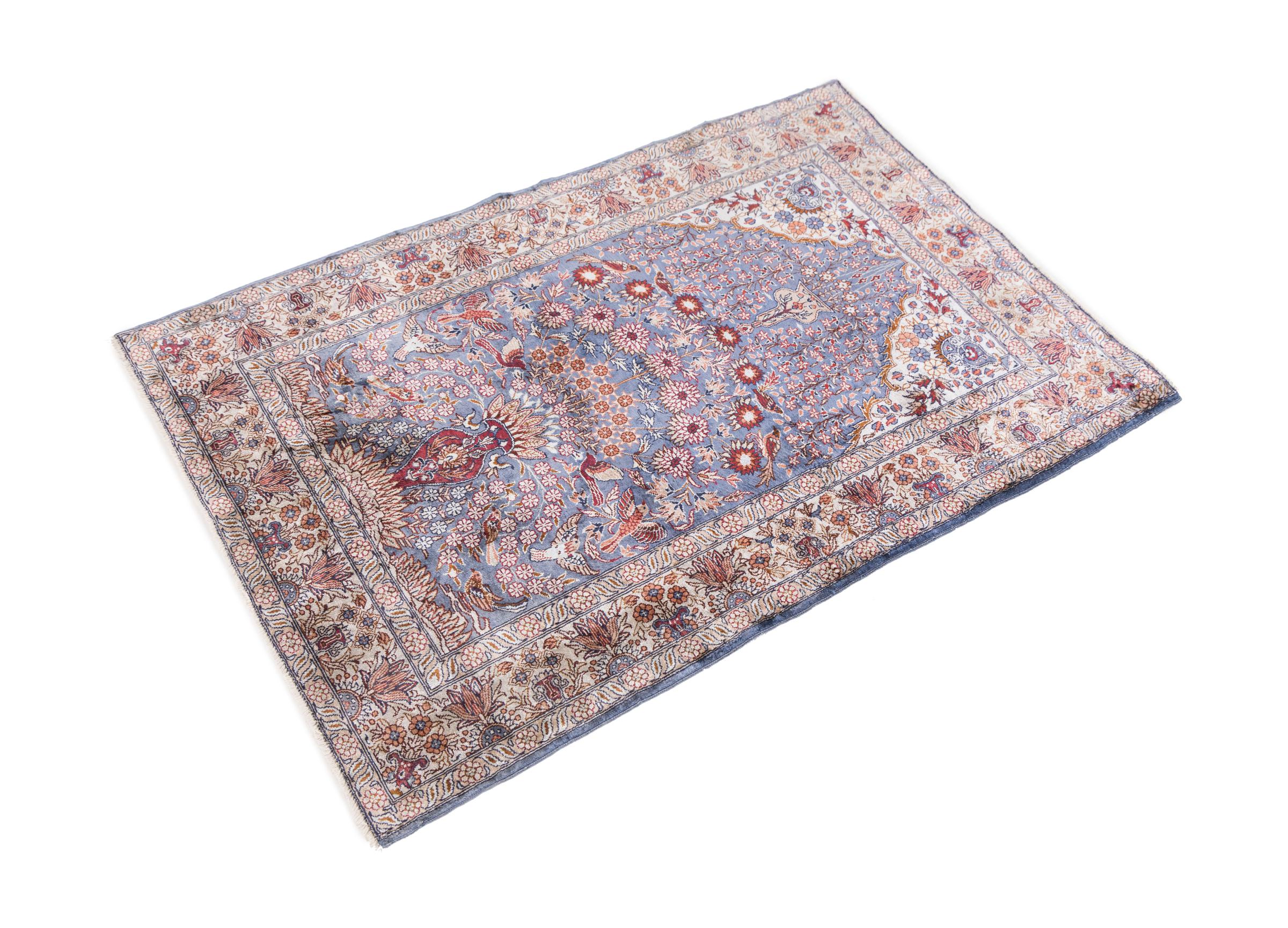 Covor Nr.: 29511500105412 Mărime: 92x61 cm Grosime: cca. 5 mm Noduri: 1 000 000 / m² Prelucrare: Lucrate de mână Catifeaua: Mătase Urzeala: Mătase Origine: China Vechime: Nou Greutate: cca. 2 kg În stoc: Unic - Doar 1 în stoc