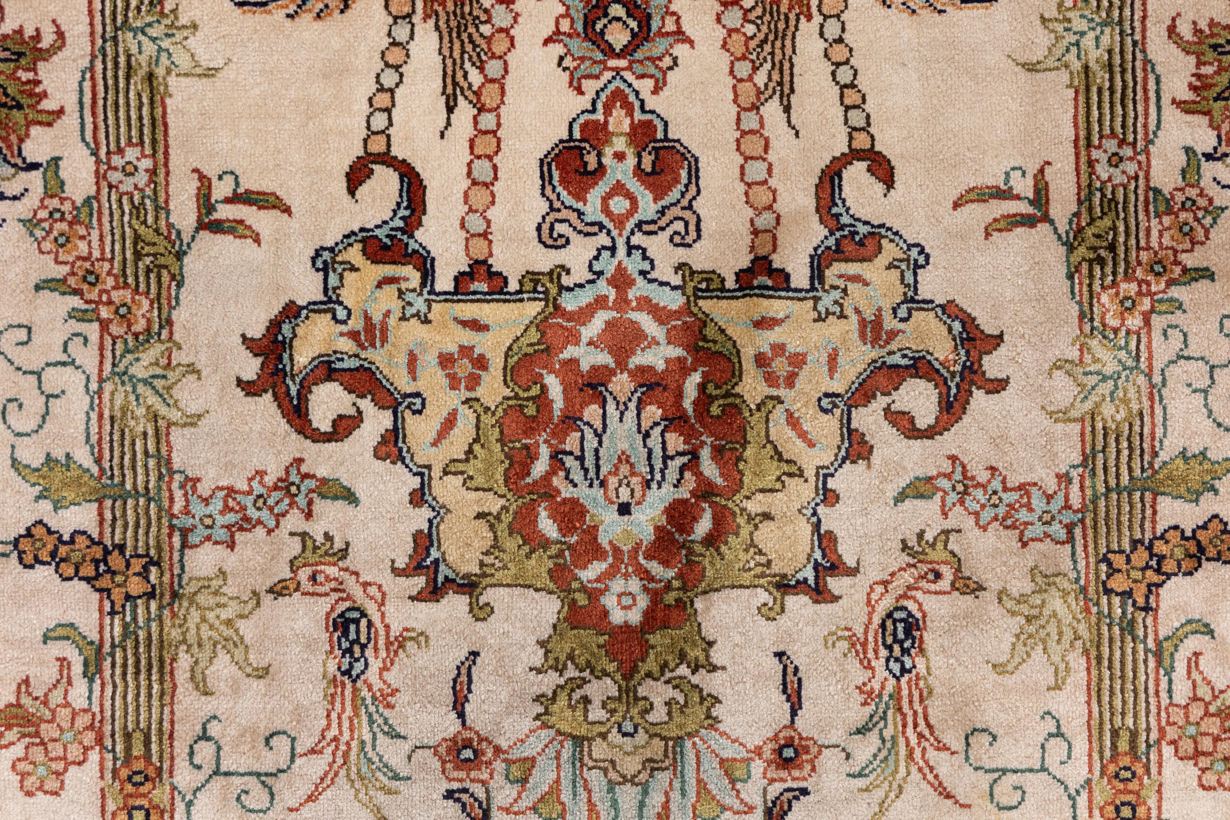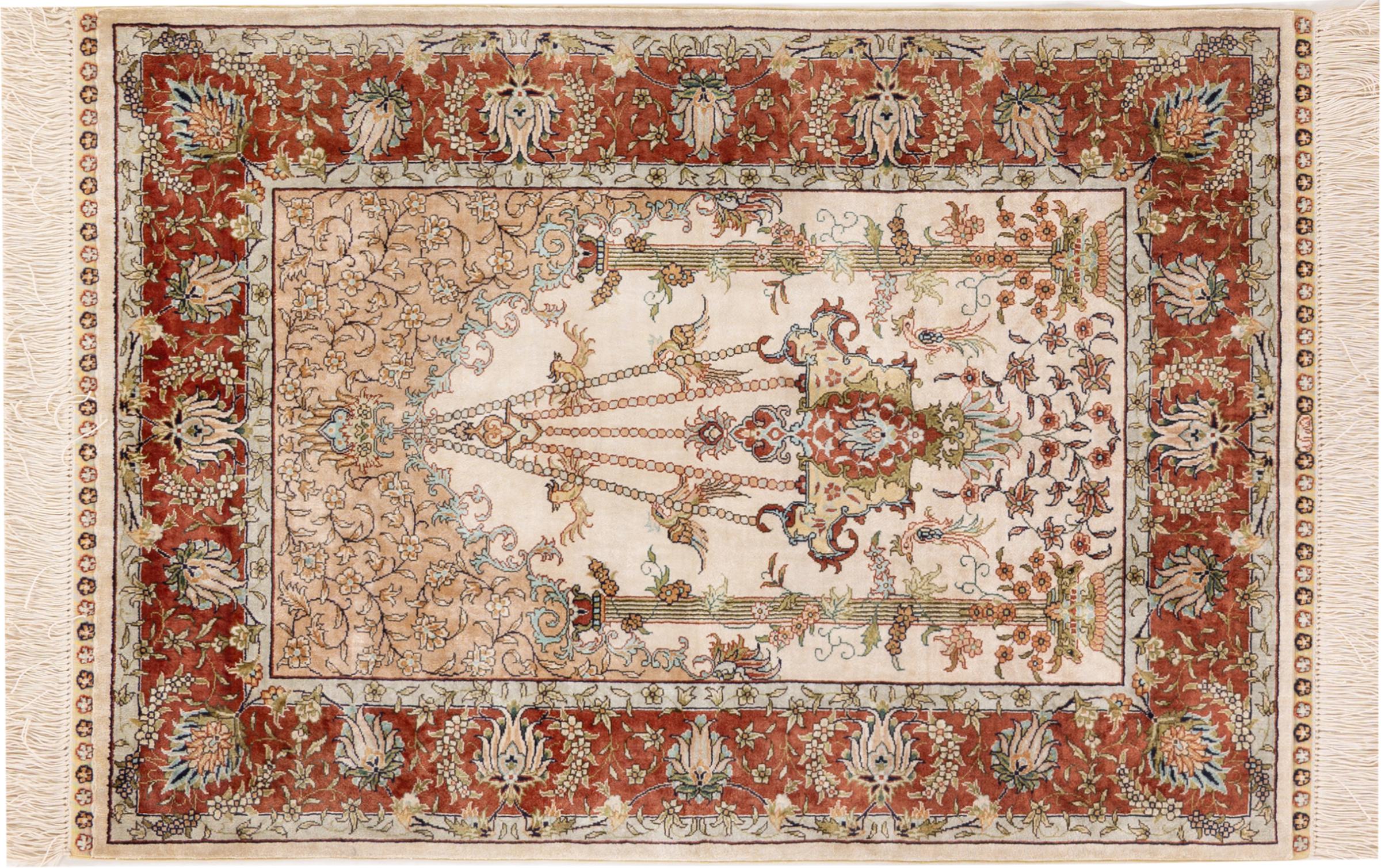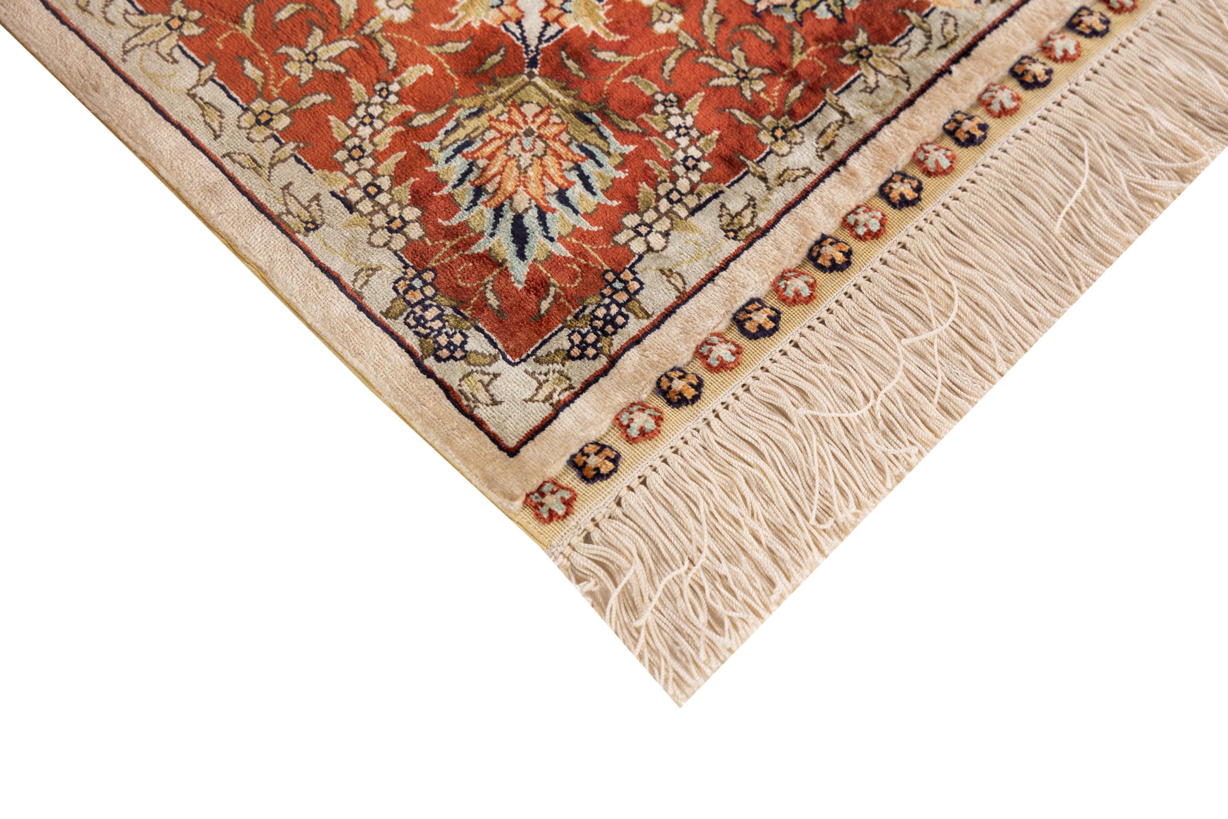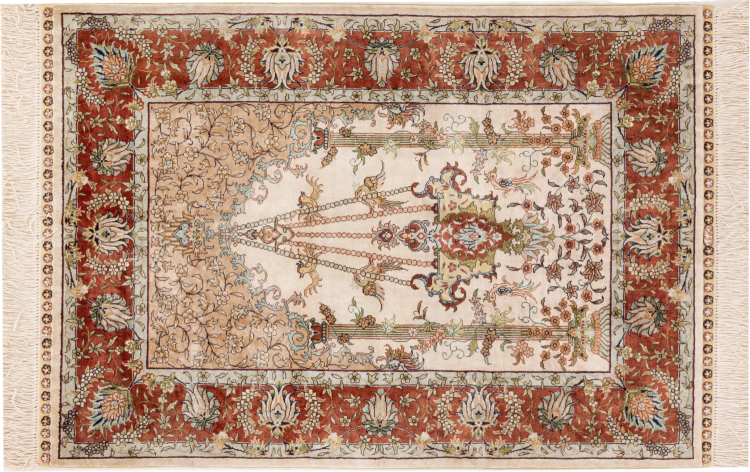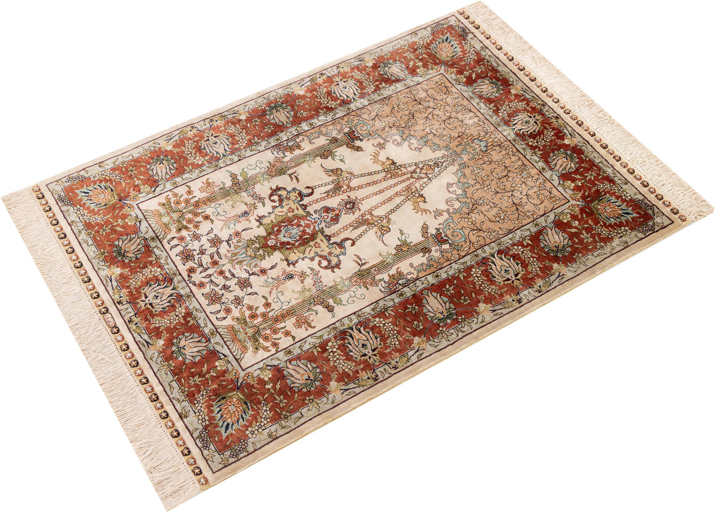 Covor Nr.: 30700000105530 Mărime: 93x62 cm Grosime: cca. 3 mm Noduri: 1 000 000 / m² Prelucrare: Lucrate de mână Catifeaua: Mătase Urzeala: Mătase Origine: Turcia Vechime: Nou Greutate: cca. 1 kg În stoc: Unic - Doar 1 în stoc
