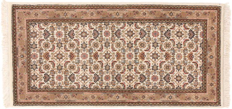 Covor Nr.: 197925003836774 Mărime: 139x68 cm Grosime: cca. 12 mm Noduri: 72 000 - 90 000 / m² Prelucrare: Lucrate de mână Catifeaua: Lână toarsă manual Urzeala: Bumbac Origine: India Vechime: Nou Greutate: cca. 3 kg În stoc: Unic - Doar 1 în stoc