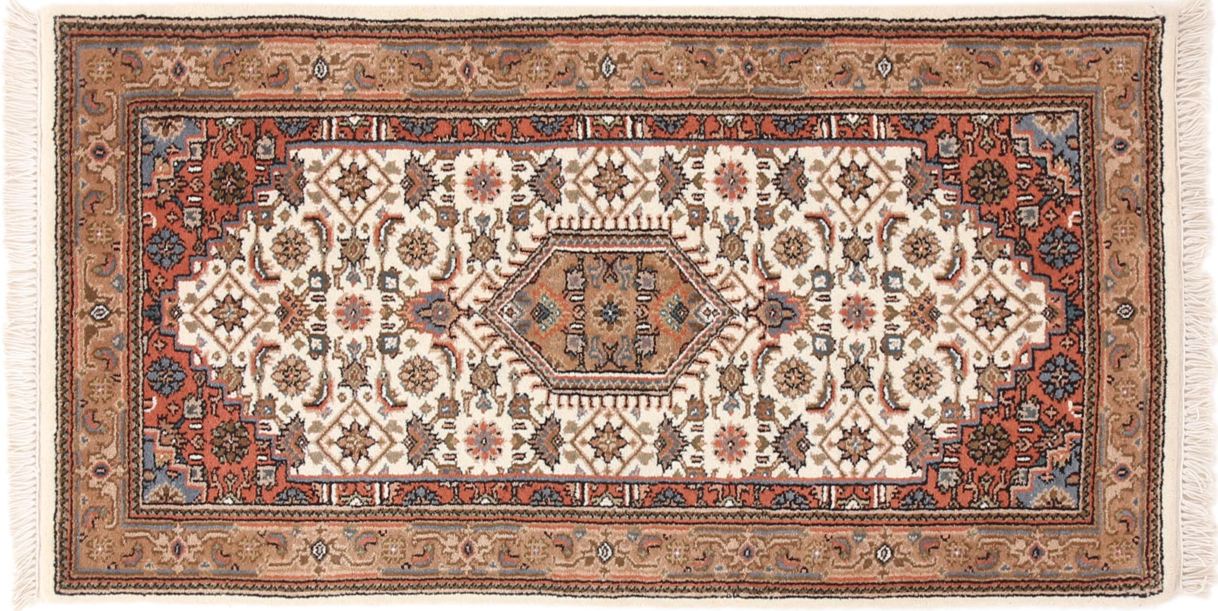 Covor Nr.: 197898009500797 Mărime: 141x70 cm Grosime: cca. 12 mm Noduri: 72 000 - 90 000 / m² Prelucrare: Lucrate de mână Catifeaua: Lână toarsă manual Urzeala: Bumbac Origine: India Vechime: Nou Greutate: cca. 3 kg În stoc: Unic - Doar 1 în stoc