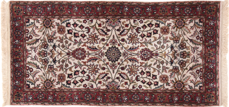Covor Nr.: 197858002695312 Mărime: 144x70 cm Grosime: cca. 12 mm Noduri: 200 000 - 250 000 / m² Prelucrare: Lucrate de mână Catifeaua: Lână toarsă manual Urzeala: Bumbac Origine: India Vechime: Nou Greutate: cca. 4 kg În stoc: Unic - Doar 1 în stoc