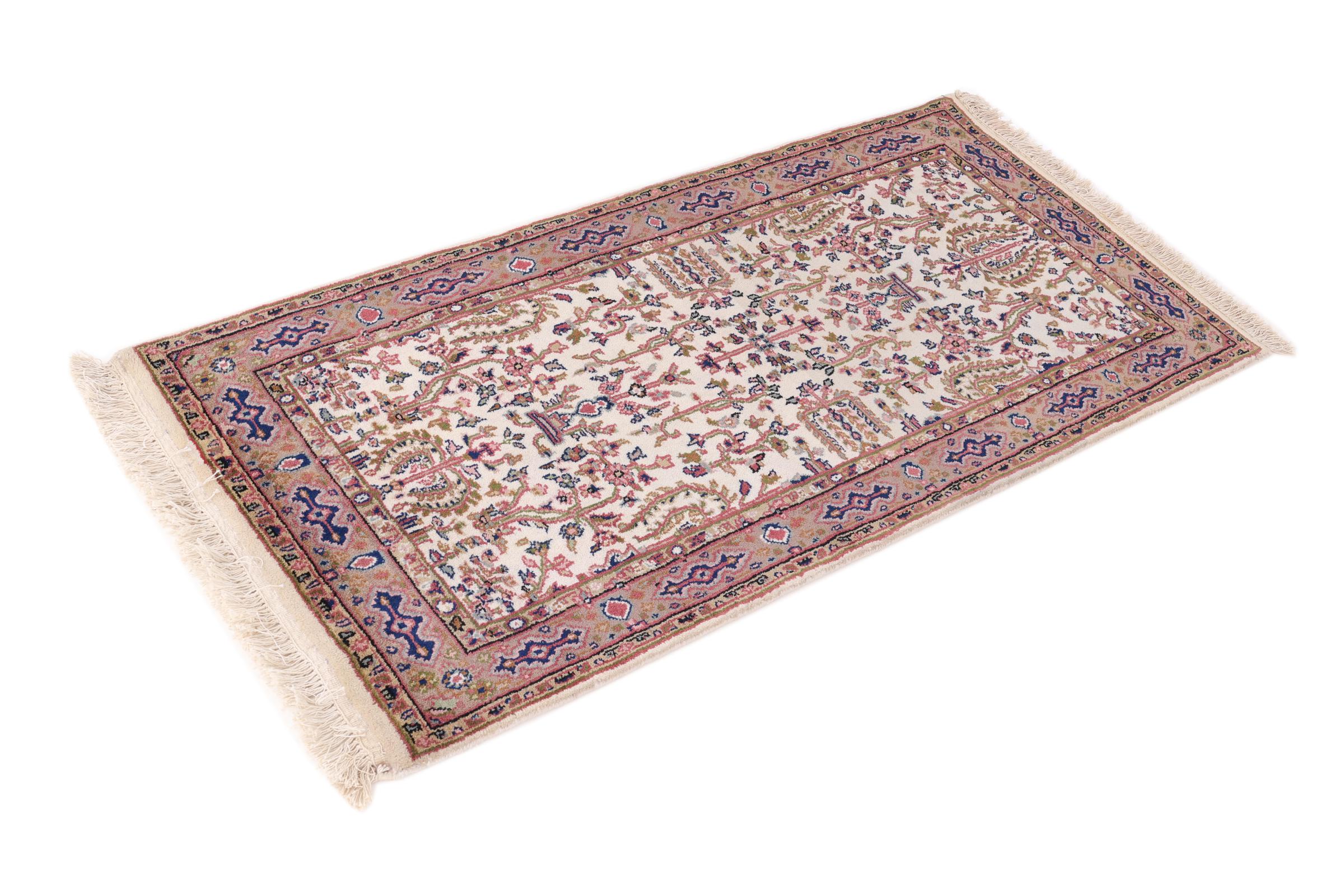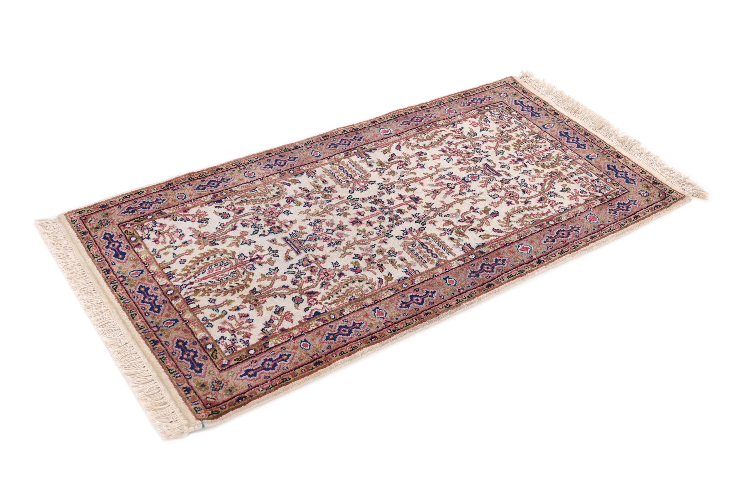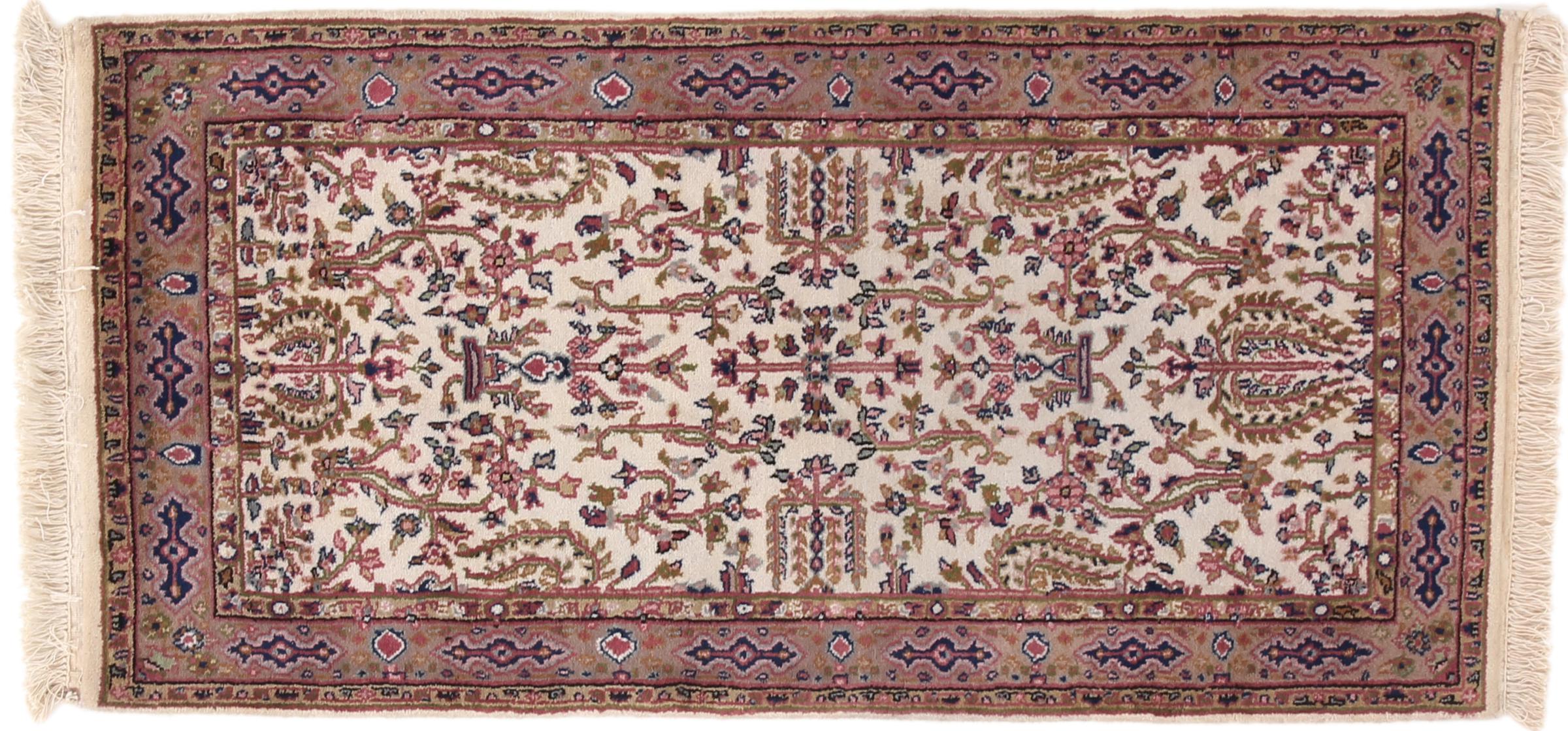 Covor Nr.: 197909001750466 Mărime: 144x71 cm Grosime: cca. 12 mm Noduri: 72 000 - 90 000 / m² Prelucrare: Lucrate de mână Catifeaua: Lână toarsă manual Urzeala: Bumbac Origine: India Vechime: Nou Greutate: cca. 4 kg În stoc: Unic - Doar 1 în stoc