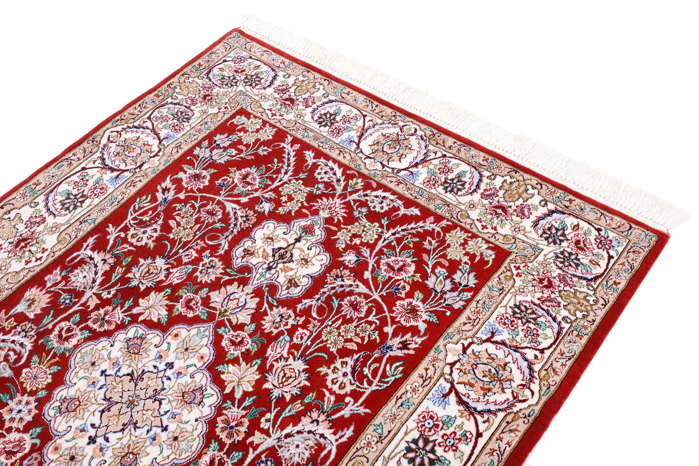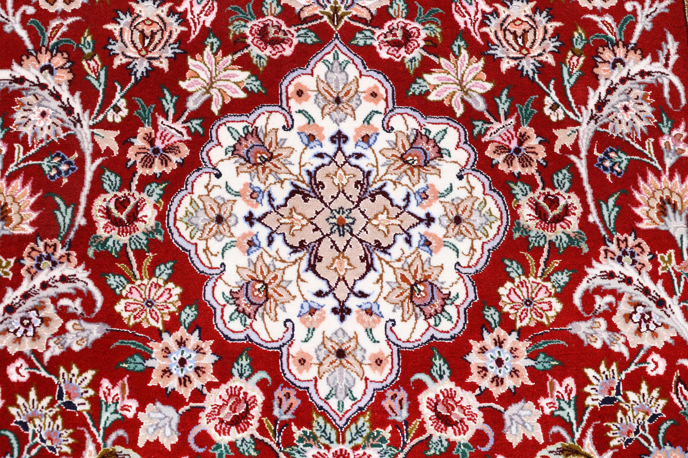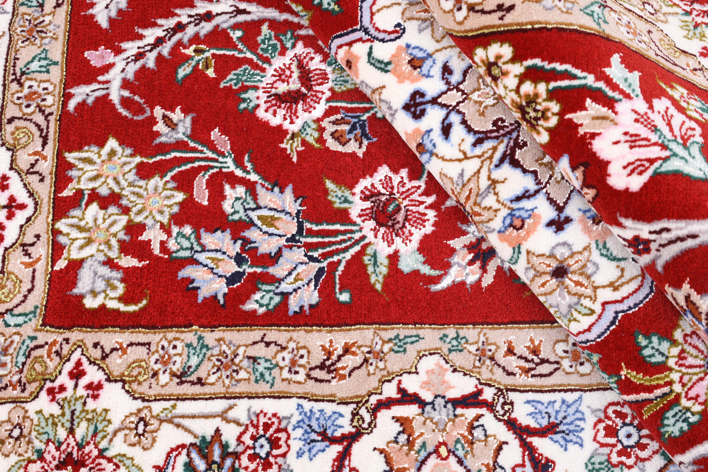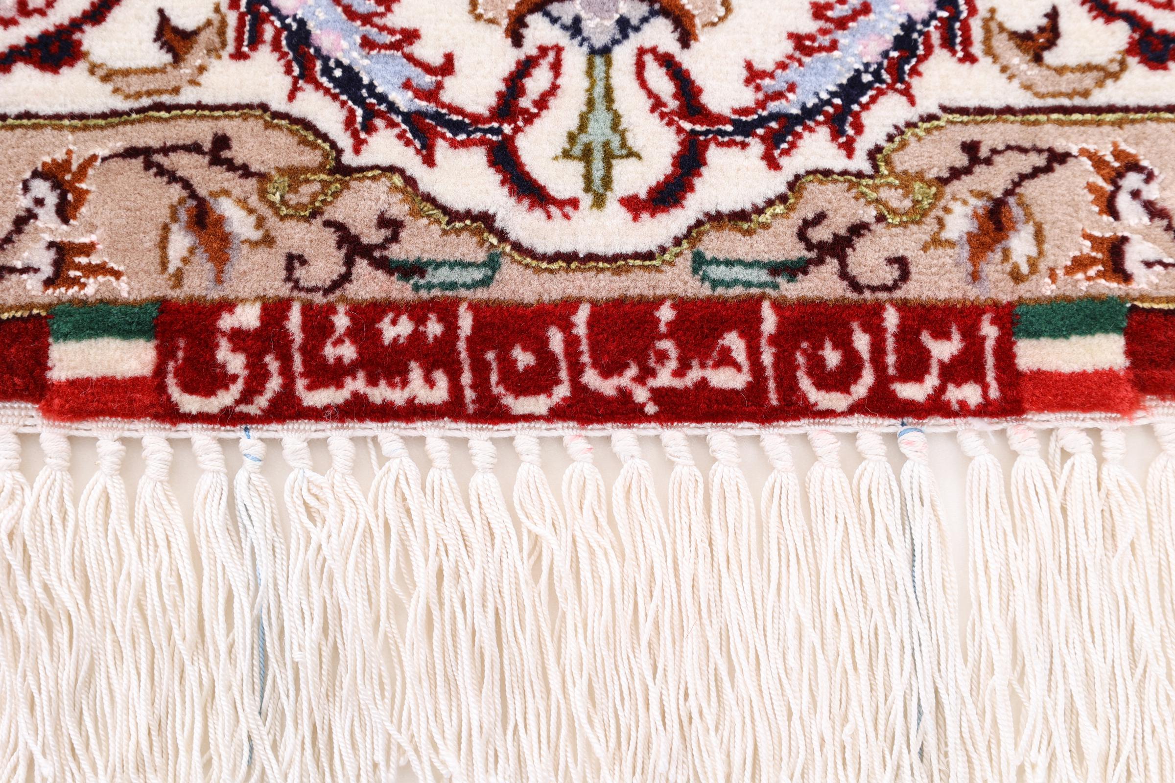 Covor Nr.: 197825005996079 Mărime: 161x109 cm Grosime: cca. 8 mm Noduri: 640 000 / m² Prelucrare: Lucrate de mână Catifeaua: Lână cu mătase Urzeala: Mătase Origine: Persien / Iran Vechime: Nou Greutate: cca. 5 kg În stoc: Unic - Doar 1 în stoc