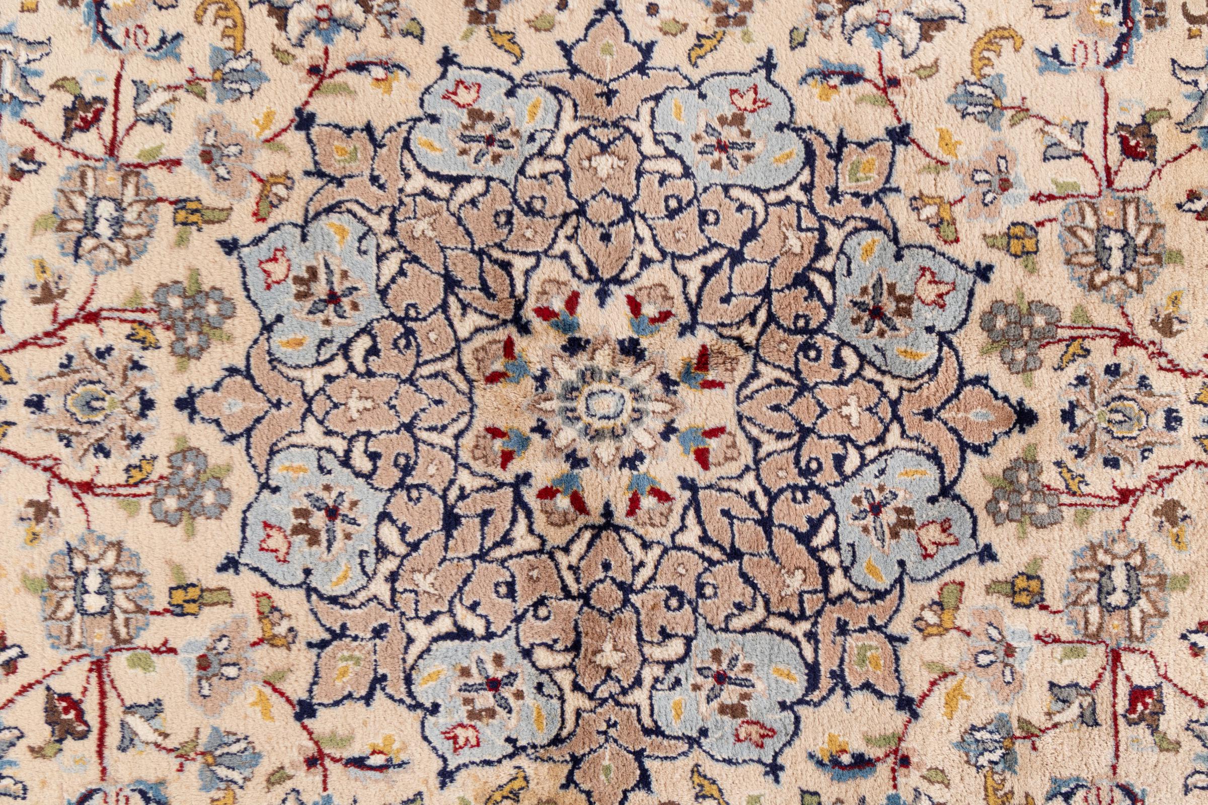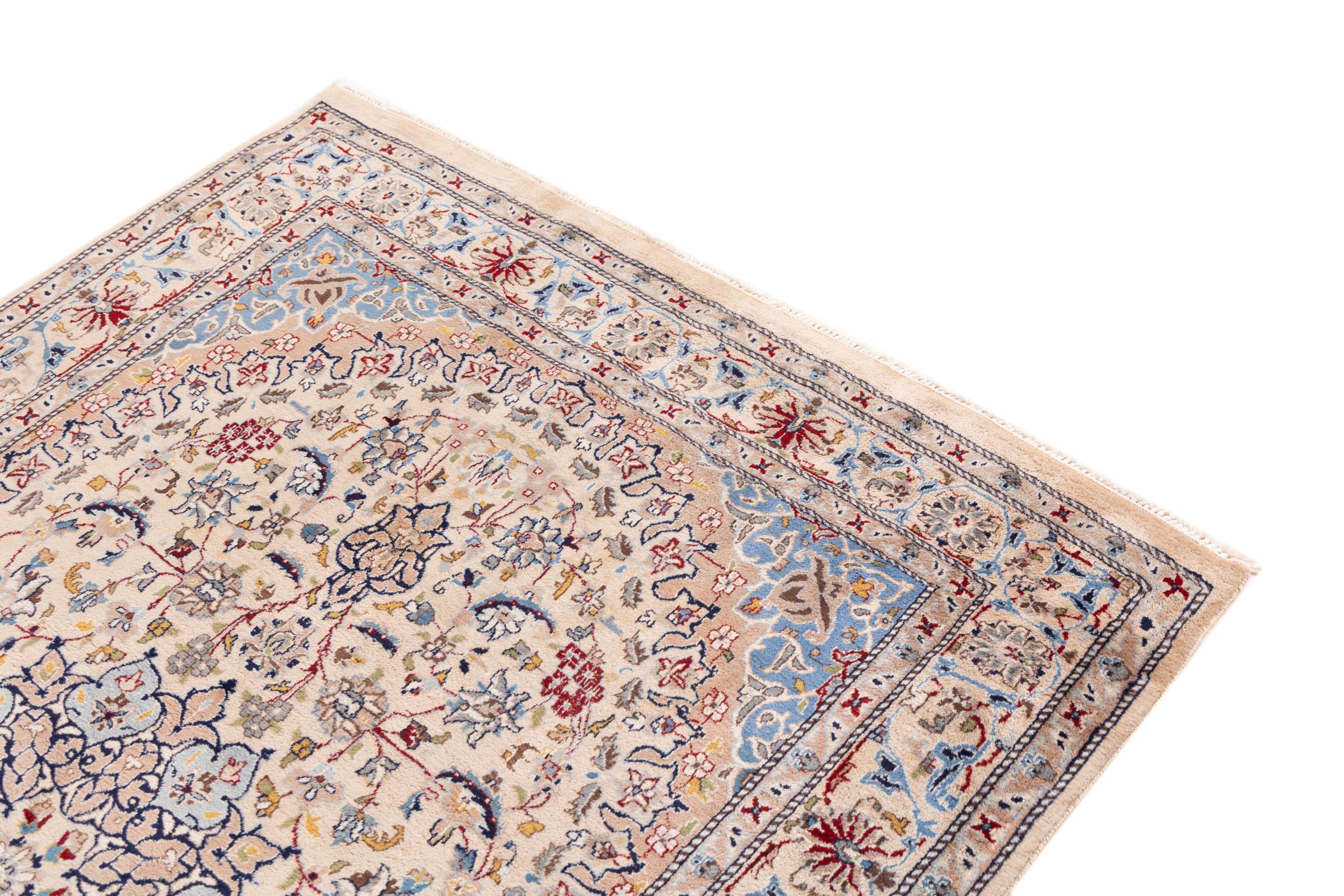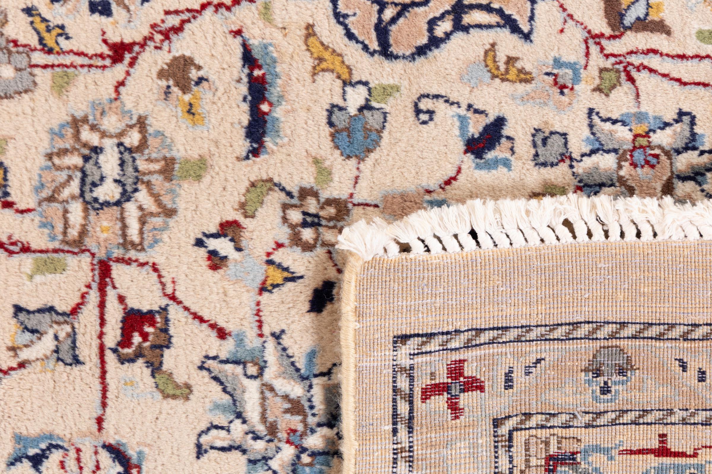 Acest covor de la Kashan (Keshan) este ținut în designul său foarte tradițional și tipic persan, cu ornamente frumoase. Covoarele Kashan sunt foarte populare datorită designului lor excepțional de elegant. Aceste covoare provin din Kashan, un oraș de pe anticul Drum al Mătăsii. Acest covor a fost înnodat manual din lână de oaie de calitate superioară și va fi un punct culminant unic în casa dvs.