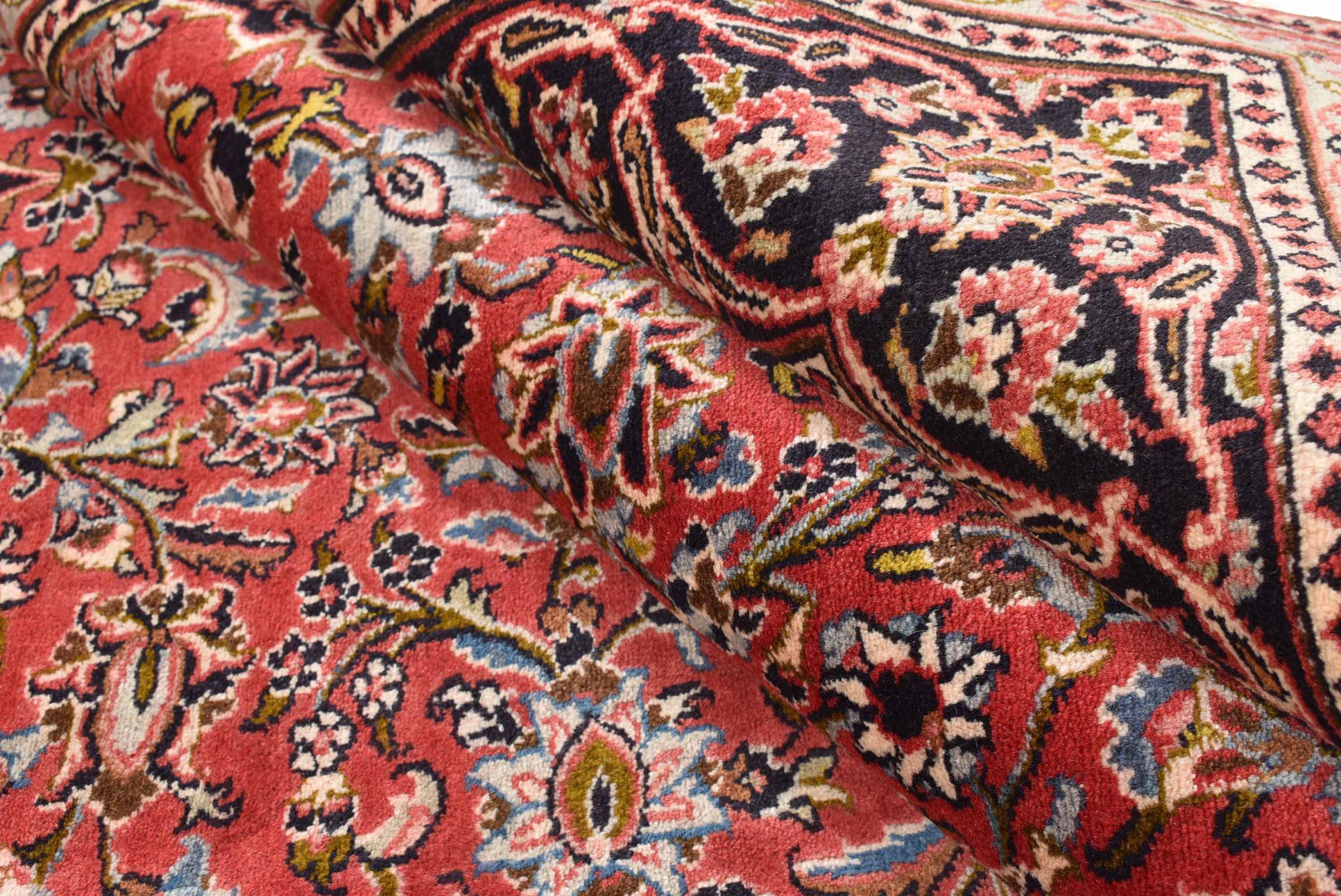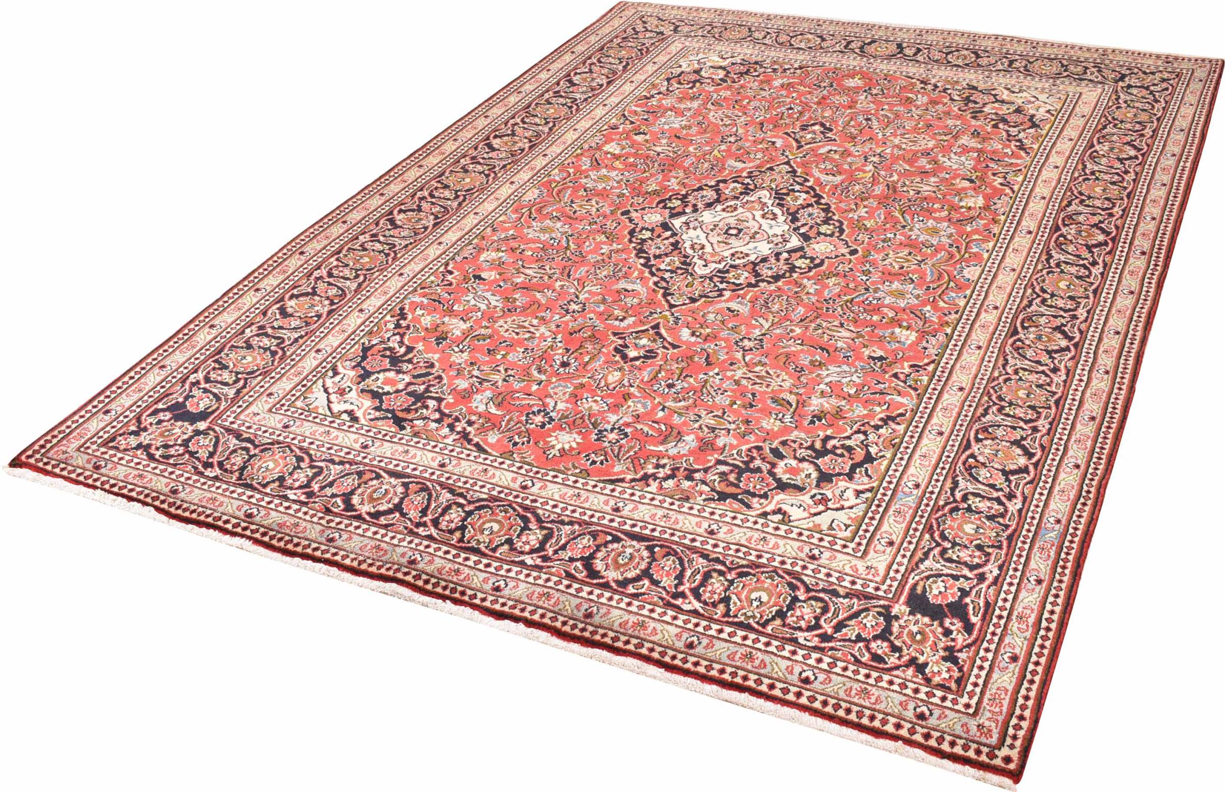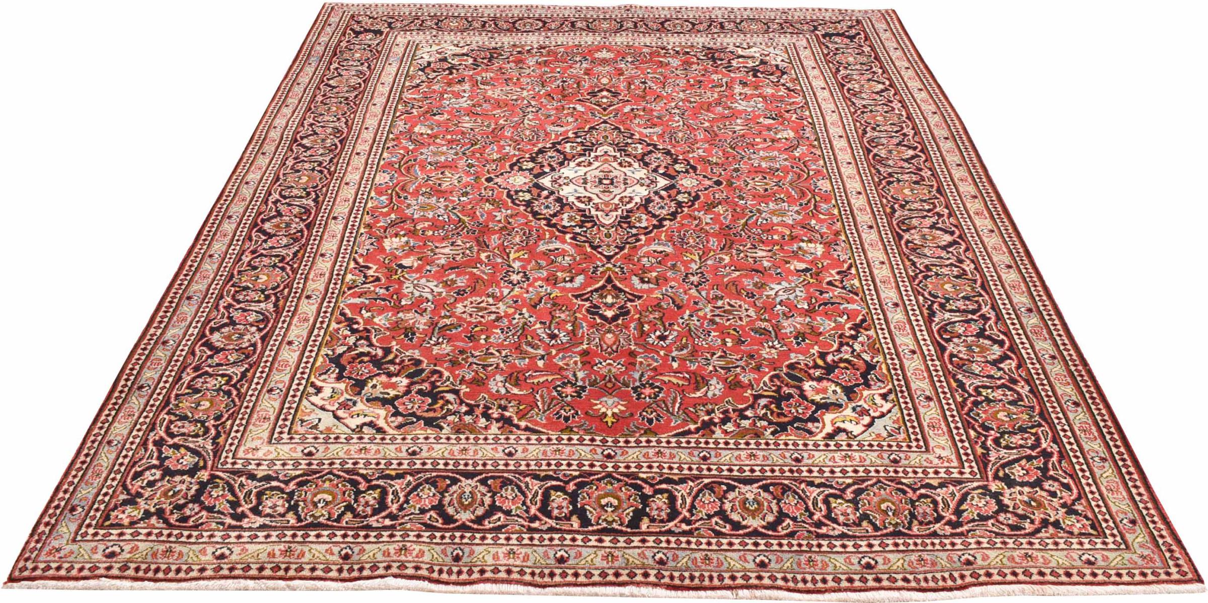 Acest covor de la Kashan (Keshan) este ținut în designul său foarte tradițional și tipic persan, cu ornamente frumoase. Covoarele Kashan sunt foarte populare datorită designului lor excepțional de elegant. Aceste covoare provin din Kashan, un oraș de pe anticul Drum al Mătăsii. Acest covor a fost înnodat manual din lână de oaie de calitate superioară și va fi un punct culminant unic în casa dvs.