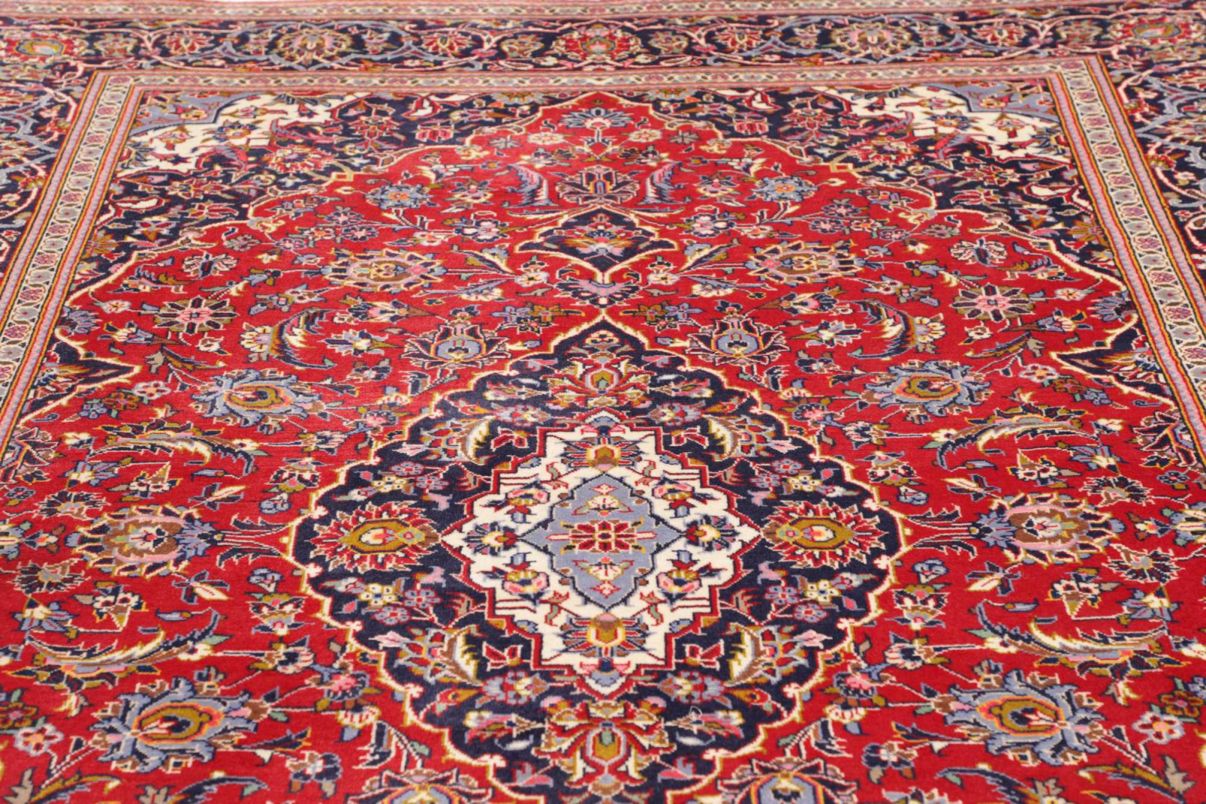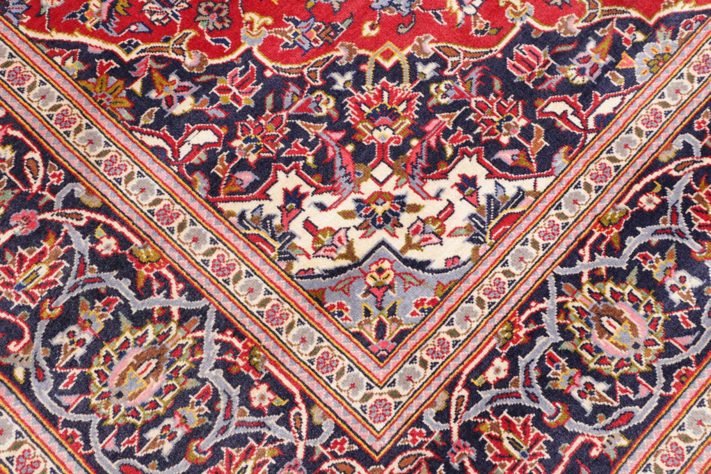 Acest covor de la Kashan (Keshan) este ținut în designul său foarte tradițional și tipic persan, cu ornamente frumoase. Covoarele Kashan sunt foarte populare datorită designului lor excepțional de elegant. Aceste covoare provin din Kashan, un oraș de pe anticul Drum al Mătăsii. Acest covor a fost înnodat manual din lână de oaie de calitate superioară și va fi un punct culminant unic în casa dvs.