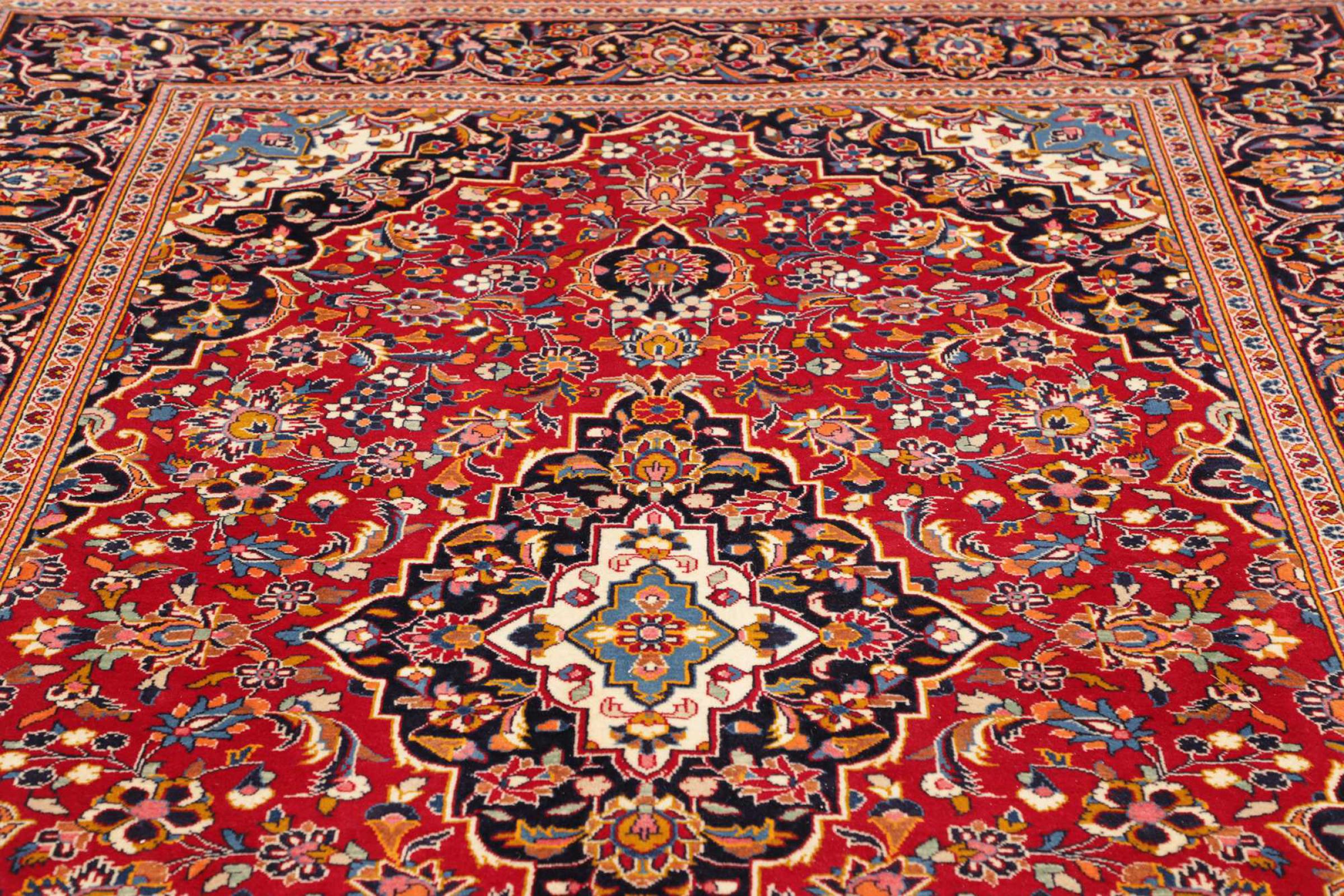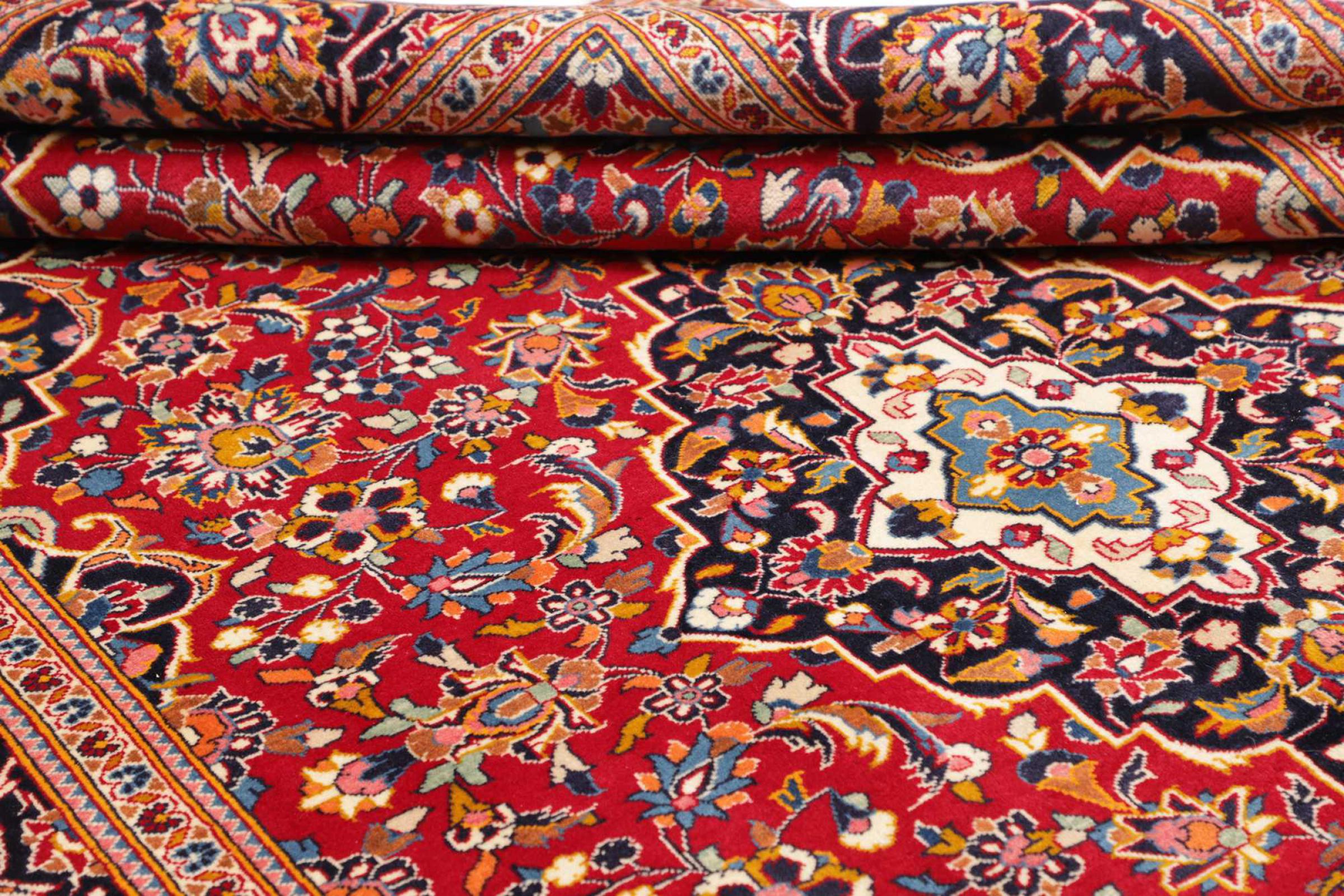 Acest covor de la Kashan (Keshan) este ținut în designul său foarte tradițional și tipic persan, cu ornamente frumoase. Covoarele Kashan sunt foarte populare datorită designului lor excepțional de elegant. Aceste covoare provin din Kashan, un oraș de pe anticul Drum al Mătăsii. Acest covor a fost înnodat manual din lână de oaie de calitate superioară și va fi un punct culminant unic în casa dvs.