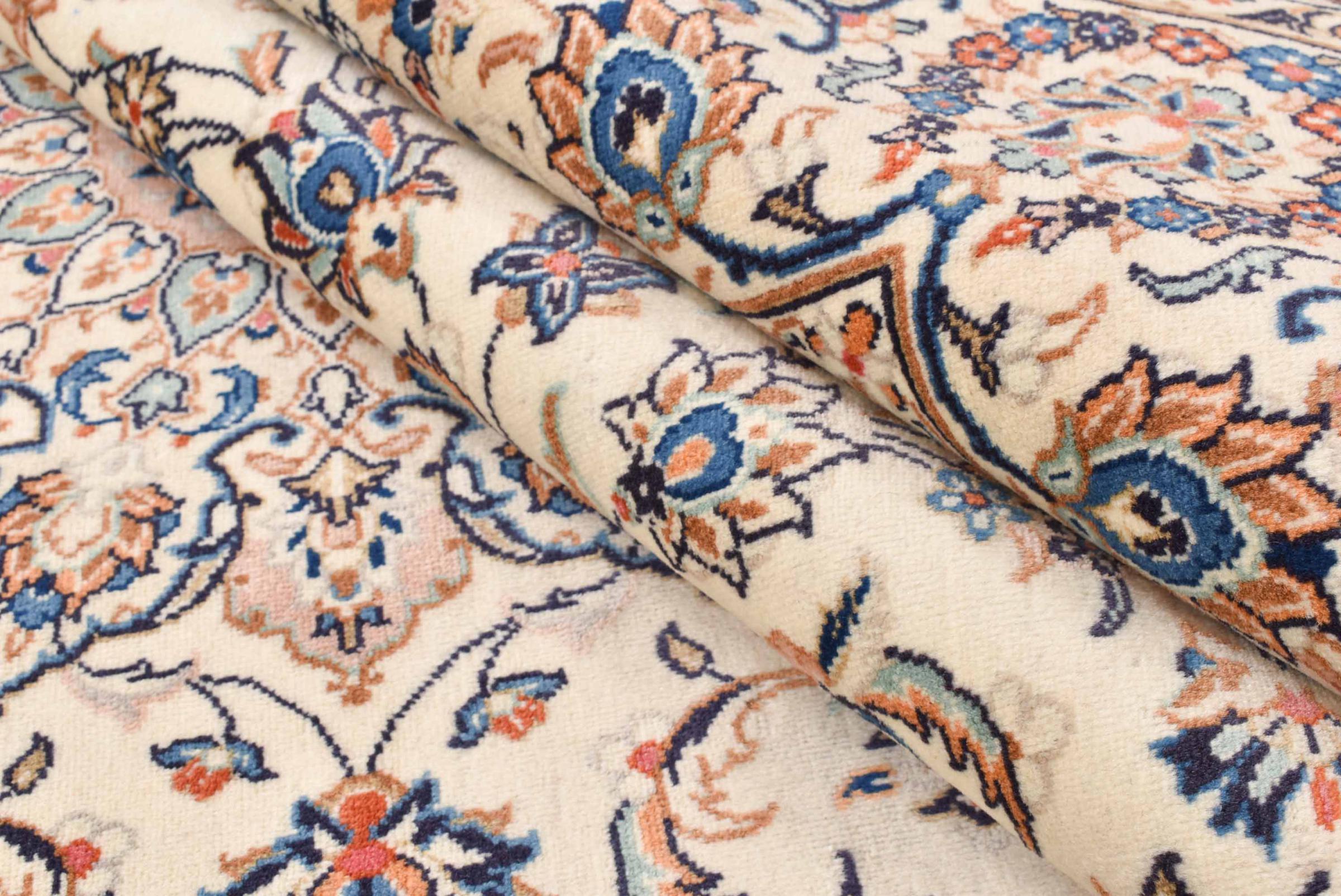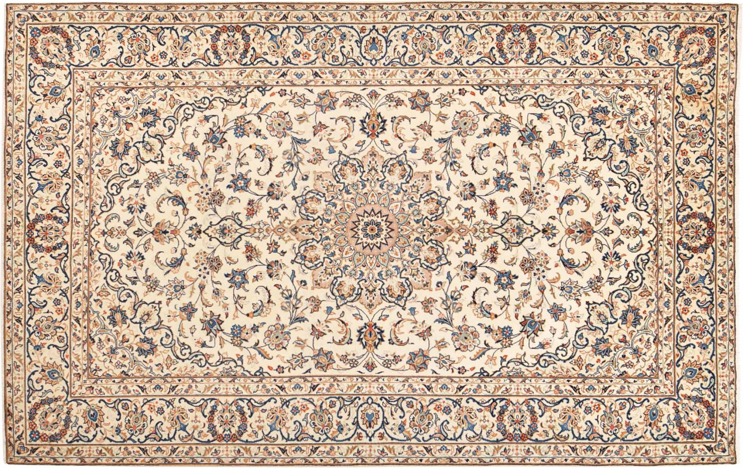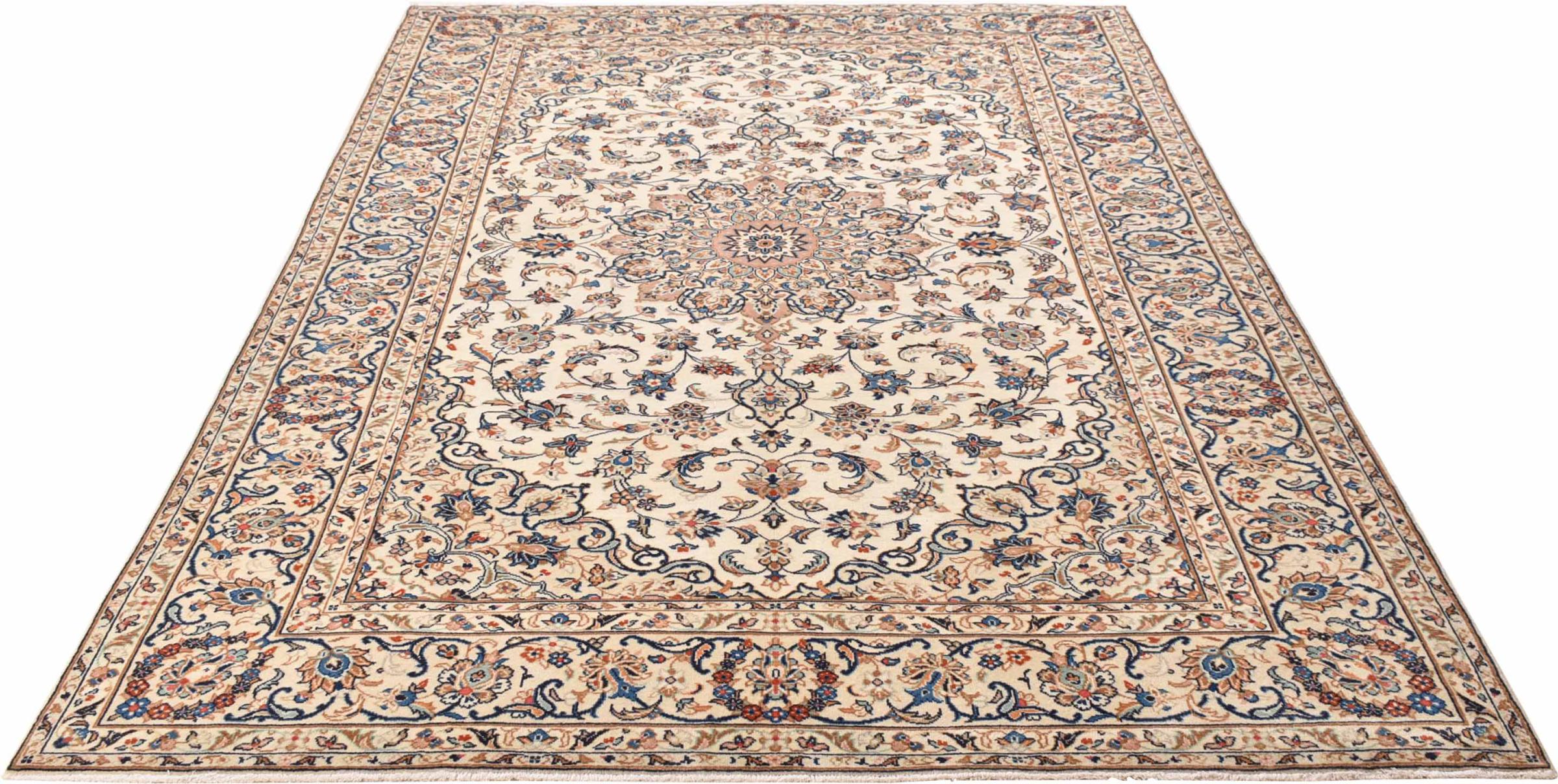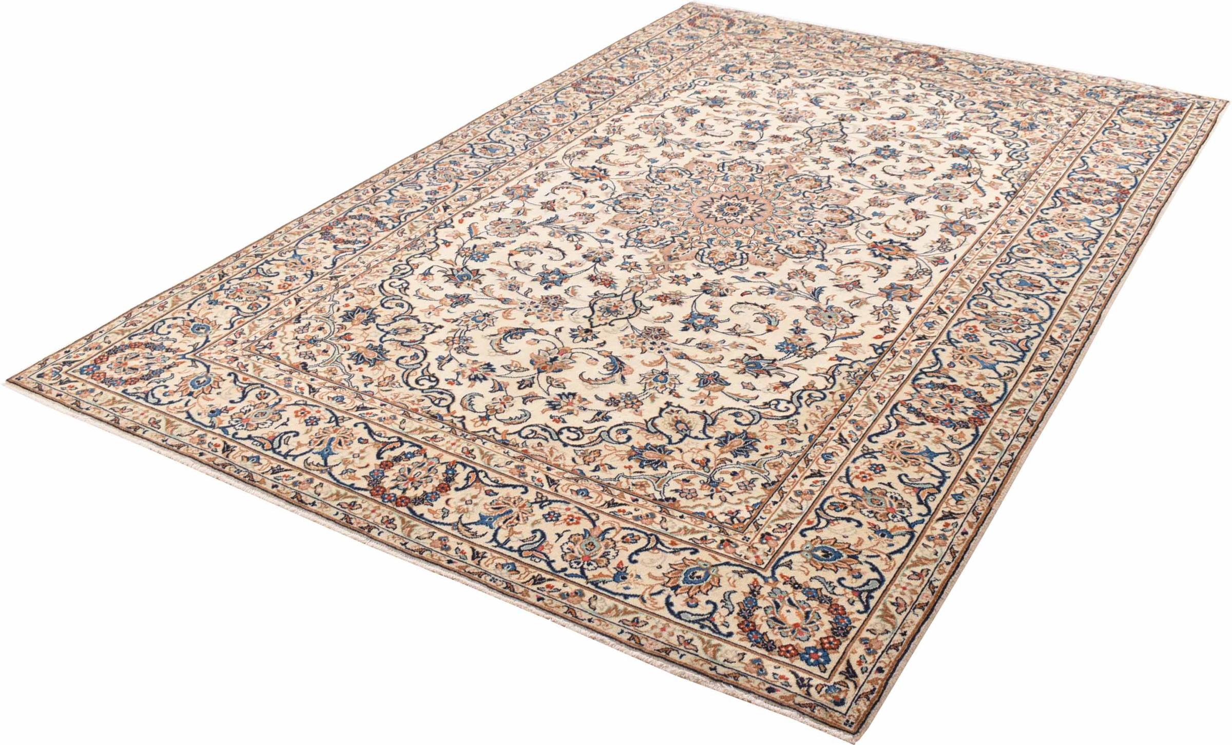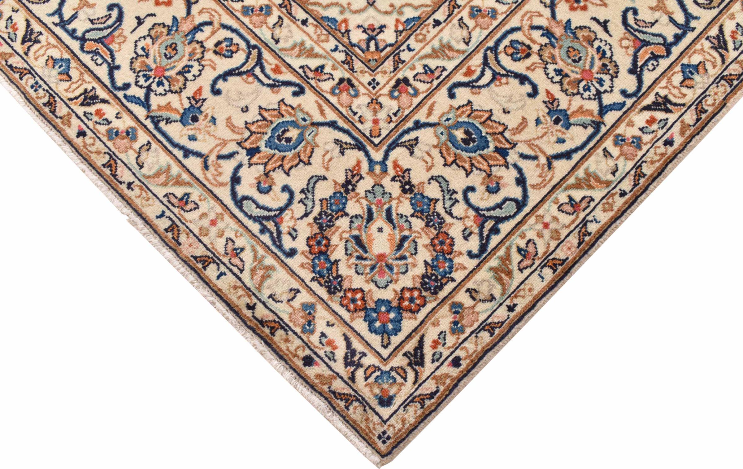 Acest covor de la Kashan (Keshan) este ținut în designul său foarte tradițional și tipic persan, cu ornamente frumoase. Covoarele Kashan sunt foarte populare datorită designului lor excepțional de elegant. Aceste covoare provin din Kashan, un oraș de pe anticul Drum al Mătăsii. Acest covor a fost înnodat manual din lână de oaie de calitate superioară și va fi un punct culminant unic în casa dvs.