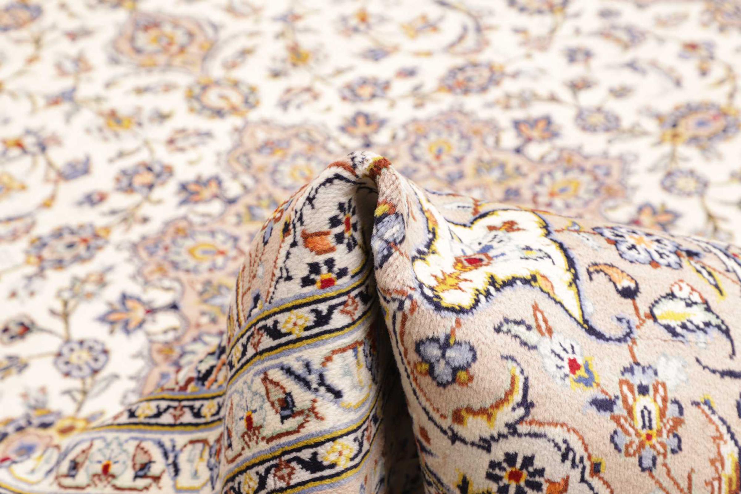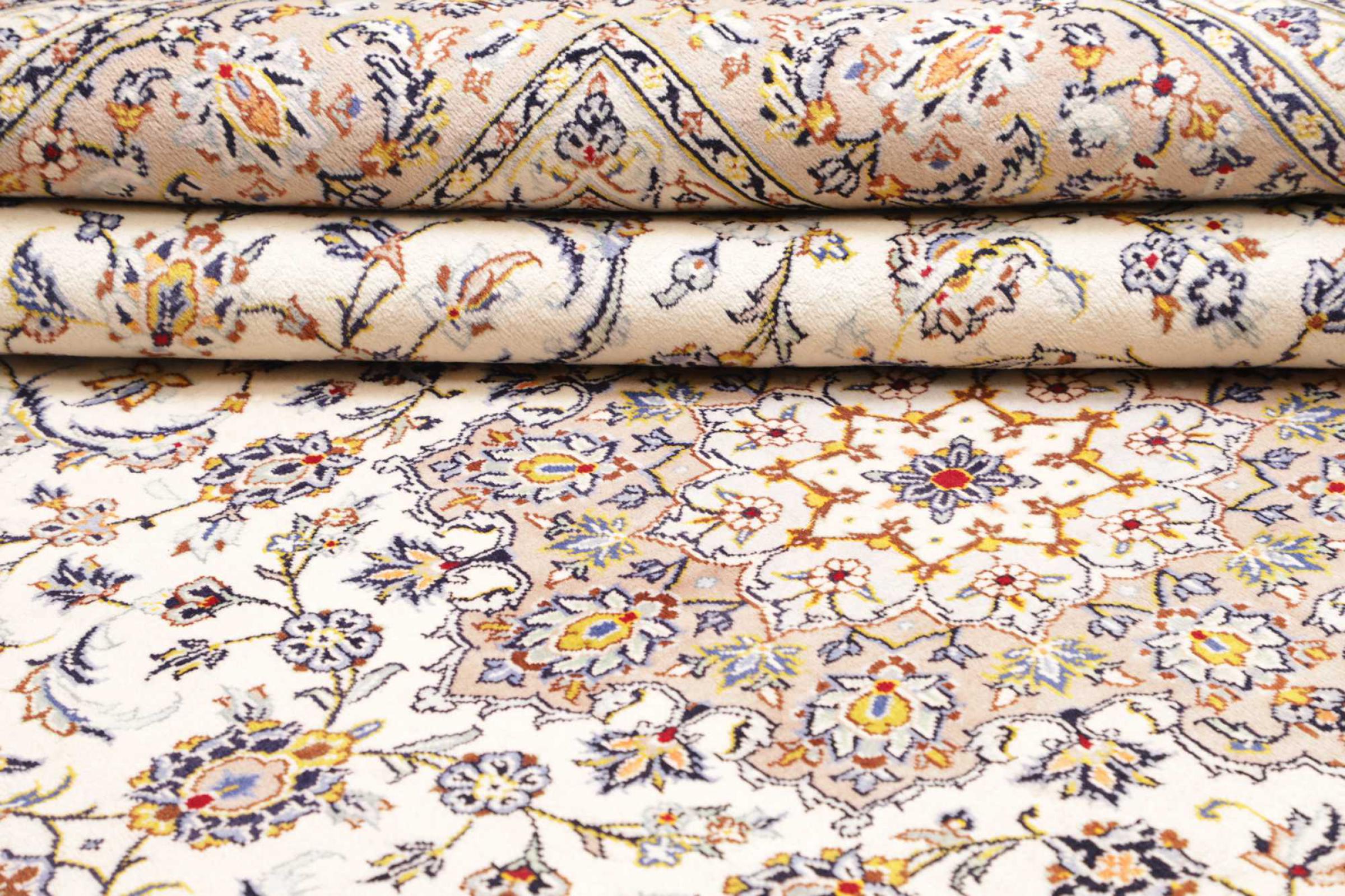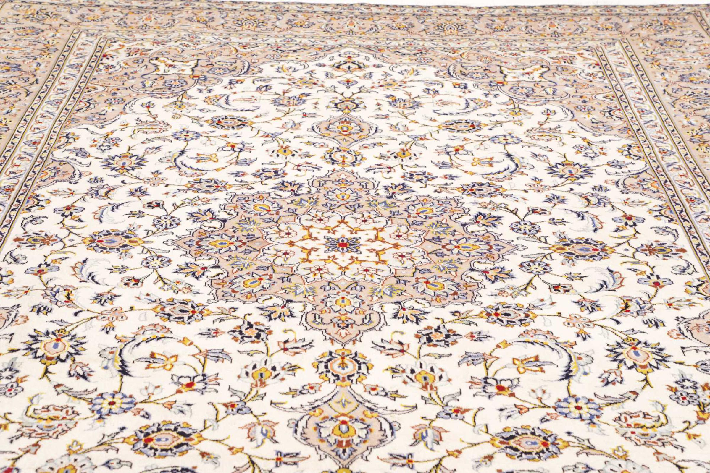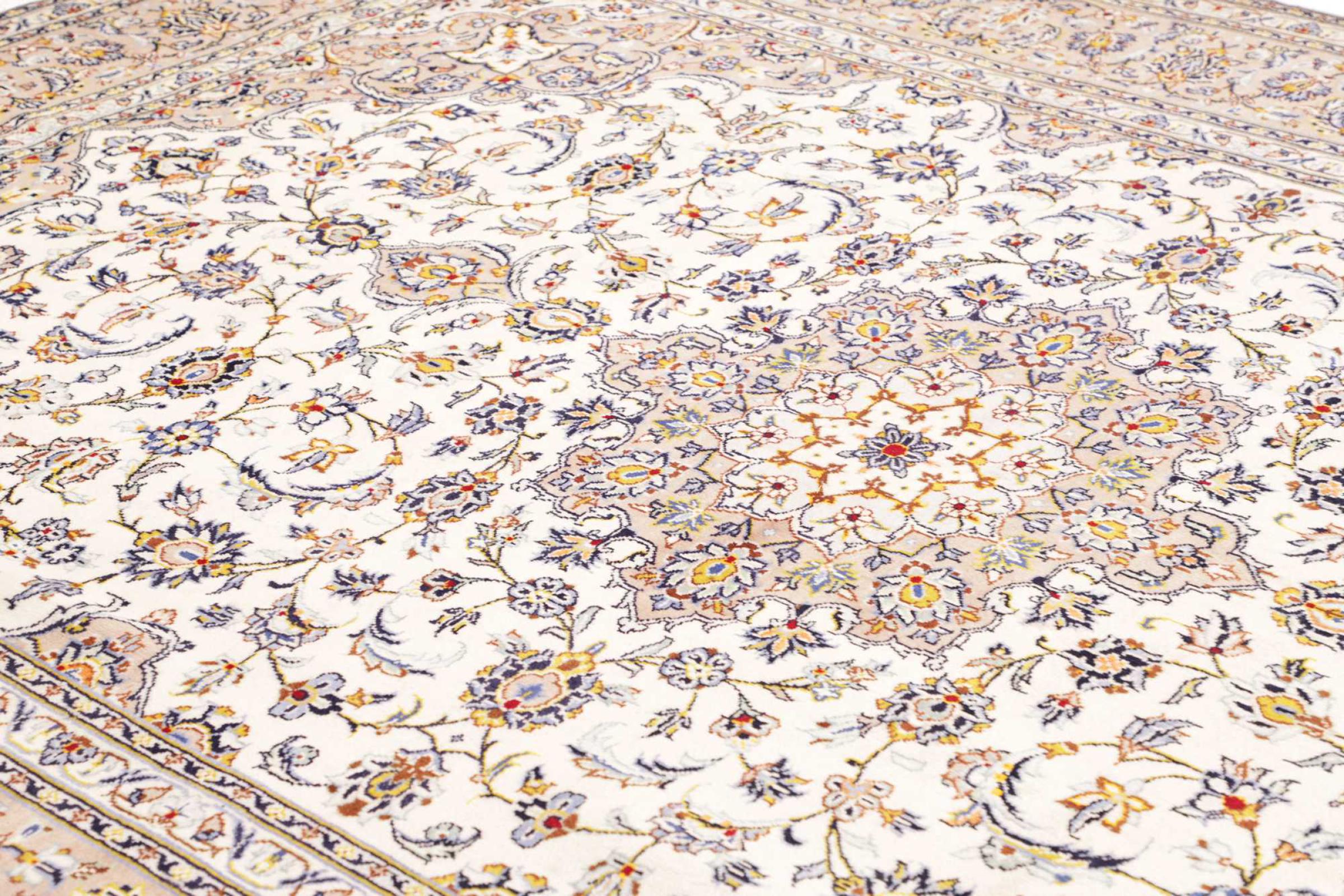 Acest covor de la Kashan (Keshan) este ținut în designul său foarte tradițional și tipic persan, cu ornamente frumoase. Covoarele Kashan sunt foarte populare datorită designului lor excepțional de elegant. Aceste covoare provin din Kashan, un oraș de pe anticul Drum al Mătăsii. Acest covor a fost înnodat manual din lână de oaie de calitate superioară și va fi un punct culminant unic în casa dvs.