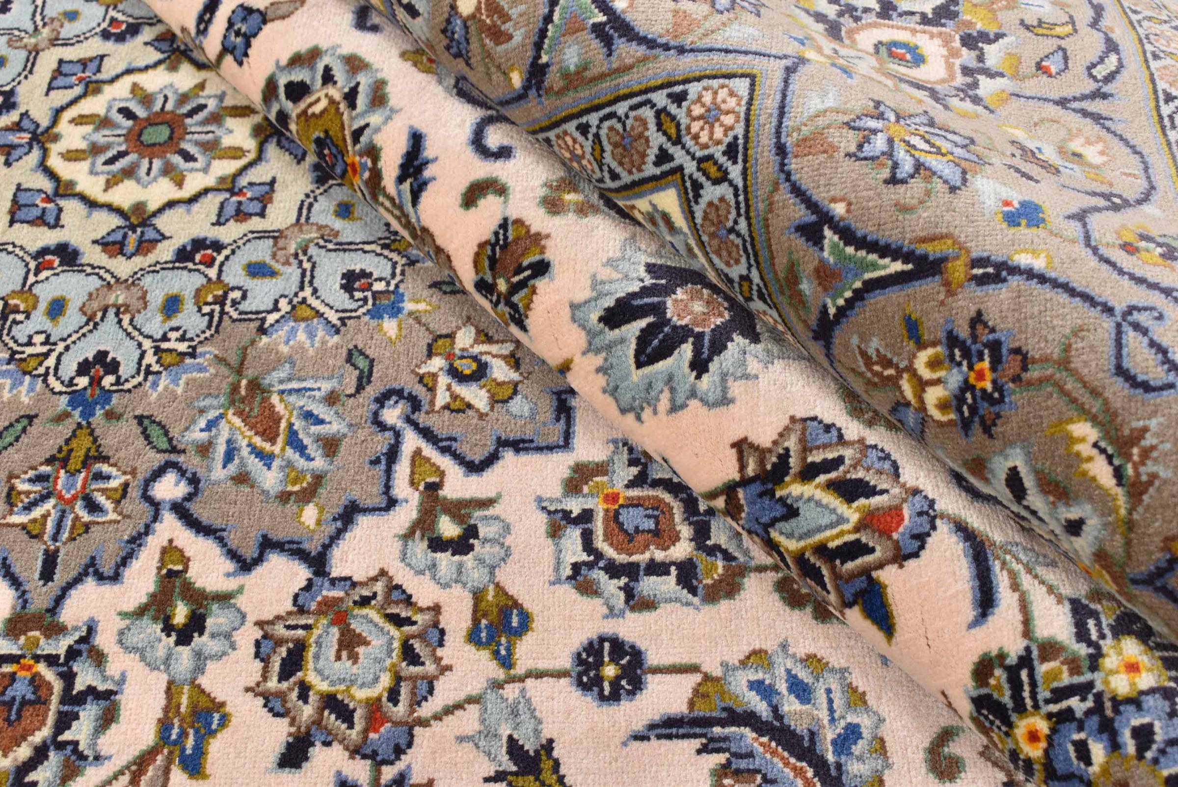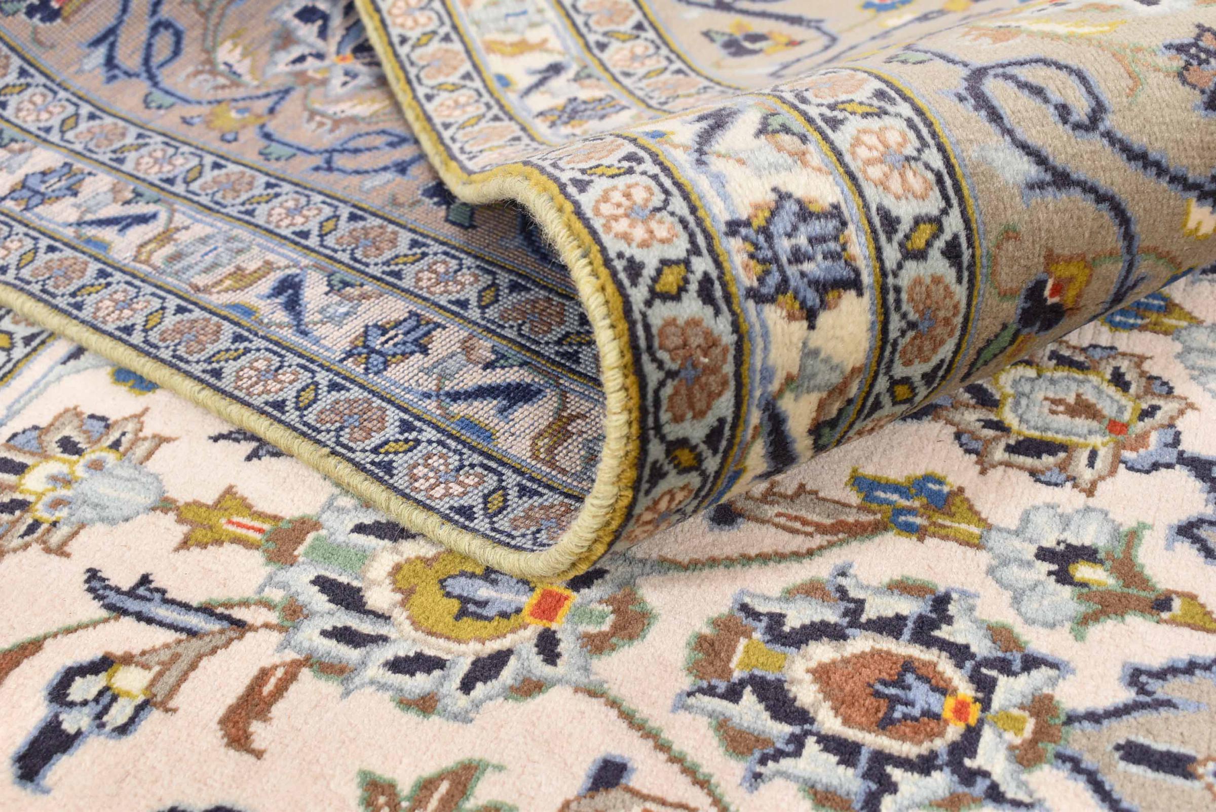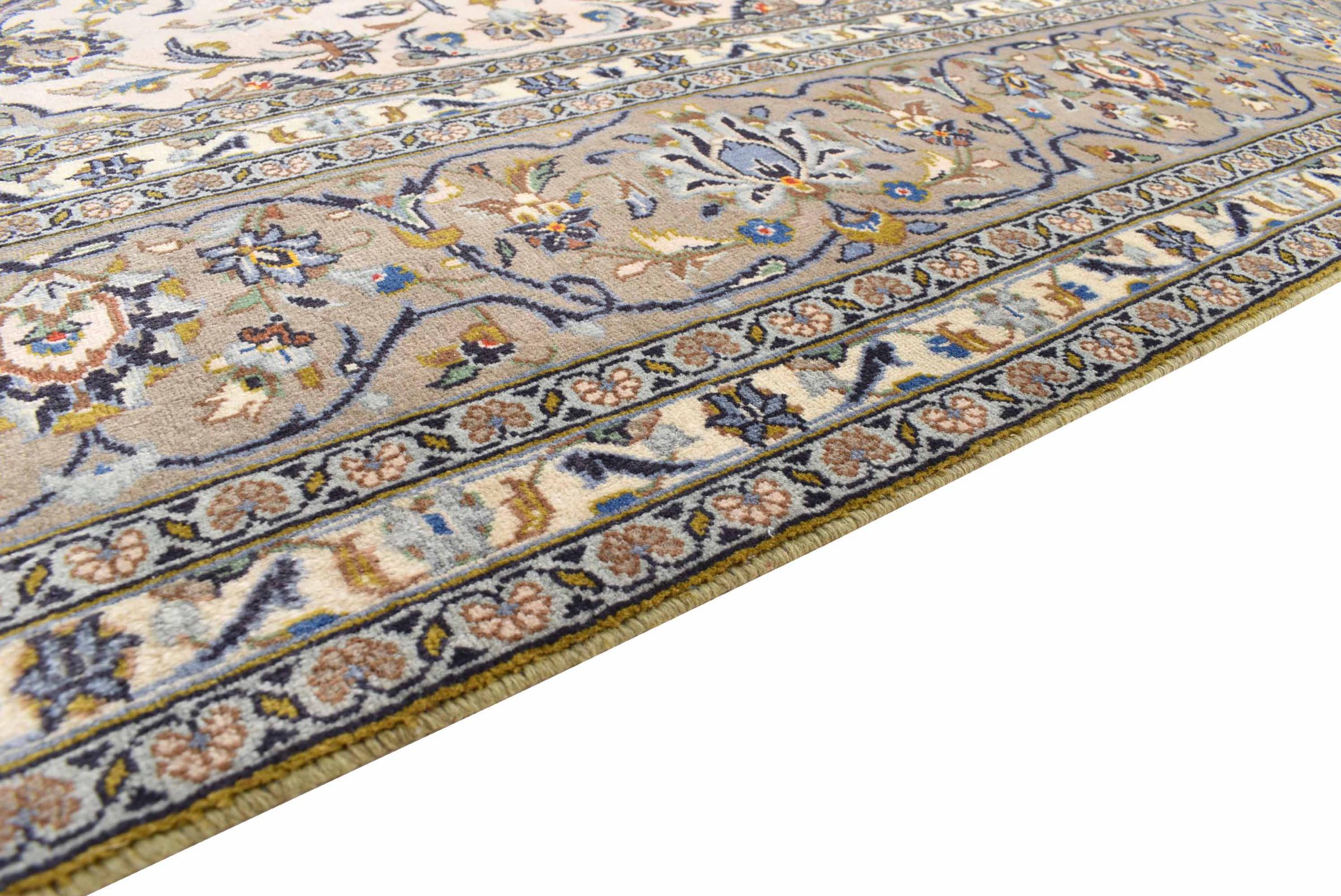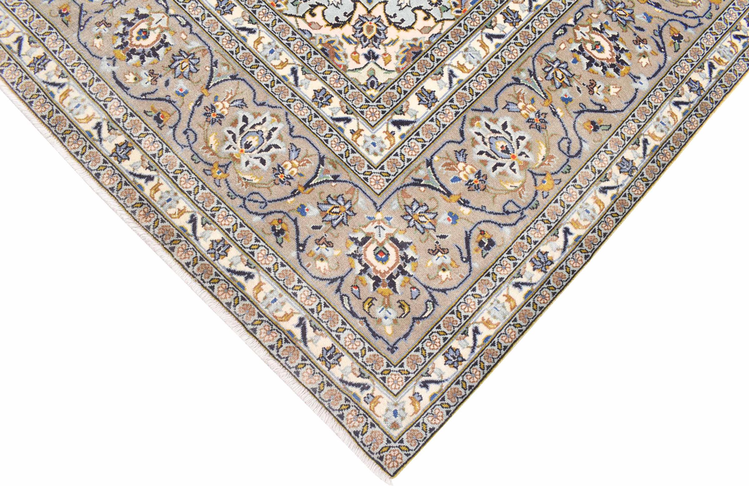 Acest covor de la Kashan (Keshan) este ținut în designul său foarte tradițional și tipic persan, cu ornamente frumoase. Covoarele Kashan sunt foarte populare datorită designului lor excepțional de elegant. Aceste covoare provin din Kashan, un oraș de pe anticul Drum al Mătăsii. Acest covor a fost înnodat manual din lână de oaie de calitate superioară și va fi un punct culminant unic în casa dvs.