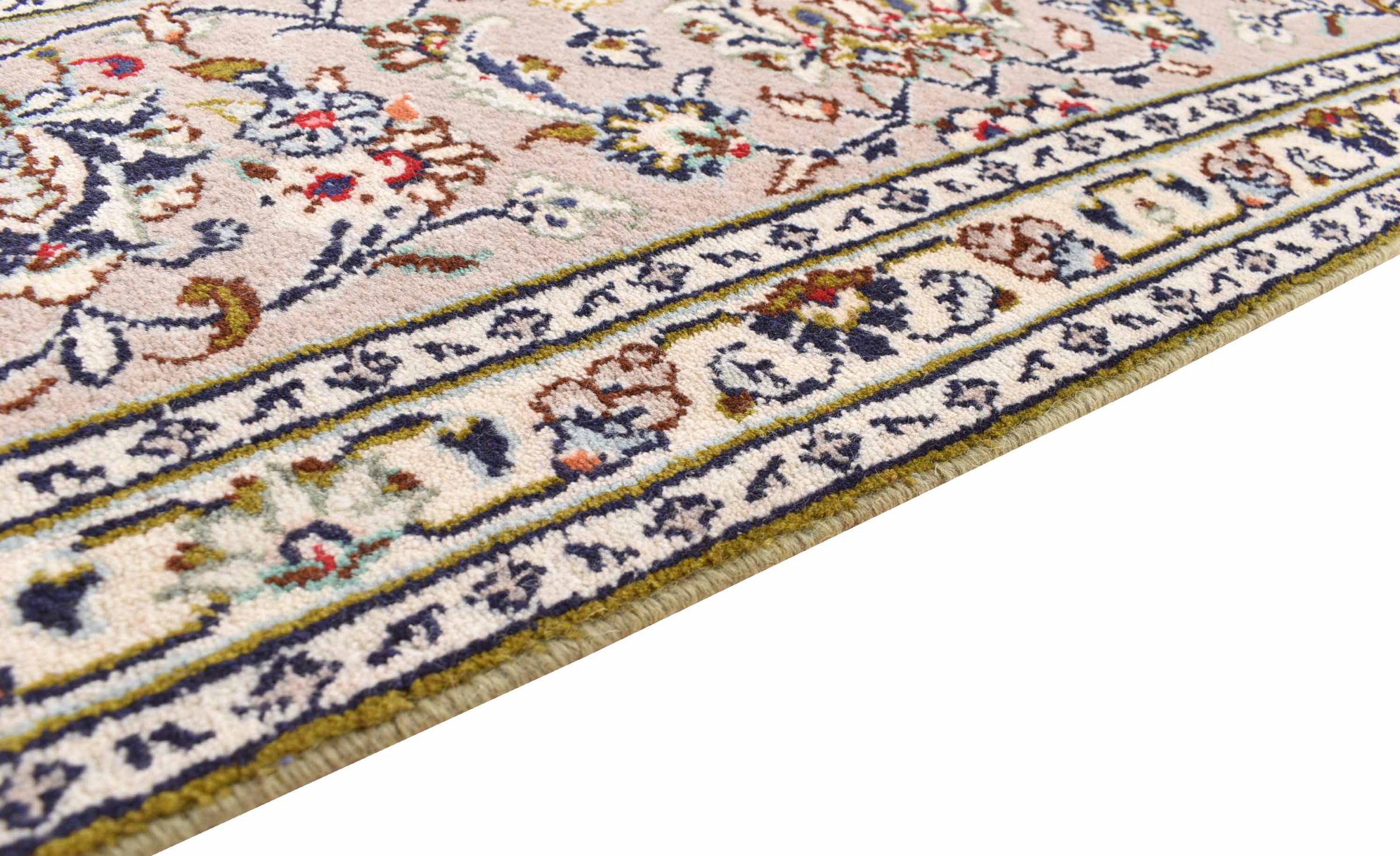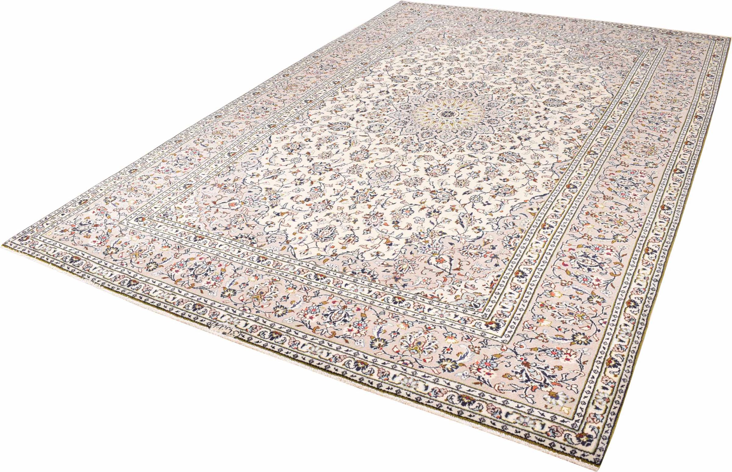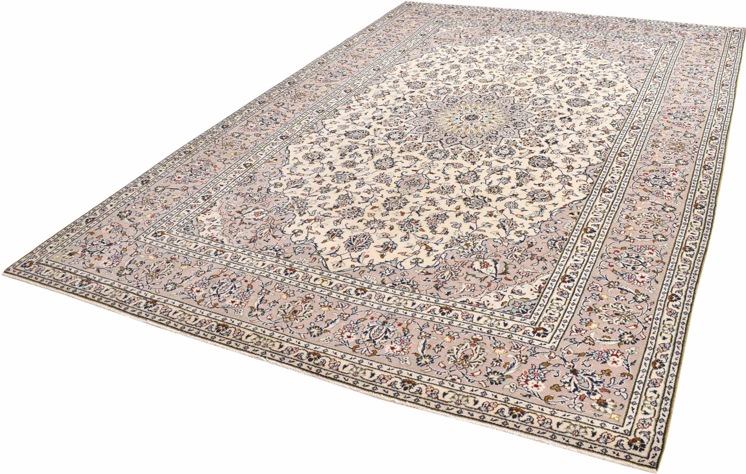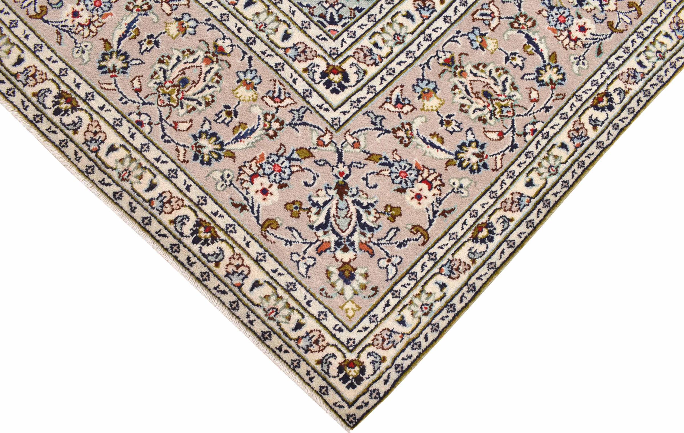 Acest covor de la Kashan (Keshan) este ținut în designul său foarte tradițional și tipic persan, cu ornamente frumoase. Covoarele Kashan sunt foarte populare datorită designului lor excepțional de elegant. Aceste covoare provin din Kashan, un oraș de pe anticul Drum al Mătăsii. Acest covor a fost înnodat manual din lână de oaie de calitate superioară și va fi un punct culminant unic în casa dvs.