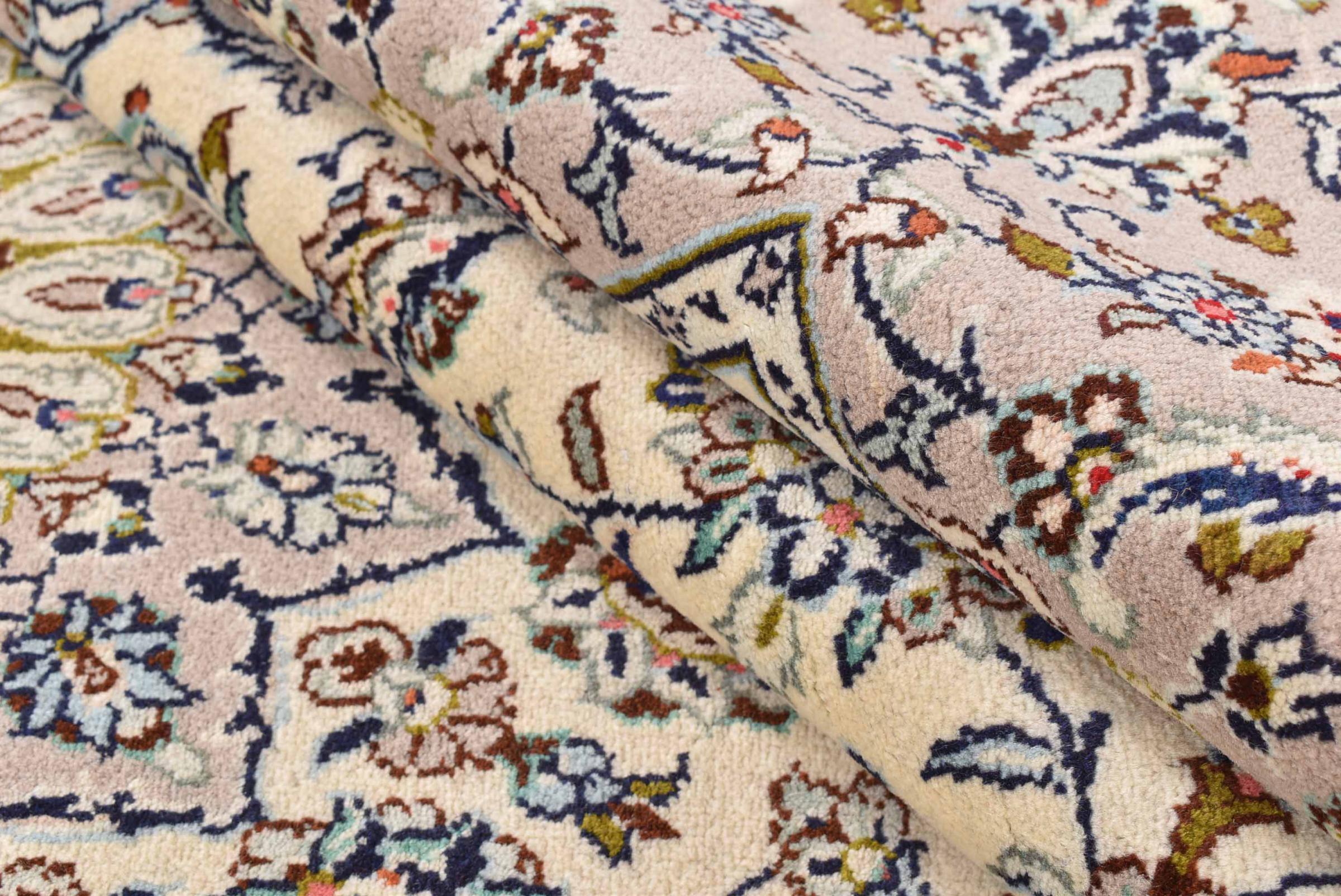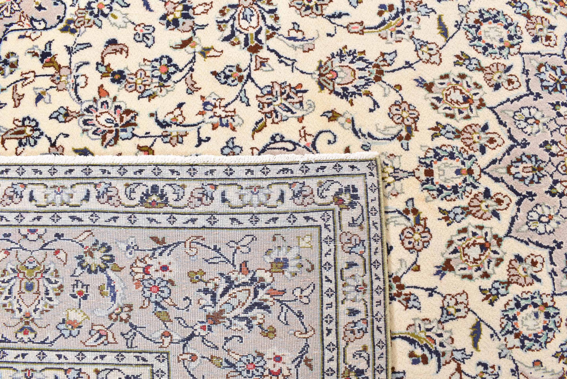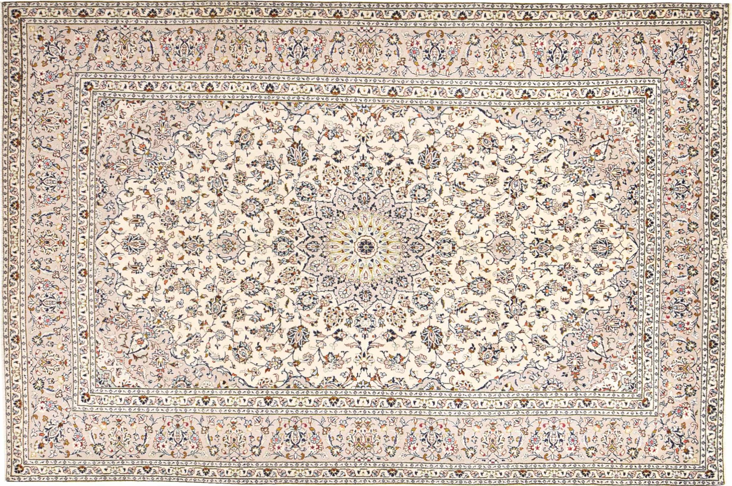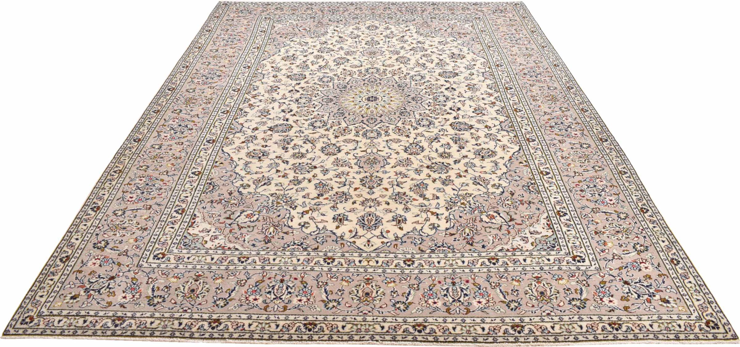 Acest covor de la Kashan (Keshan) este ținut în designul său foarte tradițional și tipic persan, cu ornamente frumoase. Covoarele Kashan sunt foarte populare datorită designului lor excepțional de elegant. Aceste covoare provin din Kashan, un oraș de pe anticul Drum al Mătăsii. Acest covor a fost înnodat manual din lână de oaie de calitate superioară și va fi un punct culminant unic în casa dvs.