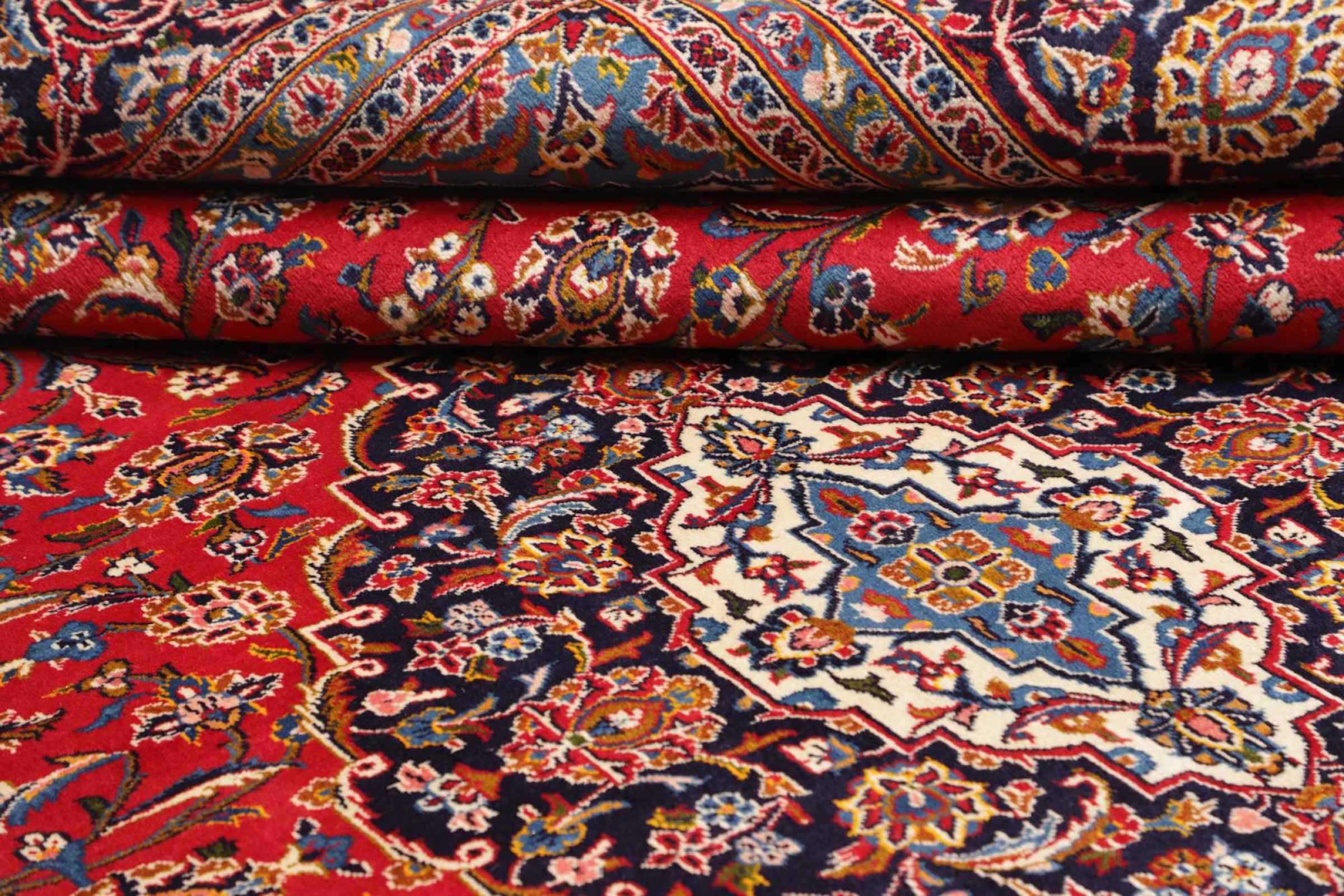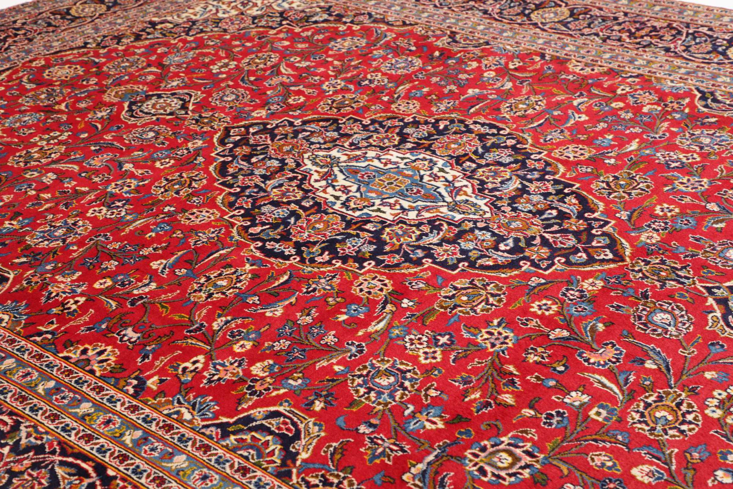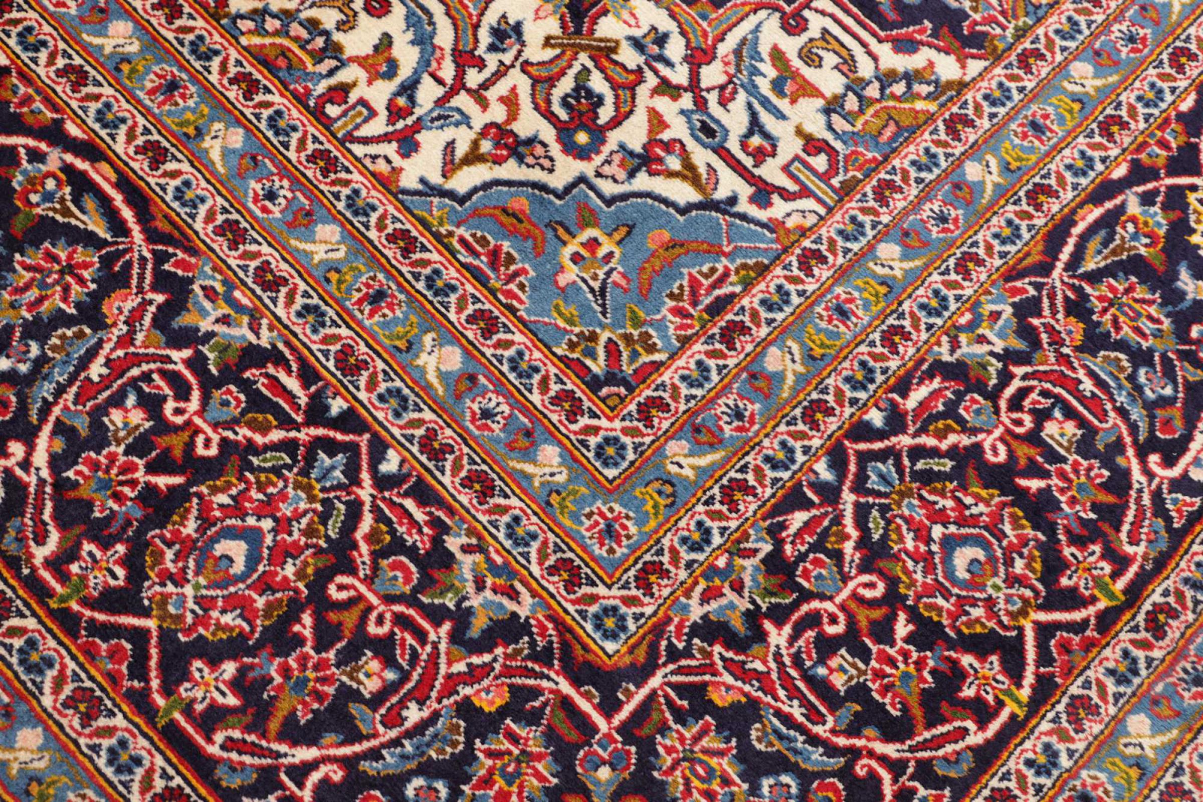 Acest covor de la Kashan (Keshan) este ținut în designul său foarte tradițional și tipic persan, cu ornamente frumoase. Covoarele Kashan sunt foarte populare datorită designului lor excepțional de elegant. Aceste covoare provin din Kashan, un oraș de pe anticul Drum al Mătăsii. Acest covor a fost înnodat manual din lână de oaie de calitate superioară și va fi un punct culminant unic în casa dvs.