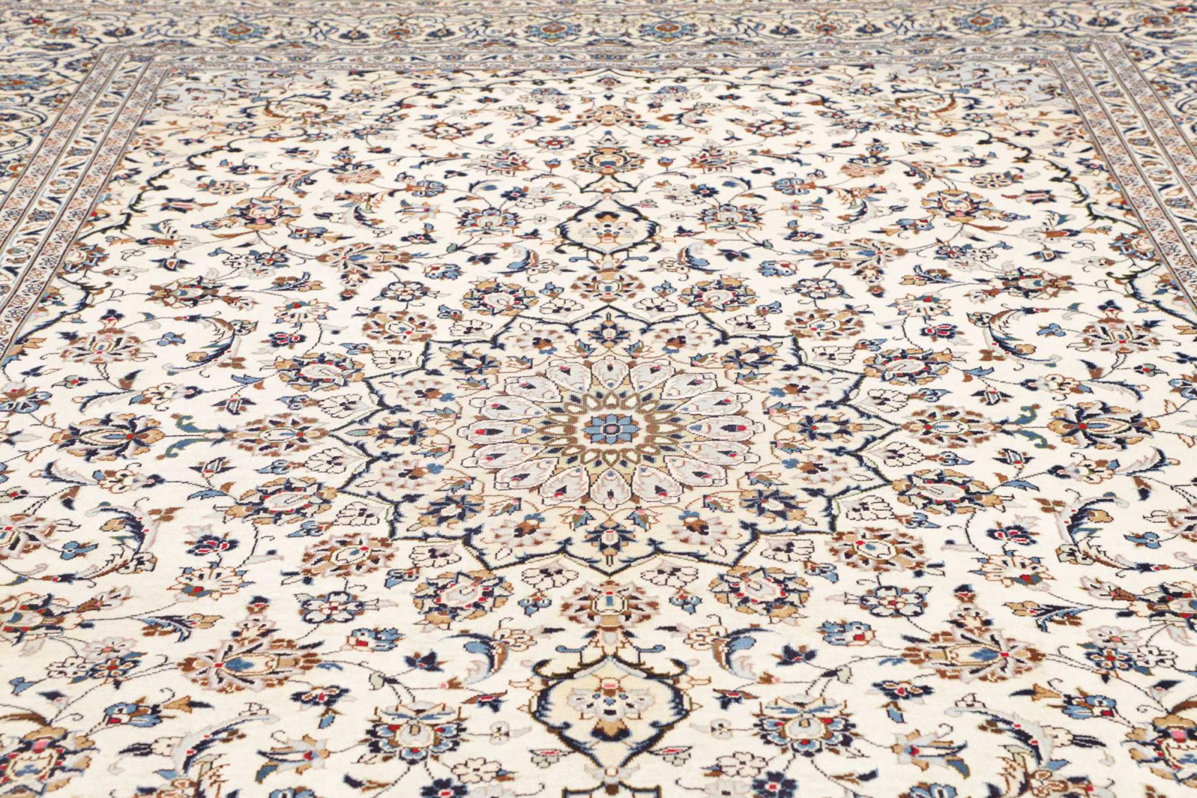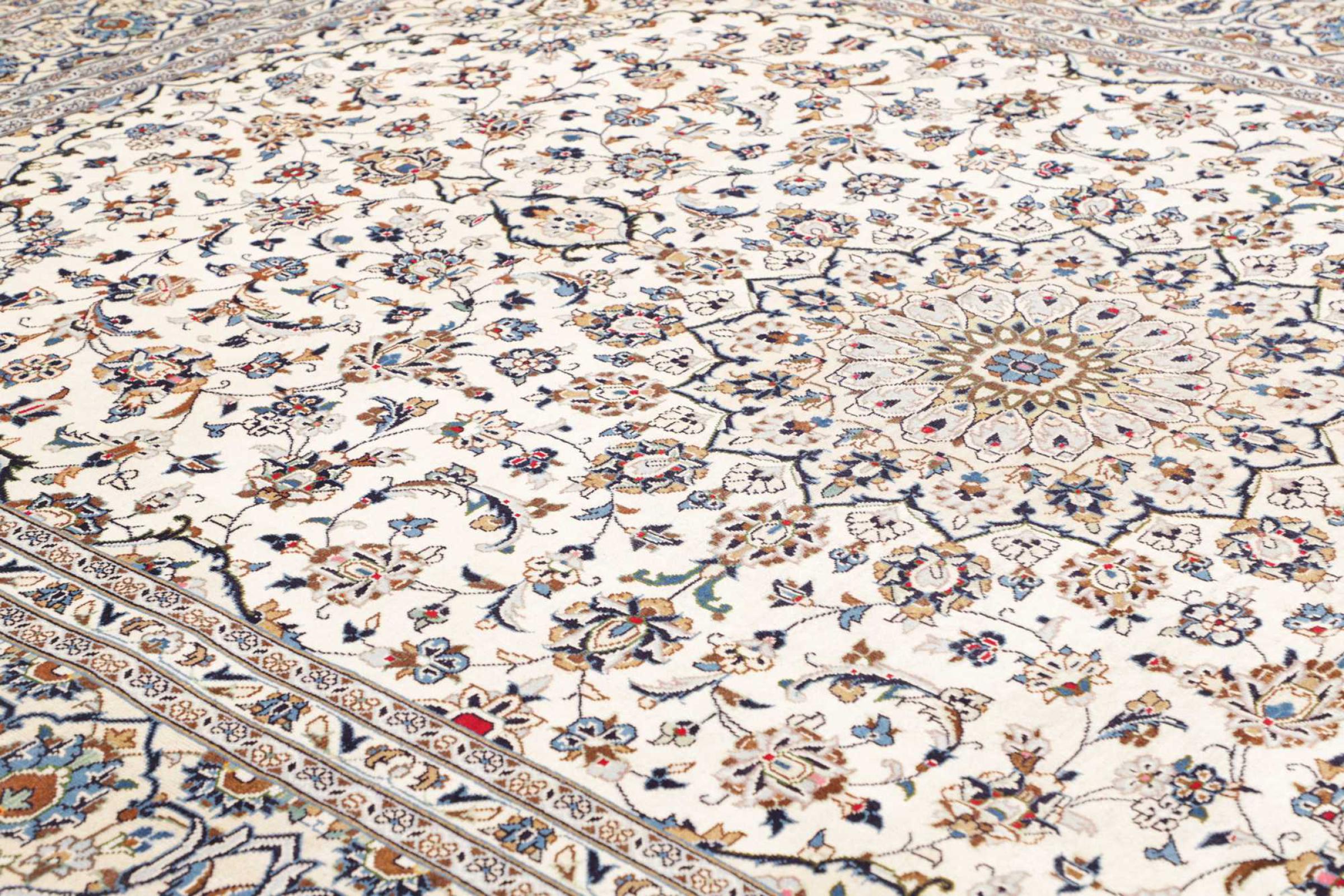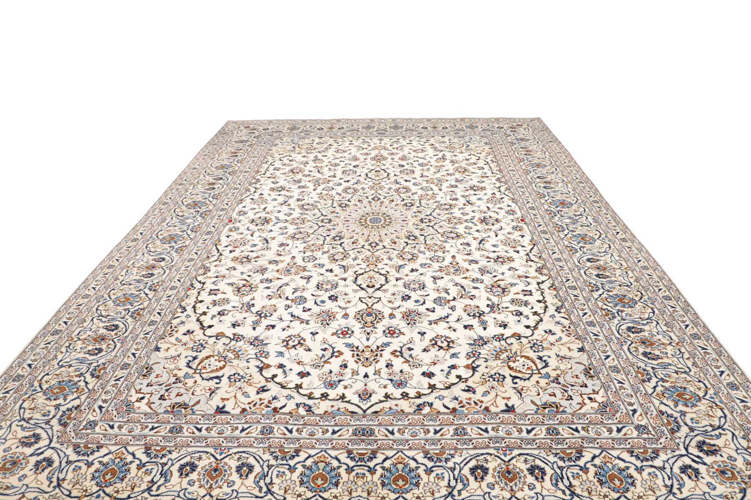 Acest covor de la Kashan (Keshan) este ținut în designul său foarte tradițional și tipic persan, cu ornamente frumoase. Covoarele Kashan sunt foarte populare datorită designului lor excepțional de elegant. Aceste covoare provin din Kashan, un oraș de pe anticul Drum al Mătăsii. Acest covor a fost înnodat manual din lână de oaie de calitate superioară și va fi un punct culminant unic în casa dvs.