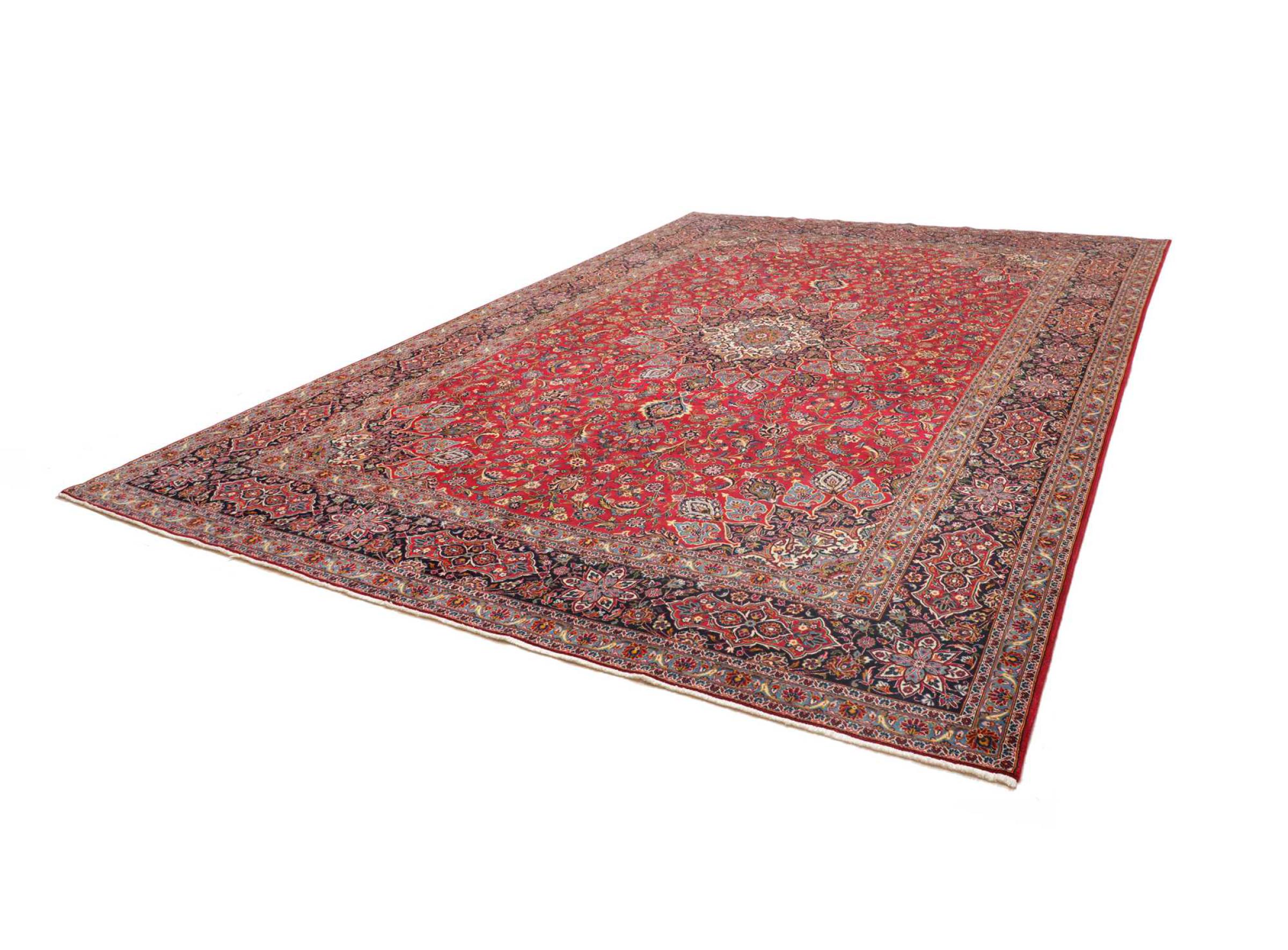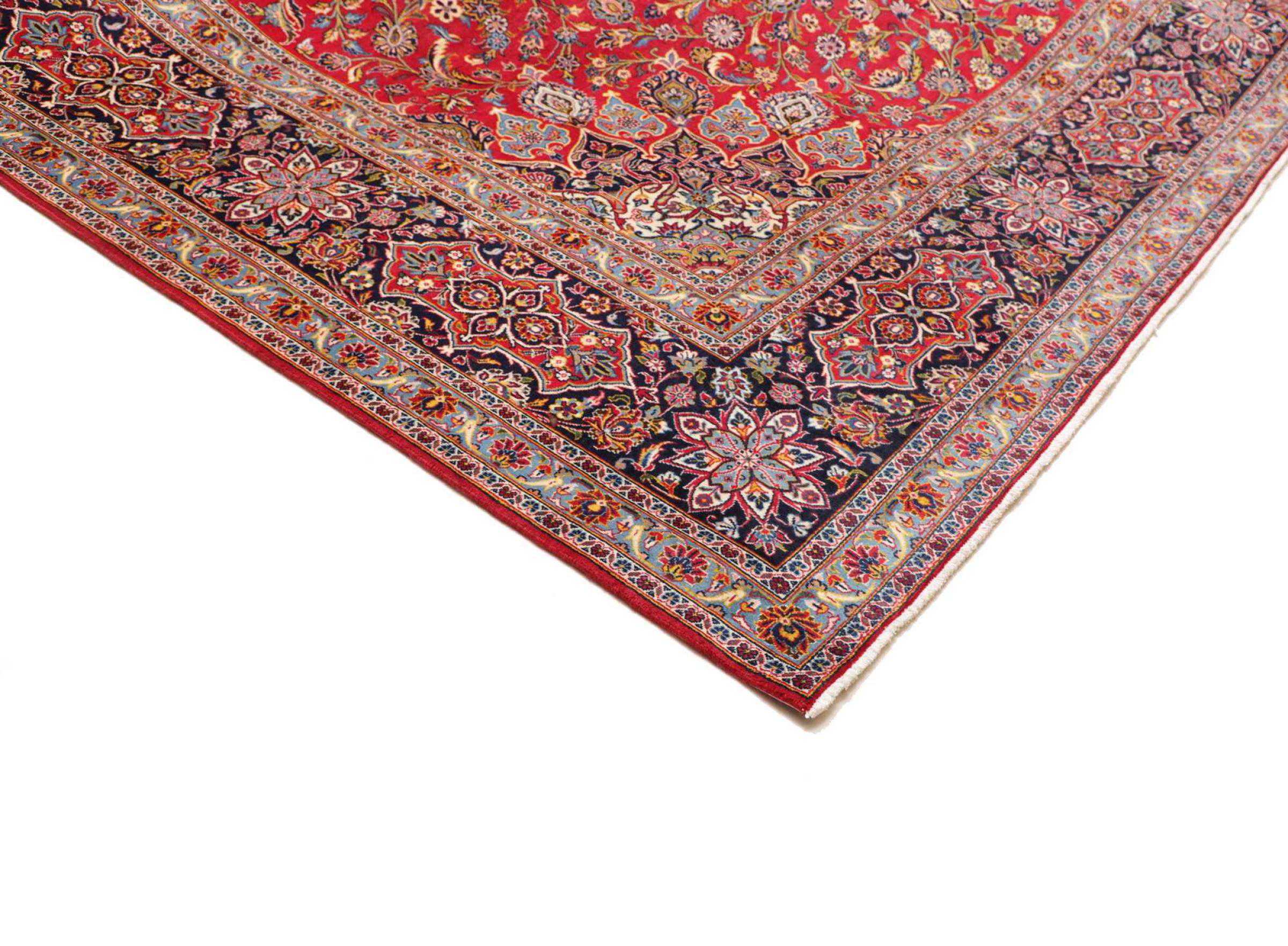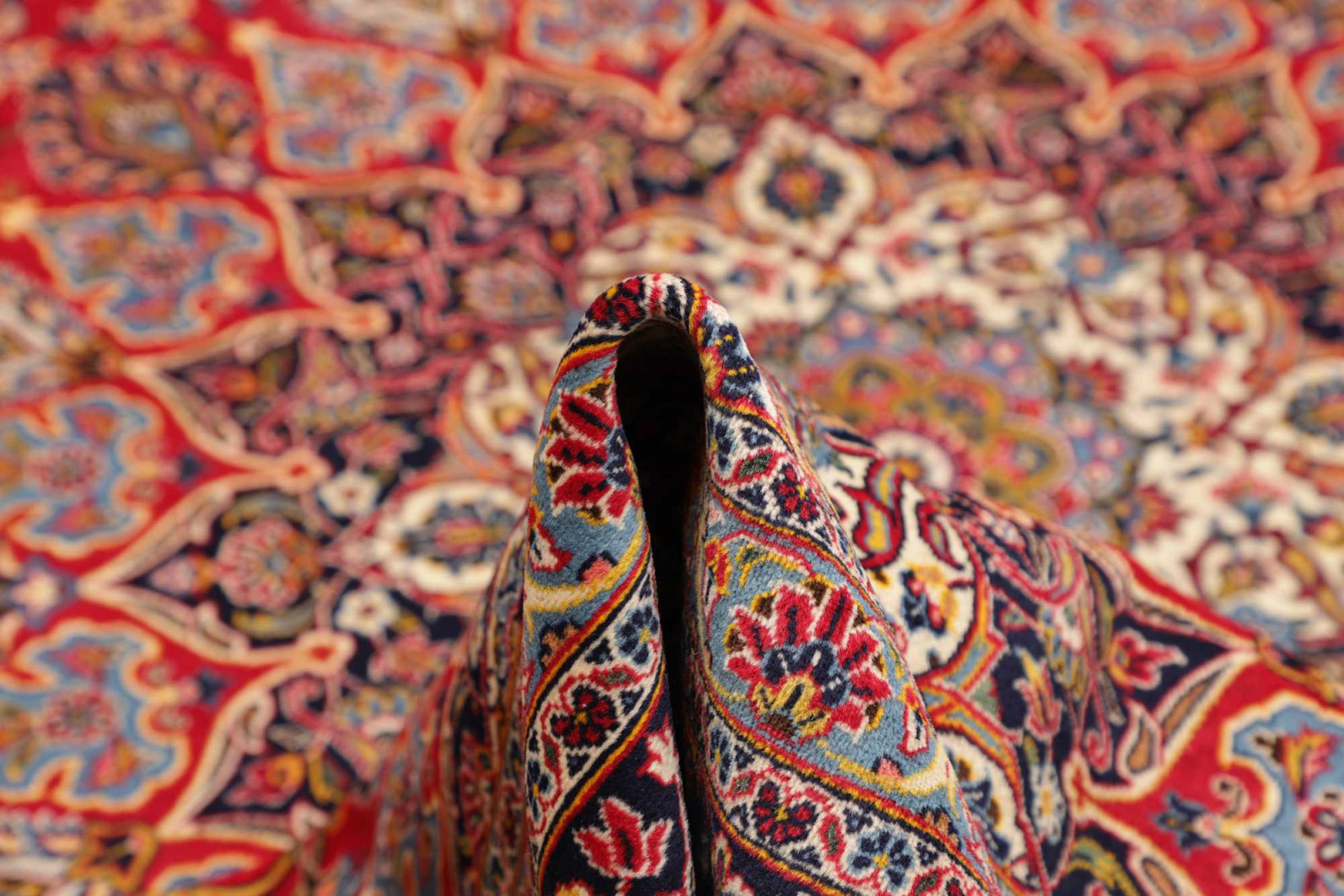 Acest covor de la Kashan (Keshan) este ținut în designul său foarte tradițional și tipic persan, cu ornamente frumoase. Covoarele Kashan sunt foarte populare datorită designului lor excepțional de elegant. Aceste covoare provin din Kashan, un oraș de pe anticul Drum al Mătăsii. Acest covor a fost înnodat manual din lână de oaie de calitate superioară și va fi un punct culminant unic în casa dvs.
