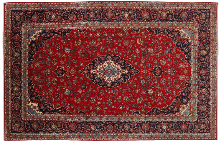Acest covor de la Kashan (Keshan) este ținut în designul său foarte tradițional și tipic persan, cu ornamente frumoase. Covoarele Kashan sunt foarte populare datorită designului lor excepțional de elegant. Aceste covoare provin din Kashan, un oraș de pe anticul Drum al Mătăsii. Acest covor a fost înnodat manual din lână de oaie de calitate superioară și va fi un punct culminant unic în casa dvs.