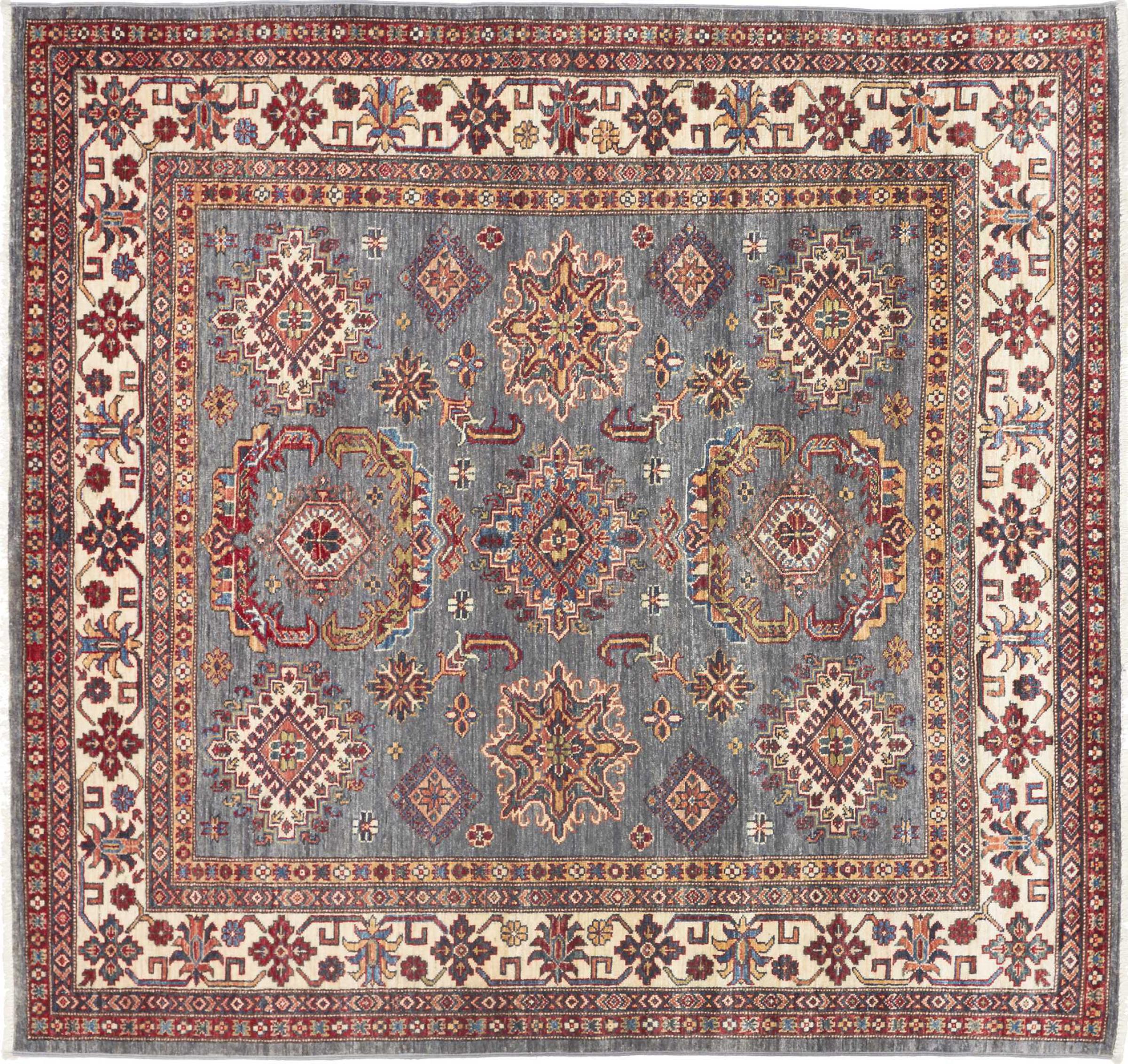 Covor Nr.: 306533001438509 Mărime: 188x178 cm Grosime: cca. 5 mm Noduri: 128 000 - 160 000 / m² Prelucrare: Lucrate de mână Catifeaua: Lână toarsă manual Urzeala: Bumbac Origine: Pakistan Vechime: Nou Greutate: cca. 8 kg În stoc: Unic - Doar 1 în stoc