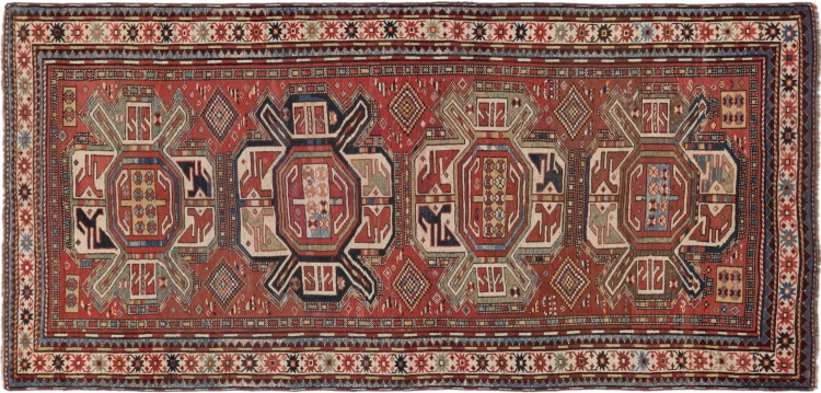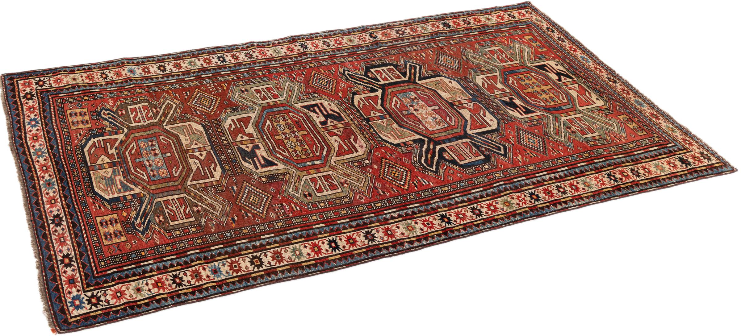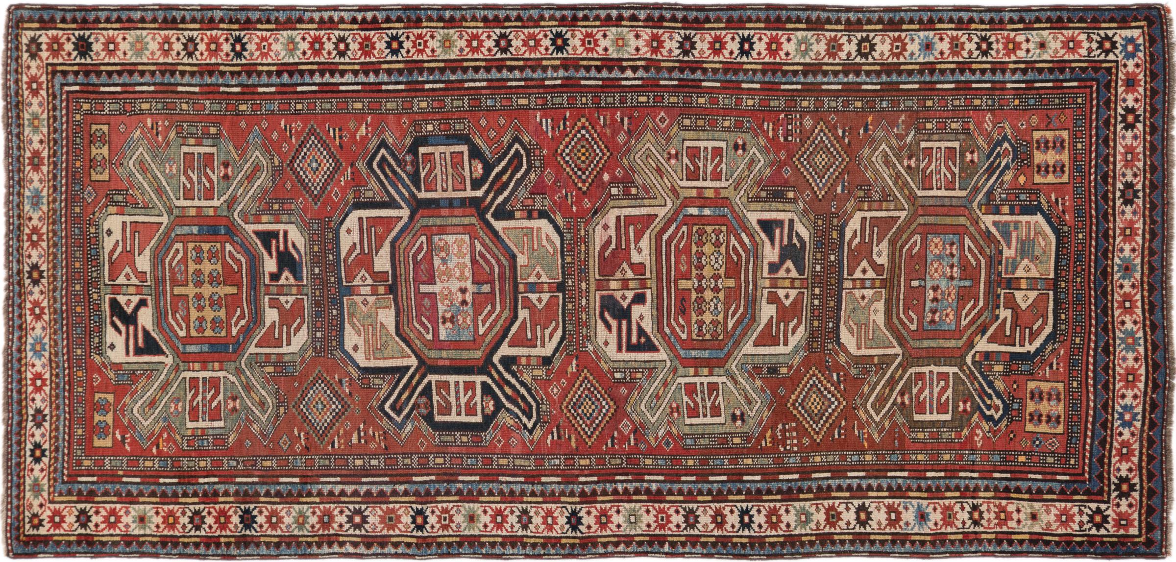 Covor Nr.: 298945001122 Mărime: 265x128 cm Grosime: cca. 5 mm Noduri: 200 000 - 250 000 / m² Prelucrare: Lucrate de mână Catifeaua: Lână toarsă manual Urzeala: Lână Stare / Conservare Perfect Origine: Azerbaijan / Rusia Vechime: antic, vechi de peste 80 de ani Greutate: cca. 8 kg În stoc: Unic - Doar 1 în stoc