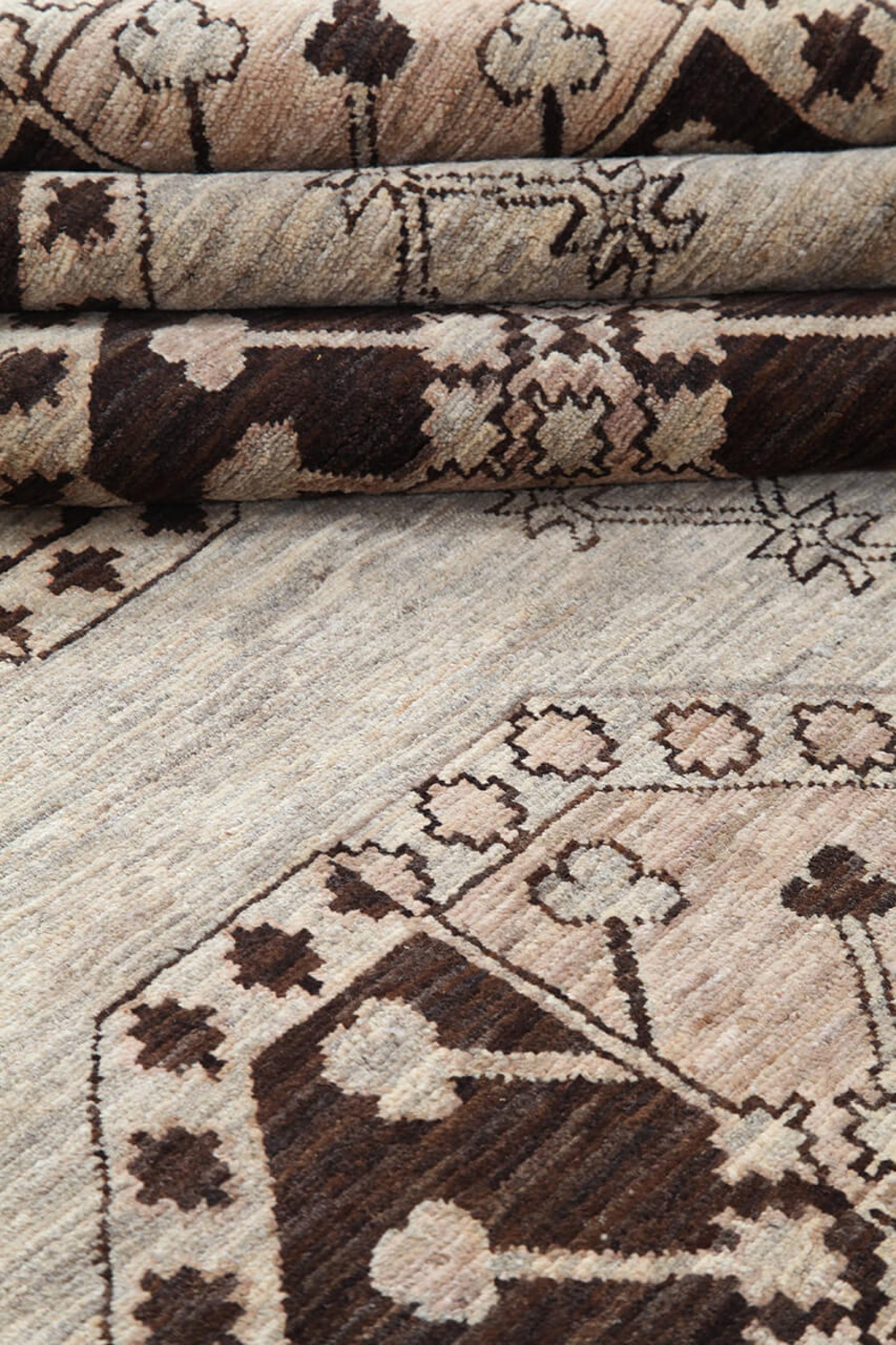 Acest covor este realizat din lână de oaie toartă manual de cea mai bună calitate. În Iran (fosta Persia), Afganistan și Pakistan în special, lâna este încă torsă manual înainte de a începe înnodarea propriu-zisă a covorului. Lâna s-a dovedit a fi un material natural și extrem de rezistent de-a lungul secolelor. Printre altele, are proprietăți de respingere a murdăriei și de izolare termică. În același timp, lâna este incomparabil de moale și are o strălucire naturală.