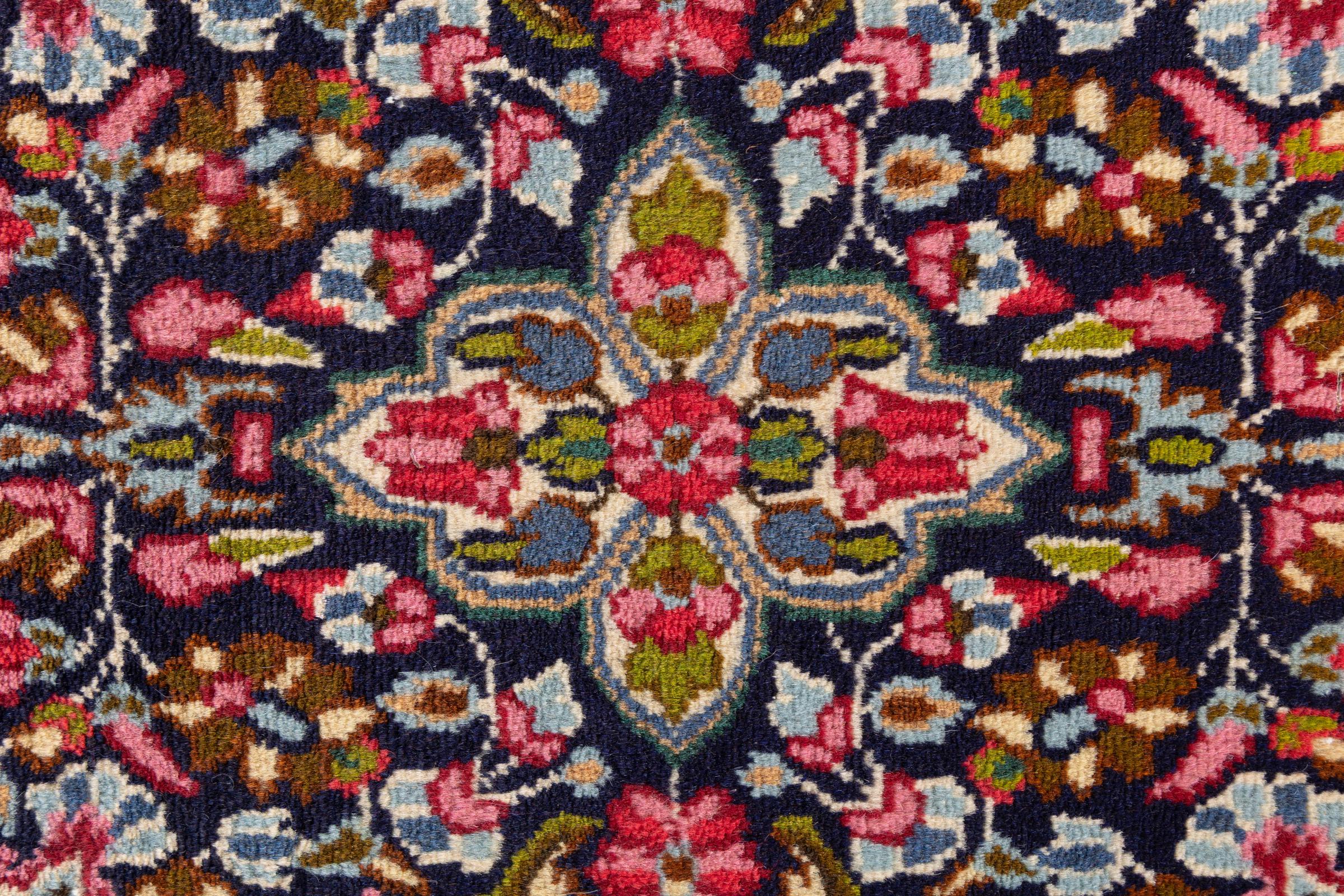 Acest covor Kerman impresionează prin calitatea și designul său. A fost înnodat manual în orașul Kerman, o oază într-un deșert aflat la mare distanță de Teheran, din fire de înaltă calitate, timp de câteva luni. Vedeți această operă de artă cu ochii voștri. Oferă camerei dvs. o frumoasă notă orientală cu ornamente florale.