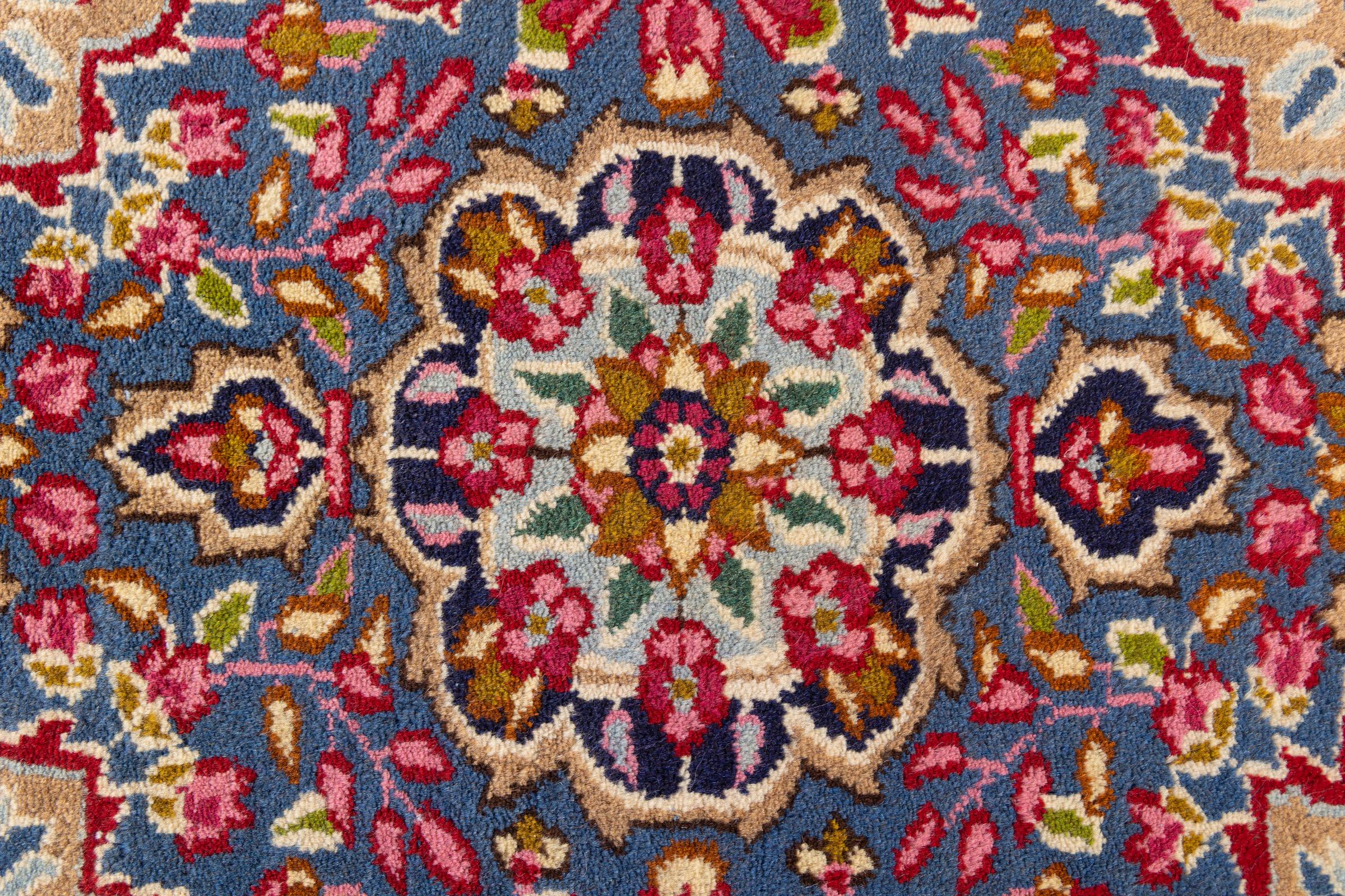 Acest covor Kerman impresionează prin calitatea și designul său. A fost înnodat manual în orașul Kerman, o oază într-un deșert aflat la mare distanță de Teheran, din fire de înaltă calitate, timp de câteva luni. Vedeți această operă de artă cu ochii voștri. Oferă camerei dvs. o frumoasă notă orientală cu ornamente florale.