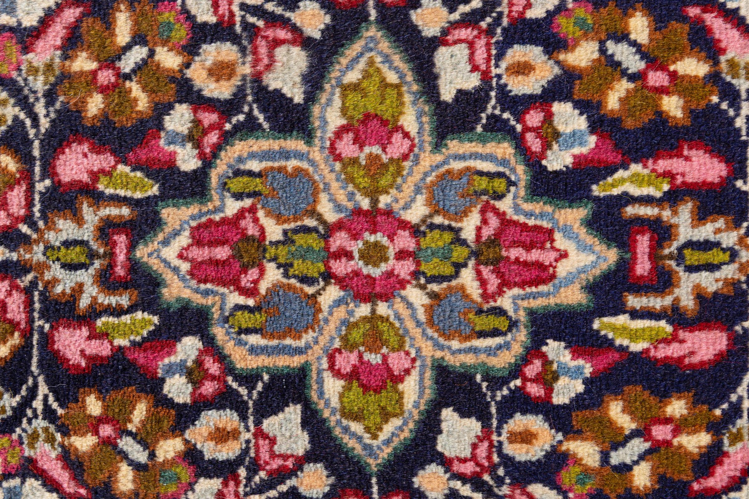 Acest covor Kerman impresionează prin calitatea și designul său. A fost înnodat manual în orașul Kerman, o oază într-un deșert aflat la mare distanță de Teheran, din fire de înaltă calitate, timp de câteva luni. Vedeți această operă de artă cu ochii voștri. Oferă camerei dvs. o frumoasă notă orientală cu ornamente florale.