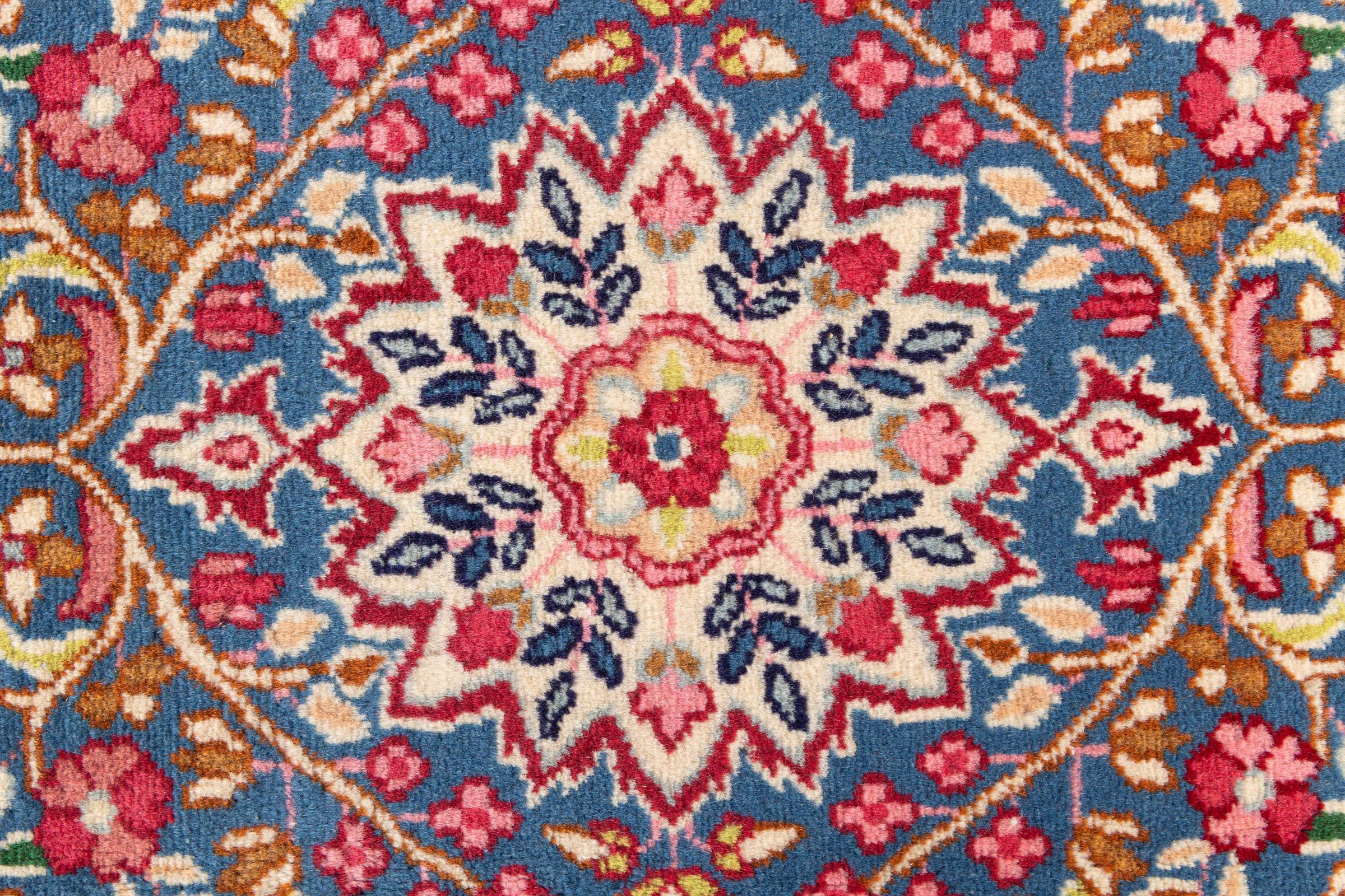 Acest covor Kerman impresionează prin calitatea și designul său. A fost înnodat manual în orașul Kerman, o oază într-un deșert aflat la mare distanță de Teheran, din fire de înaltă calitate, timp de câteva luni. Vedeți această operă de artă cu ochii voștri. Oferă camerei dvs. o frumoasă notă orientală cu ornamente florale.