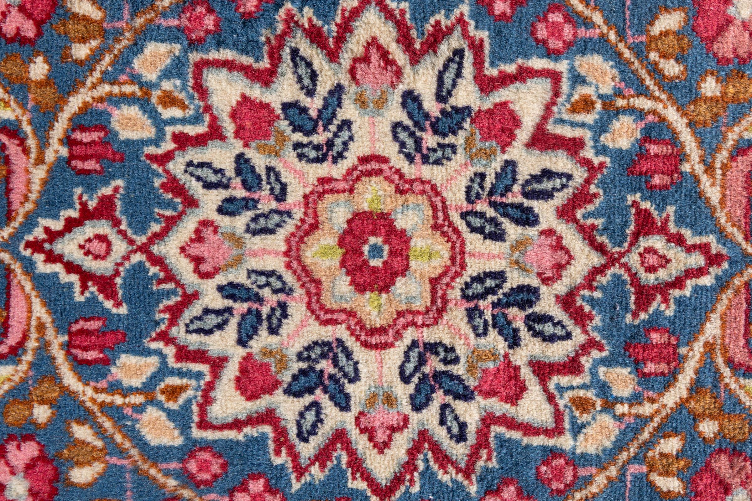 Acest covor Kerman impresionează prin calitatea și designul său. A fost înnodat manual în orașul Kerman, o oază într-un deșert aflat la mare distanță de Teheran, din fire de înaltă calitate, timp de câteva luni. Vedeți această operă de artă cu ochii voștri. Oferă camerei dvs. o frumoasă notă orientală cu ornamente florale.