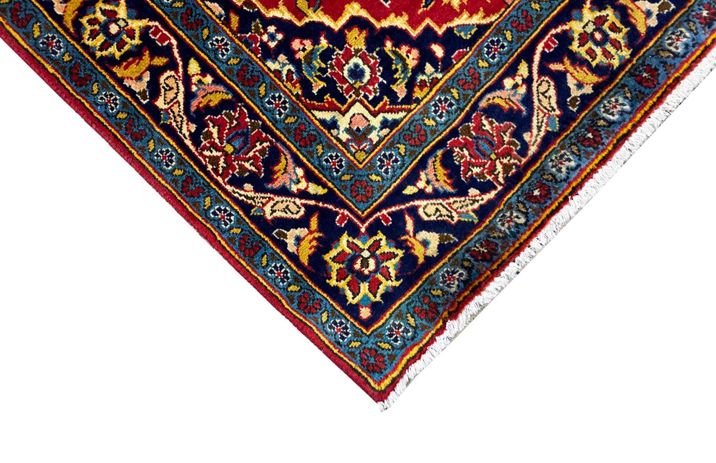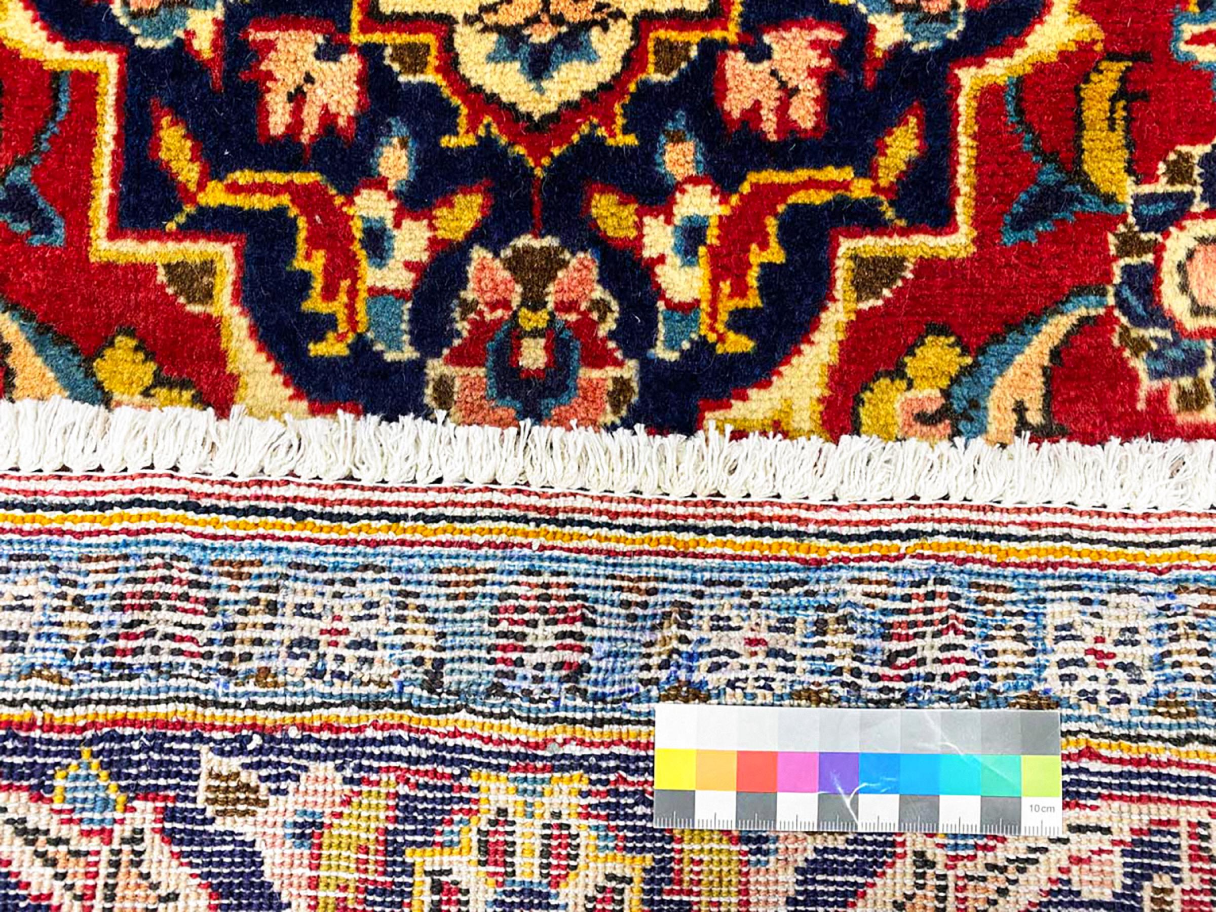 Acest covor de la Kashan (Keshan) este ținut în designul său foarte tradițional și tipic persan, cu ornamente frumoase. Covoarele Kashan sunt foarte populare datorită designului lor excepțional de elegant. Aceste covoare provin din Kashan, un oraș de pe anticul Drum al Mătăsii. Acest covor a fost înnodat manual din lână de oaie de calitate superioară și va fi un punct culminant unic în casa dvs.