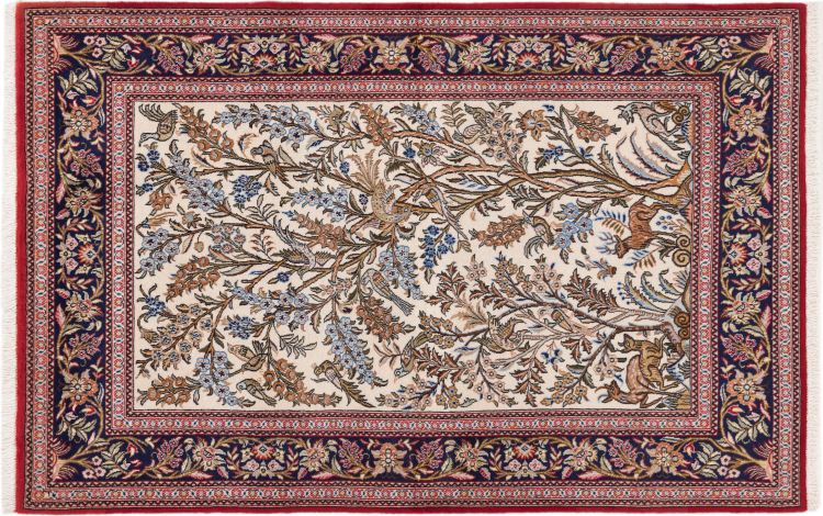 Covor Nr.: 298796008617 Mărime: 155x100 cm Grosime: cca. 10 mm Noduri: 440 000 - 490 000 / m² Prelucrare: Lucrate de mână Catifeaua: Lână fină cu mătase Urzeala: Bumbac Origine: Persien / Iran Vechime: Nou Greutate: cca. 5 kg În stoc: Unic - Doar 1 în stoc