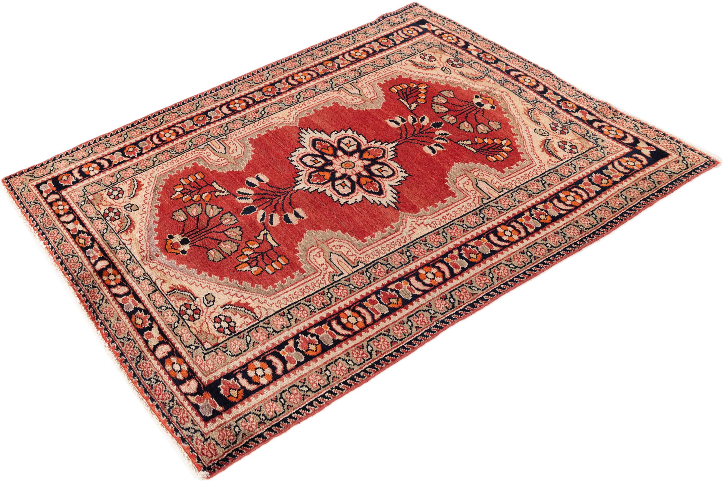 Covor Nr.: 297441001708 Mărime: 162x113 cm Grosime: cca. 8 mm Noduri: 200 000 - 250 000 / m² Prelucrare: Lucrate de mână Catifeaua: Lână toarsă manual Urzeala: Bumbac Origine: Persien / Iran Vechime: vechi, cca. 30-50 de ani Greutate: cca. 5 kg În stoc: Unic - Doar 1 în stoc
