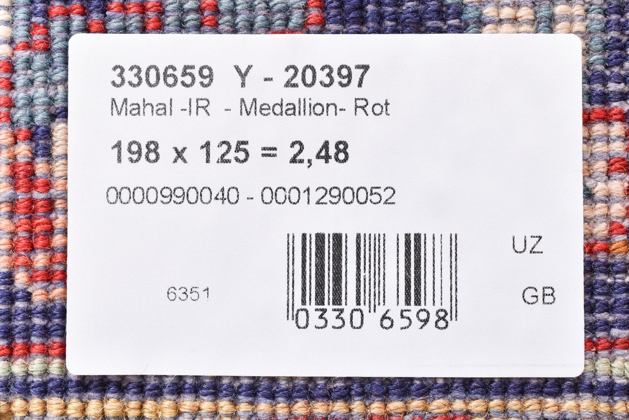 Covor Nr.: 300959002370696 Mărime: 197x124 cm Grosime: cca. 12 mm Noduri: 128 000 - 160 000 / m² Prelucrare: Lucrate de mână Catifeaua: Lână toarsă manual Urzeala: Bumbac Origine: Persien / Iran Vechime: Nou Greutate: cca. 9 kg De asemenea cunoscut ca si Mahalat În stoc: Unic - Doar 1 în stoc