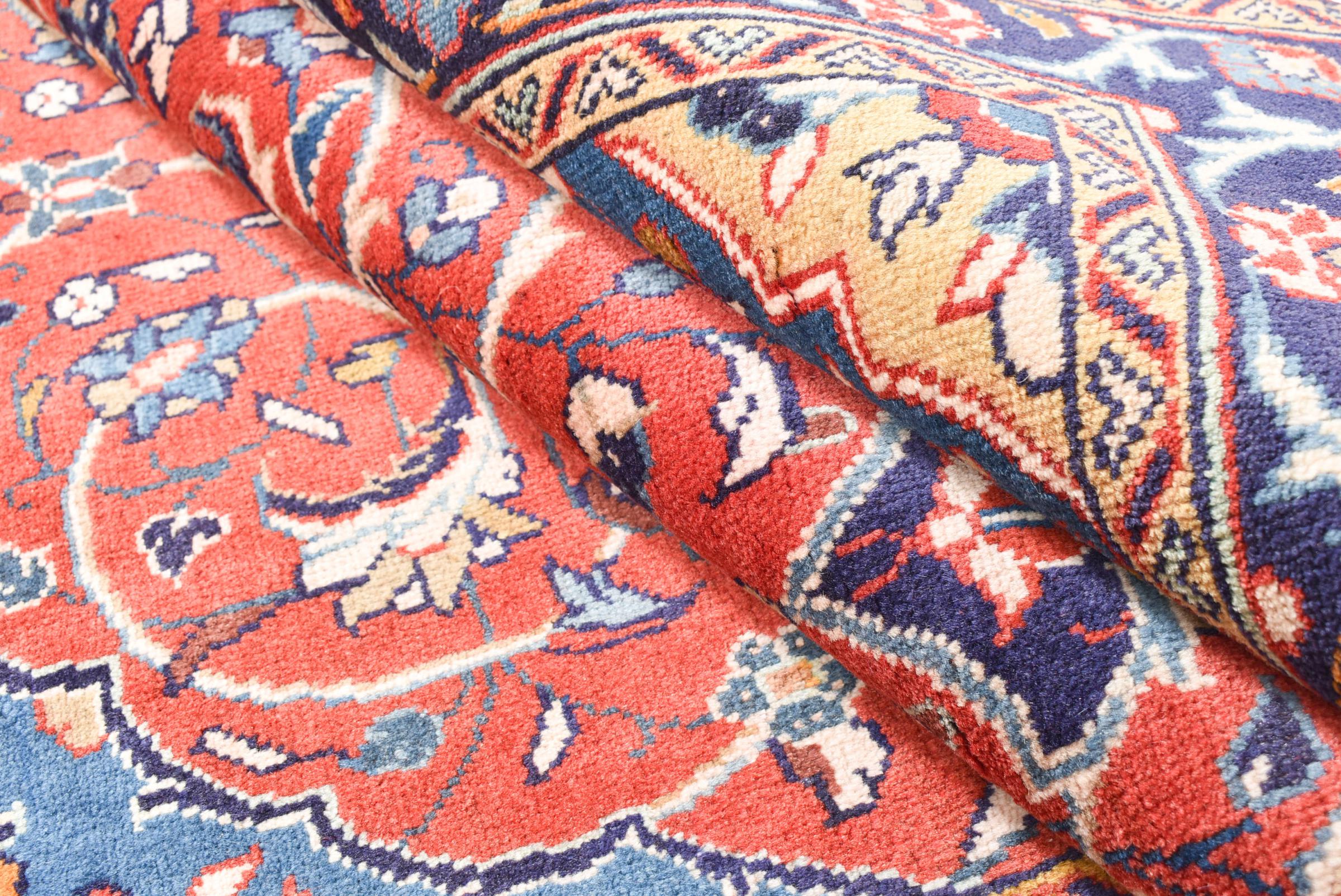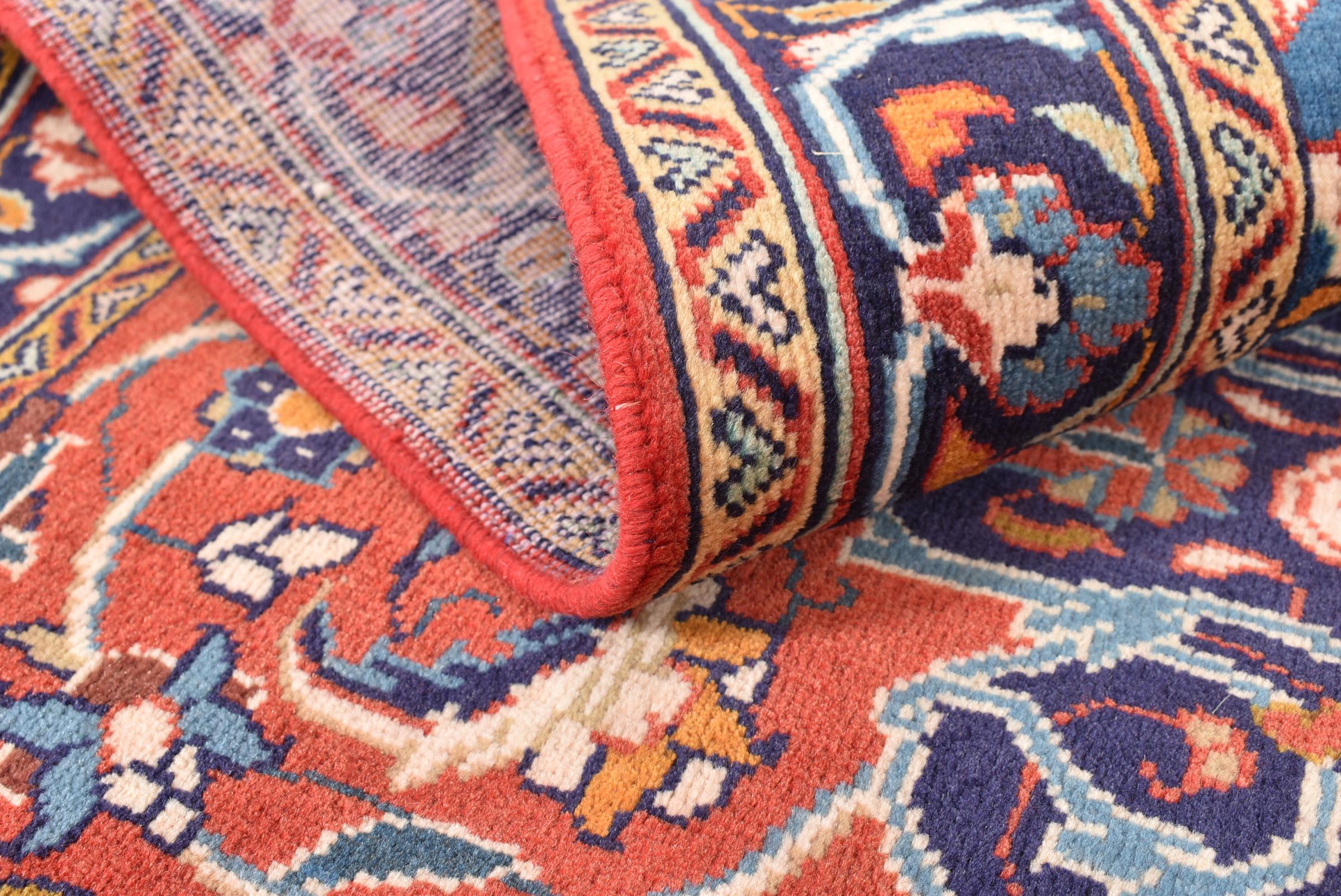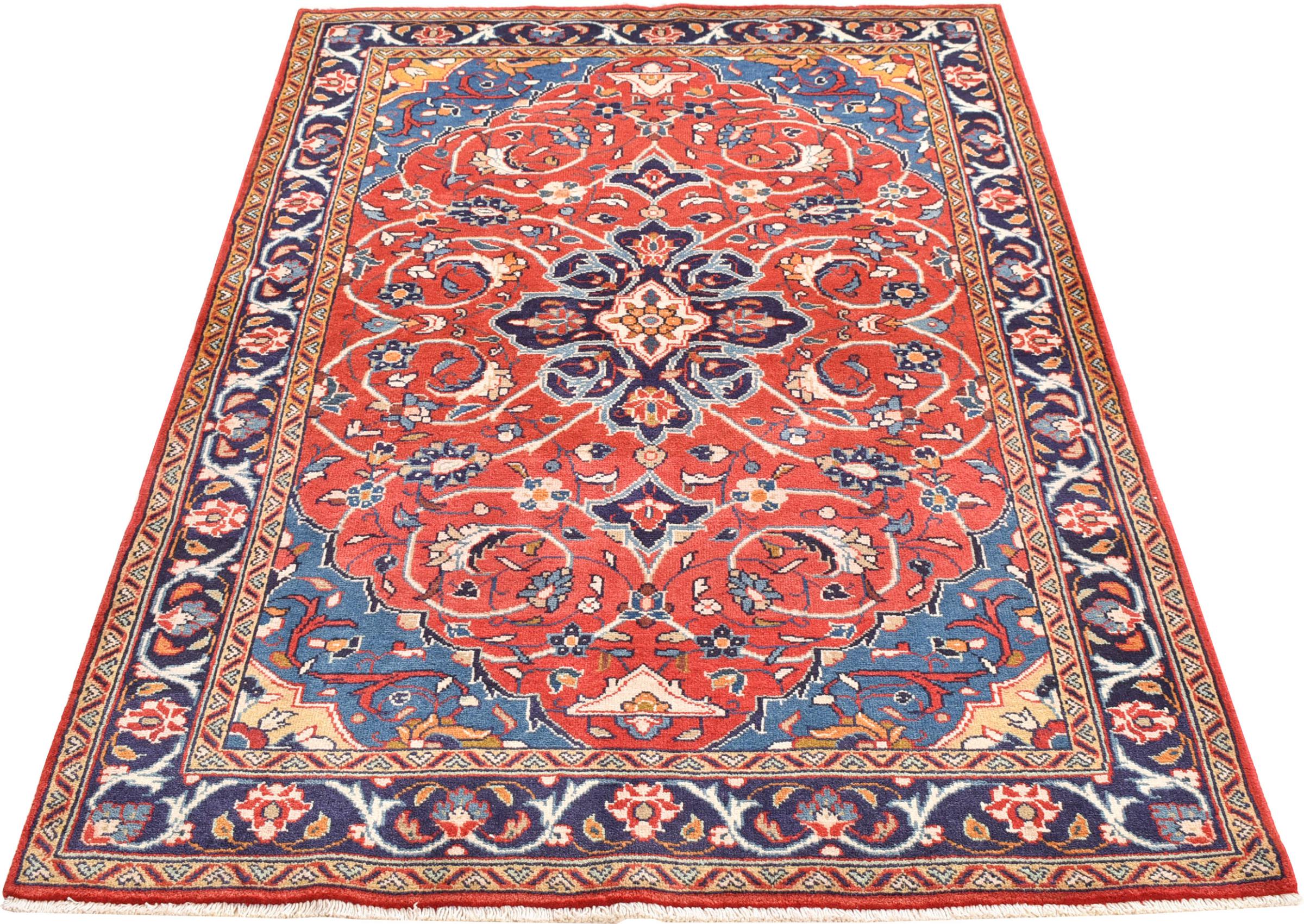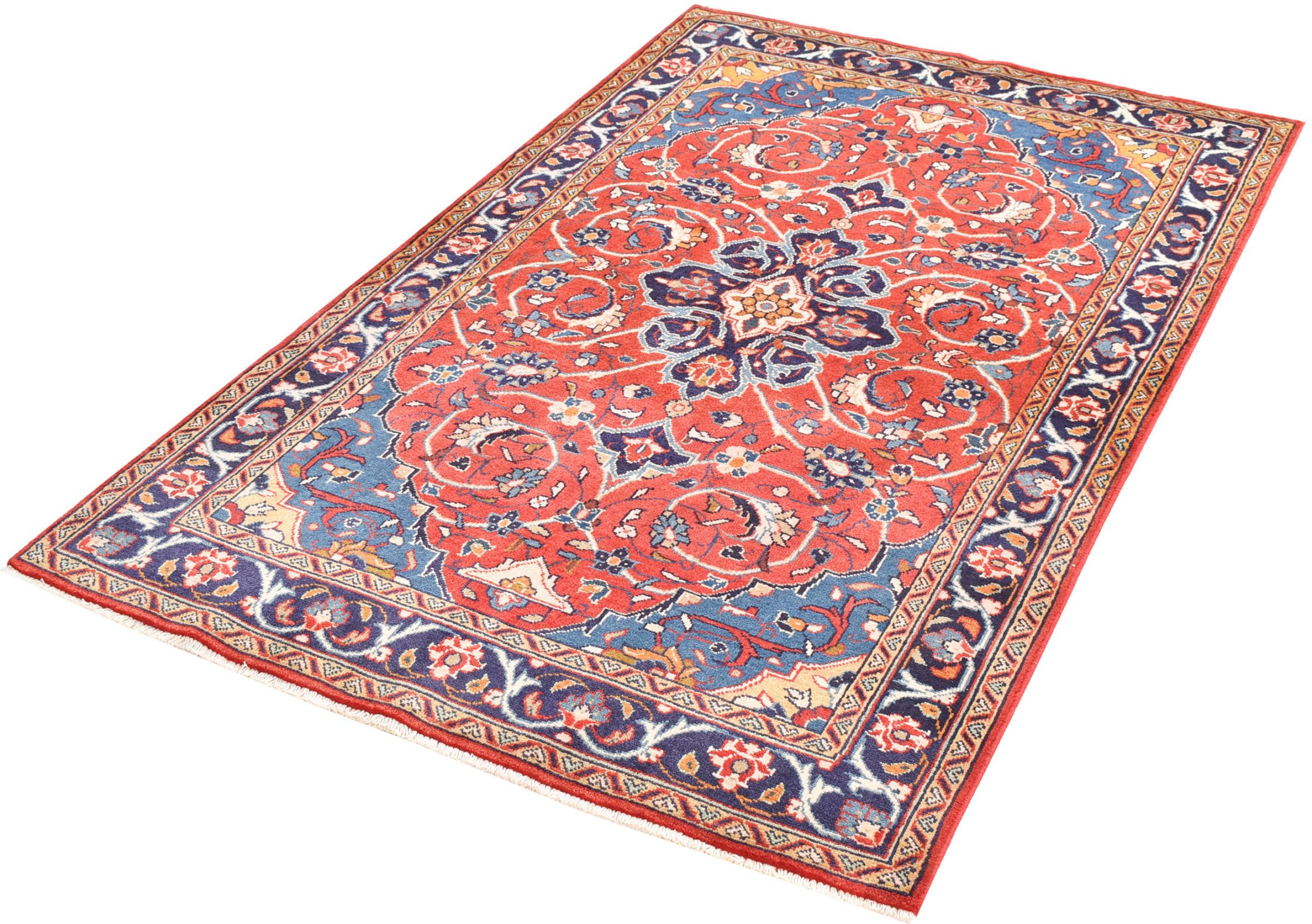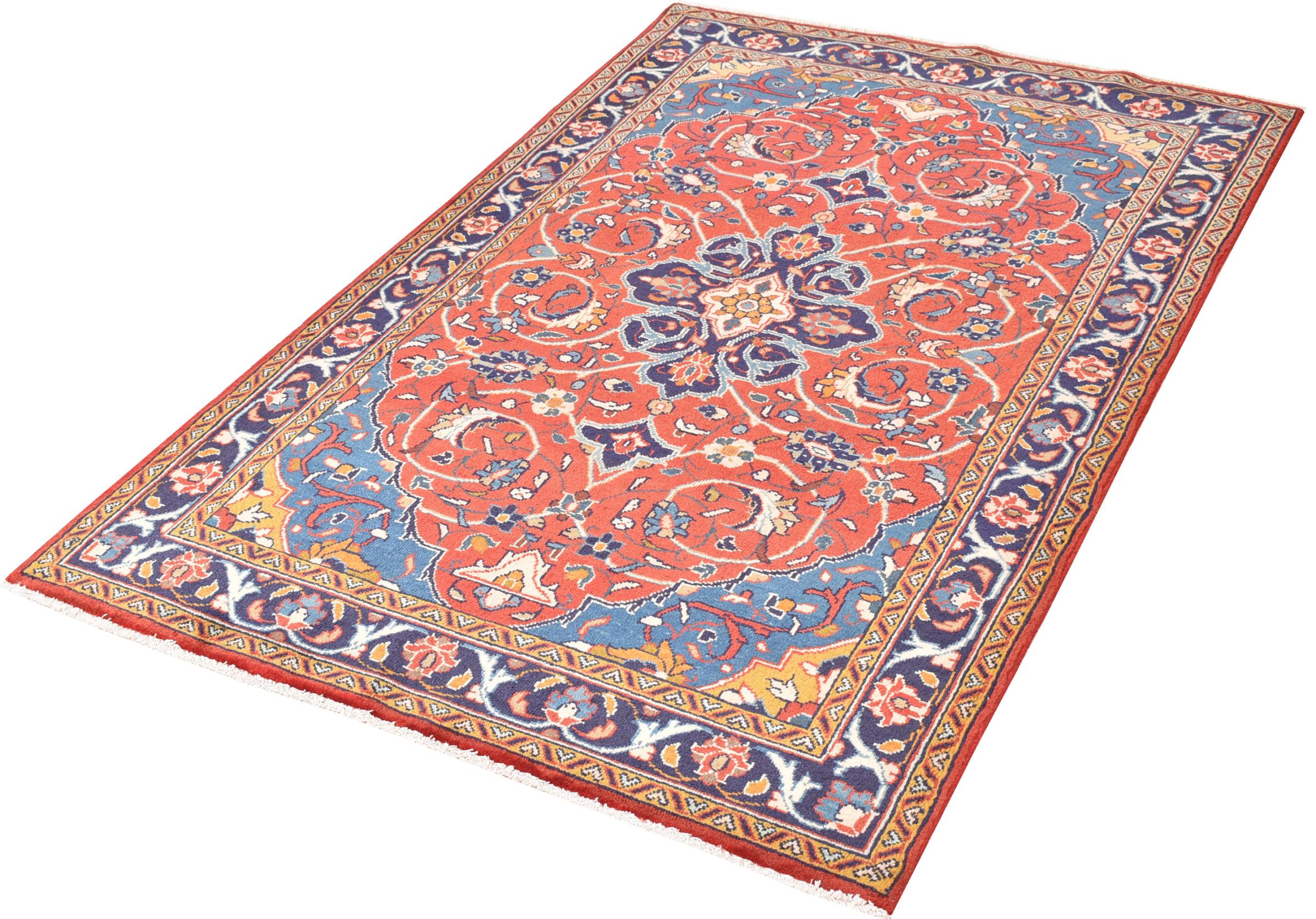 Acest covor oriental provine din proveniența Mahal, care este situat în centrul de vest a Iranului. Designul strălucește într-o schemă de culori prietenoasă, cu culori coordonate armonios. Rama detaliată pune în scenă cu stil motivele fin lucrate în câmpul interior. Ca un veritabil covor persan înnodat manual de calitate robustă, modelul este estetic și durabil în același timp - ideal pentru hol sau camera de zi.