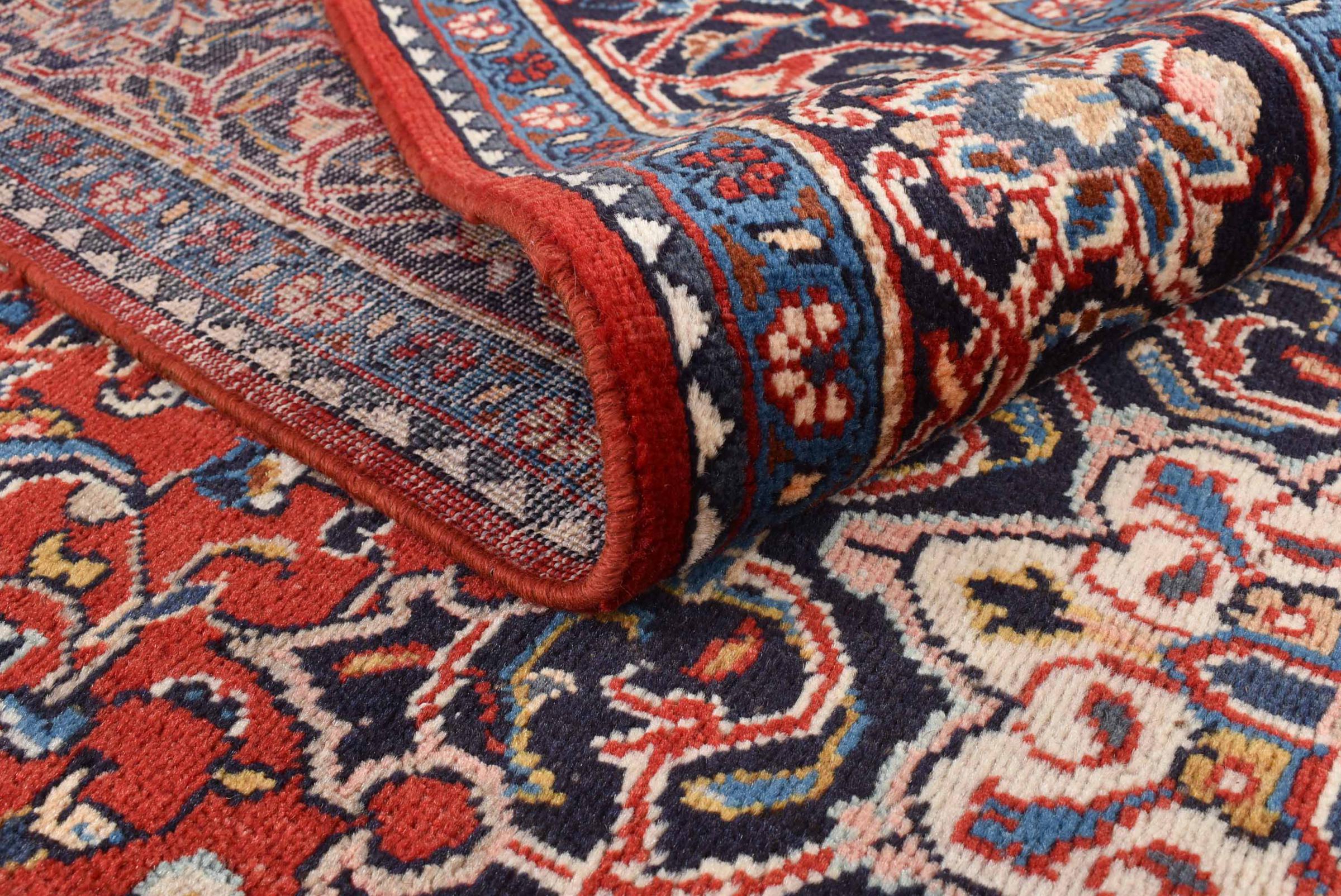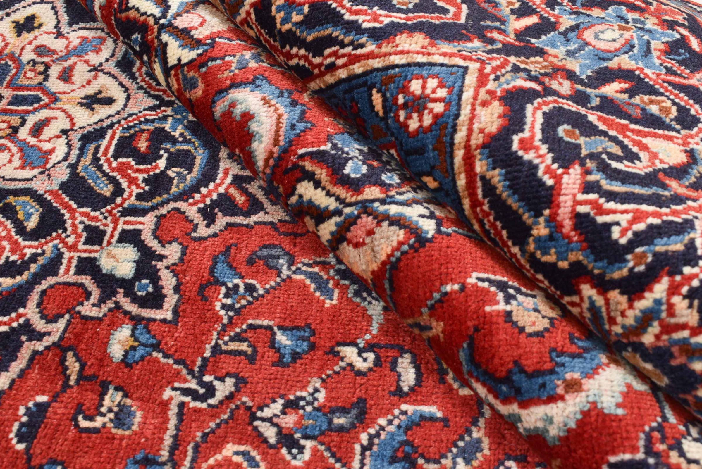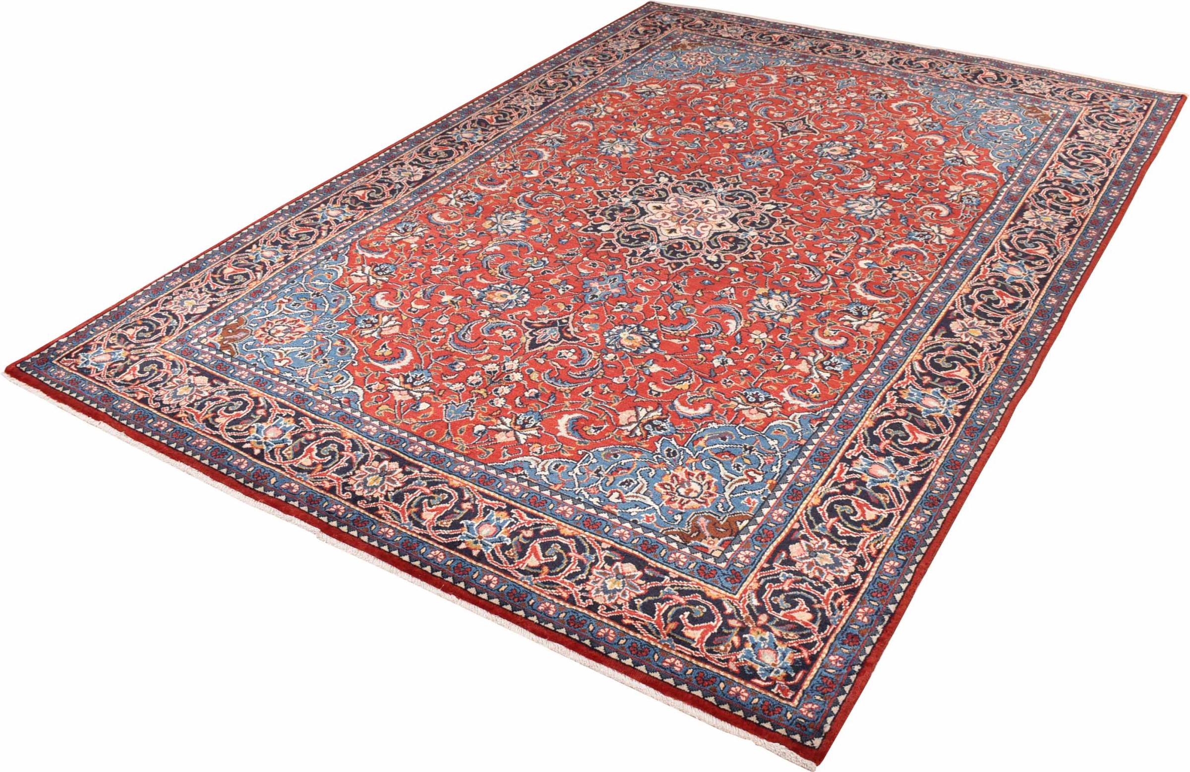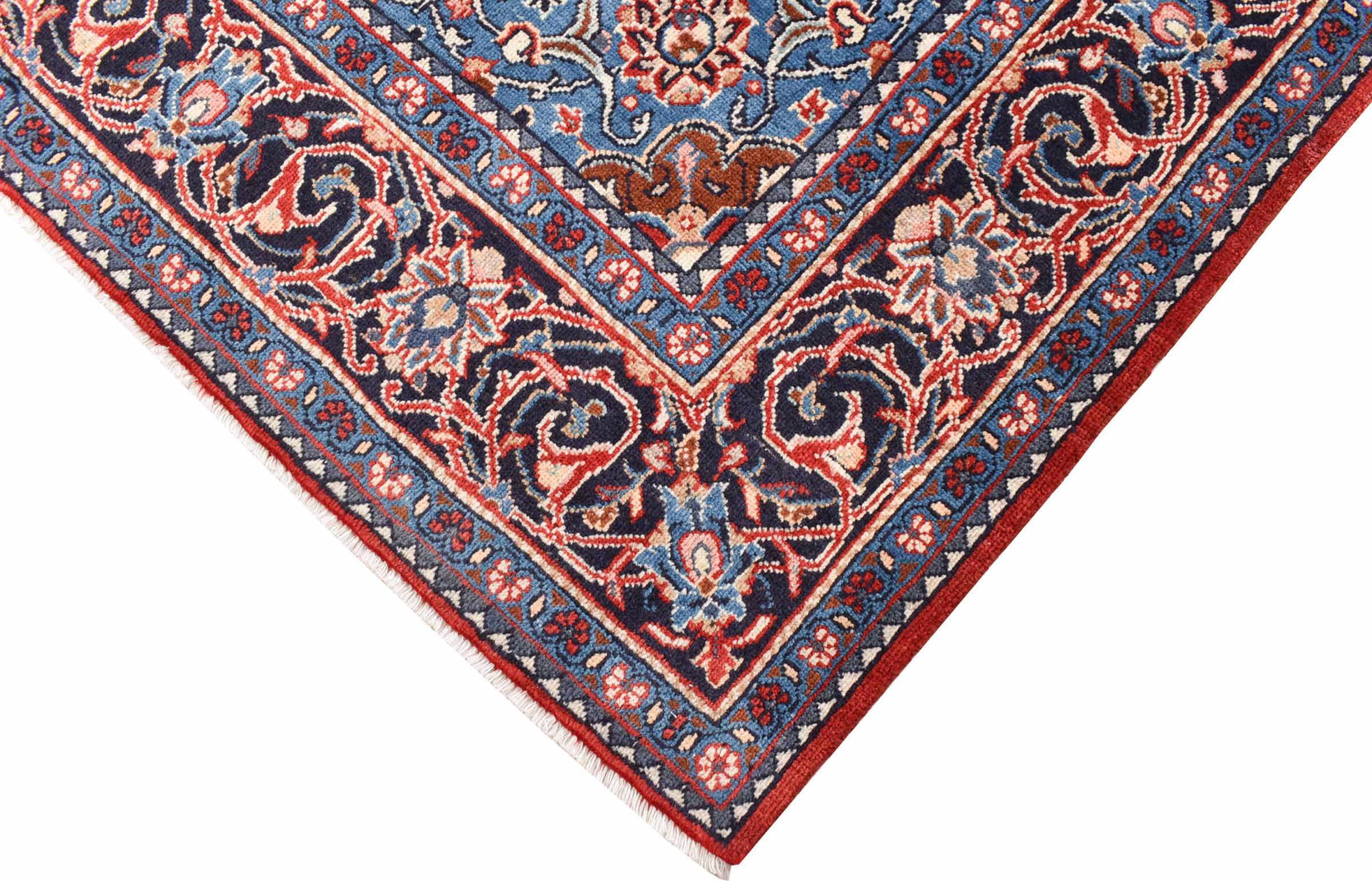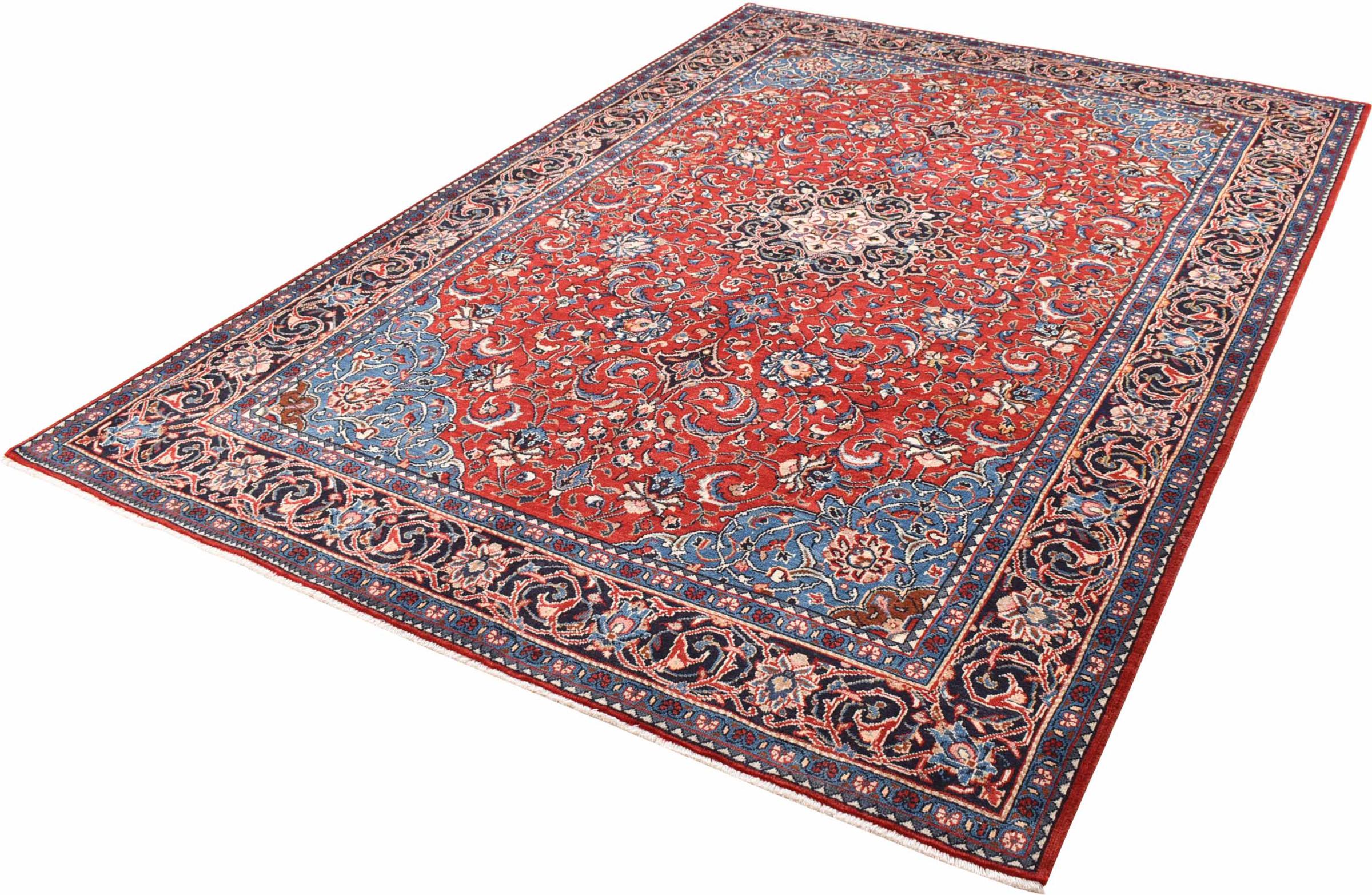 Acest covor oriental provine din proveniența Mahal, care este situat în centrul de vest a Iranului. Designul strălucește într-o schemă de culori prietenoasă, cu culori coordonate armonios. Rama detaliată pune în scenă cu stil motivele fin lucrate în câmpul interior. Ca un veritabil covor persan înnodat manual de calitate robustă, modelul este estetic și durabil în același timp - ideal pentru hol sau camera de zi.
