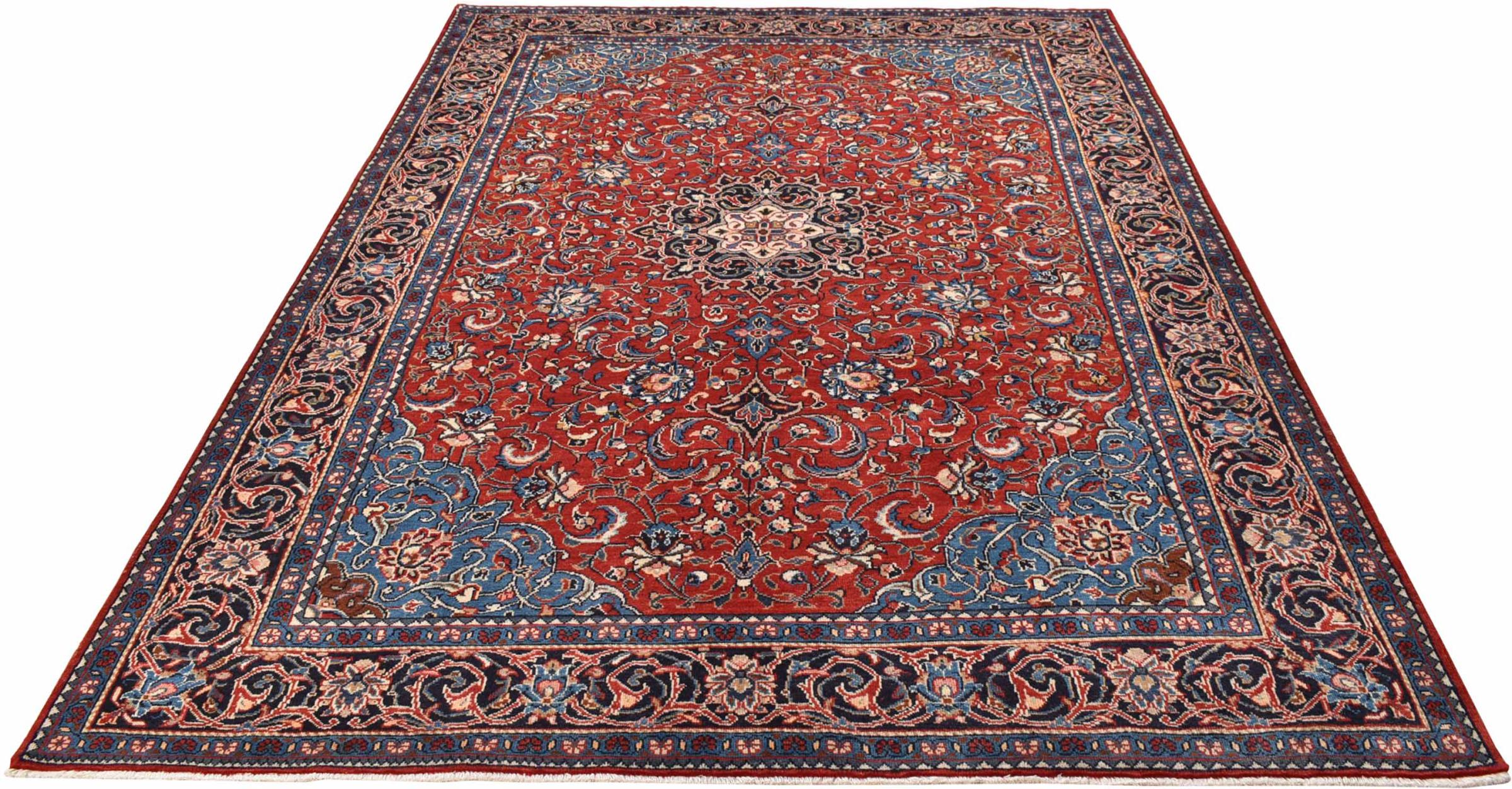 Covor Nr.: 301048004316893 Mărime: 309x210 cm Grosime: cca. 12 mm Noduri: 128 000 - 160 000 / m² Prelucrare: Lucrate de mână Catifeaua: Lână toarsă manual Urzeala: Bumbac Origine: Persien / Iran Vechime: Nou Greutate: cca. 23 kg De asemenea cunoscut ca si Mahalat În stoc: Unic - Doar 1 în stoc