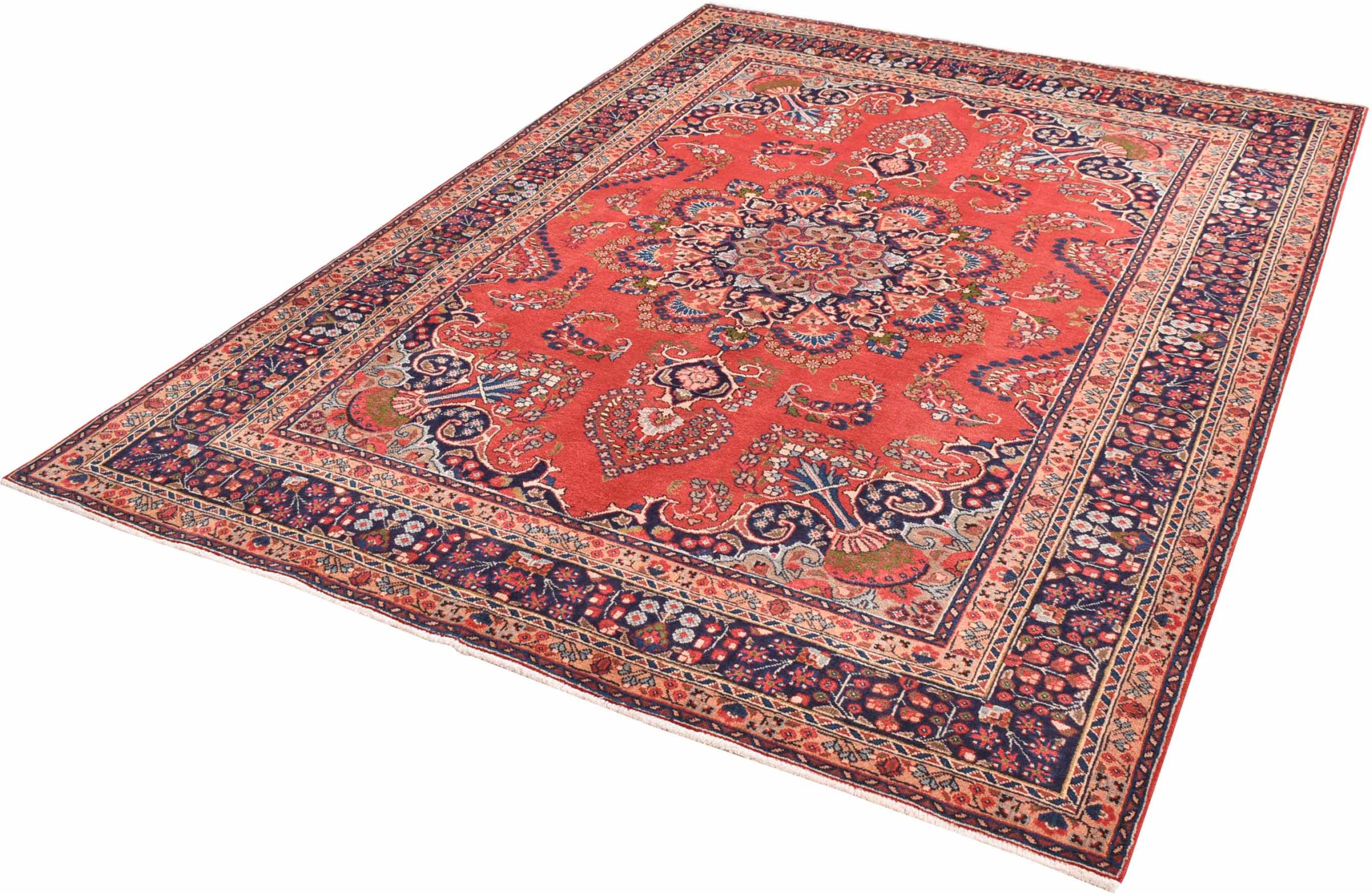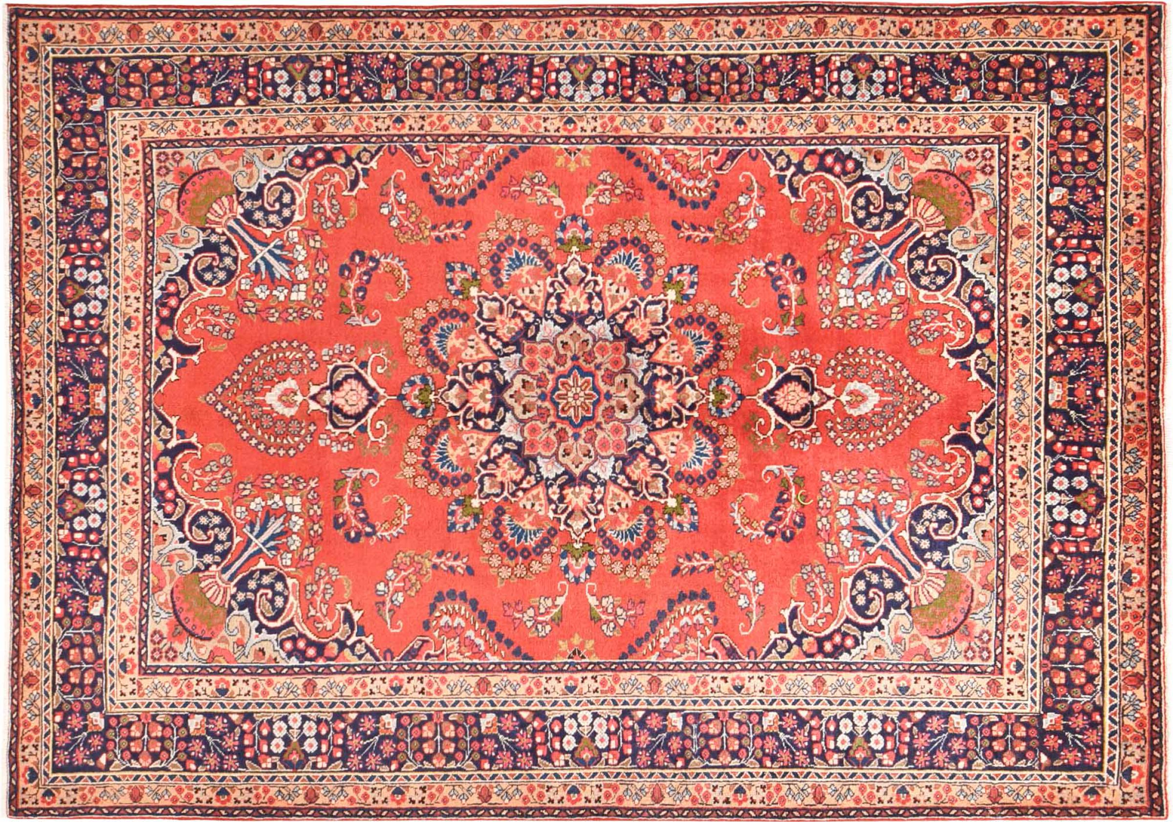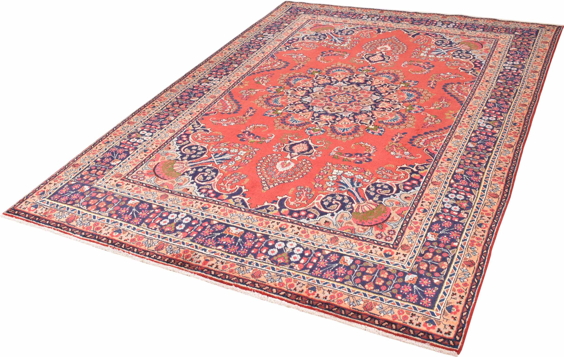 Covor Nr.: 300796003701809 Mărime: 281x199 cm Grosime: cca. 12 mm Noduri: 128 000 - 160 000 / m² Prelucrare: Lucrate de mână Catifeaua: Lână toarsă manual Urzeala: Bumbac Origine: Persien / Iran Vechime: Nou Greutate: cca. 20 kg De asemenea cunoscut ca si Maschad, Meshed În stoc: Unic - Doar 1 în stoc