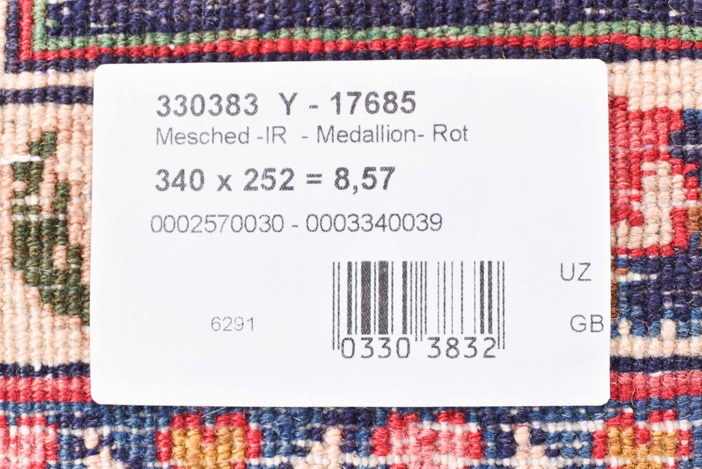 Covor Nr.: 300847006265131 Mărime: 339x253 cm Grosime: cca. 12 mm Noduri: 160 000 - 200 000 / m² Prelucrare: Lucrate de mână Catifeaua: Lână toarsă manual Urzeala: Bumbac Origine: Persien / Iran Vechime: Nou Greutate: cca. 30 kg De asemenea cunoscut ca si Maschad, Meshed În stoc: Unic - Doar 1 în stoc