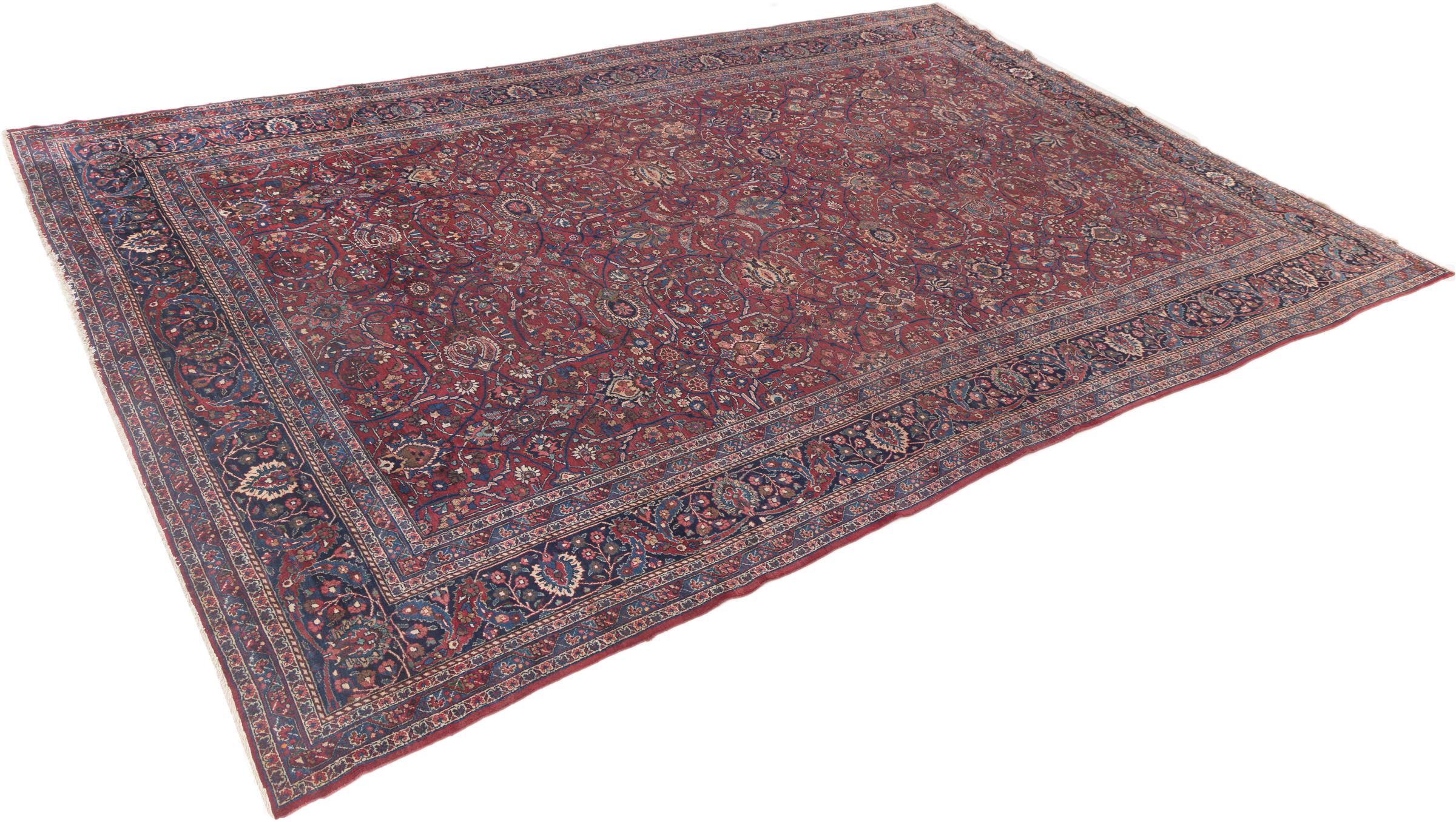 Covor Nr.: 295124001404 Mărime: 500x300 cm Grosime: cca. 12 mm Noduri: 200 000 - 250 000 / m² Prelucrare: Lucrate de mână Catifeaua: Lână toarsă manual Urzeala: Bumbac Stare / Conservare Covorul este uzat puternic şi uniform Origine: Persien / Iran Vechime: antic, vechi de peste 80 de ani Greutate: cca. 53 kg De asemenea cunoscut ca si Maschad, Meshed În stoc: Unic - Doar 1 în stoc