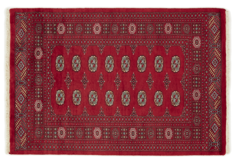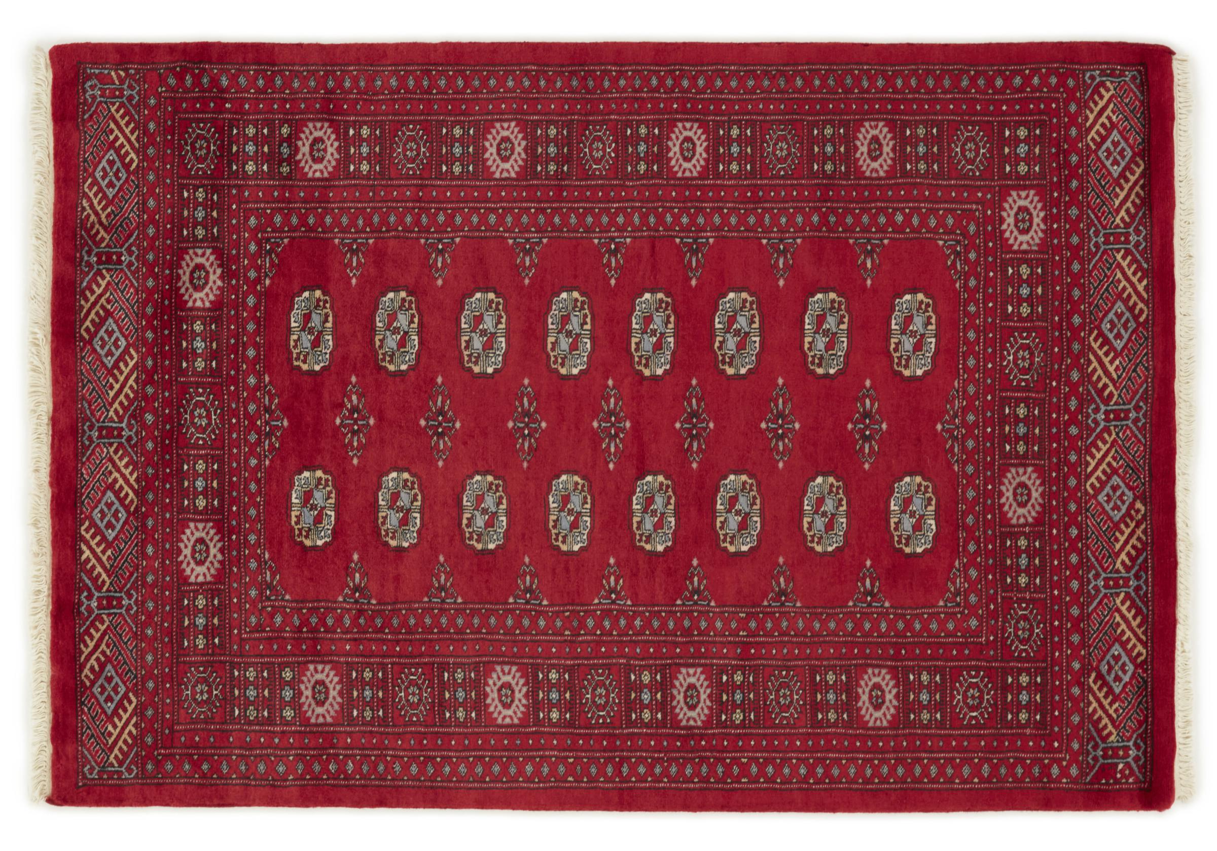 O mare parte din producția de covoare din Pakistan are loc în și în jurul orașelor Lahore și Karachi. Mulți dintre țesătorii de covoare din acea vreme au fugit în Pakistan în timpul războiului cu India și s-au stabilit acolo. Covoarele Pakistan Bukhara înnodate manual sunt deosebit de populare astăzi. Similar cu covoarele orientale afgane, cele pakistaneze sunt, de asemenea, păstrate în tonuri închise și au în mare parte tonuri roșii. Cunoscutul model de picioare de elefant (model octogonal care se repetă) poate fi găsit și pe un pakistanez.