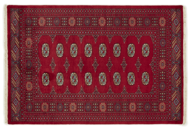 O mare parte din producția de covoare din Pakistan are loc în și în jurul orașelor Lahore și Karachi. Mulți dintre țesătorii de covoare din acea vreme au fugit în Pakistan în timpul războiului cu India și s-au stabilit acolo. Covoarele Pakistan Bukhara înnodate manual sunt deosebit de populare astăzi. Similar cu covoarele orientale afgane, cele pakistaneze sunt, de asemenea, păstrate în tonuri închise și au în mare parte tonuri roșii. Cunoscutul model de picioare de elefant (model octogonal care se repetă) poate fi găsit și pe un pakistanez.