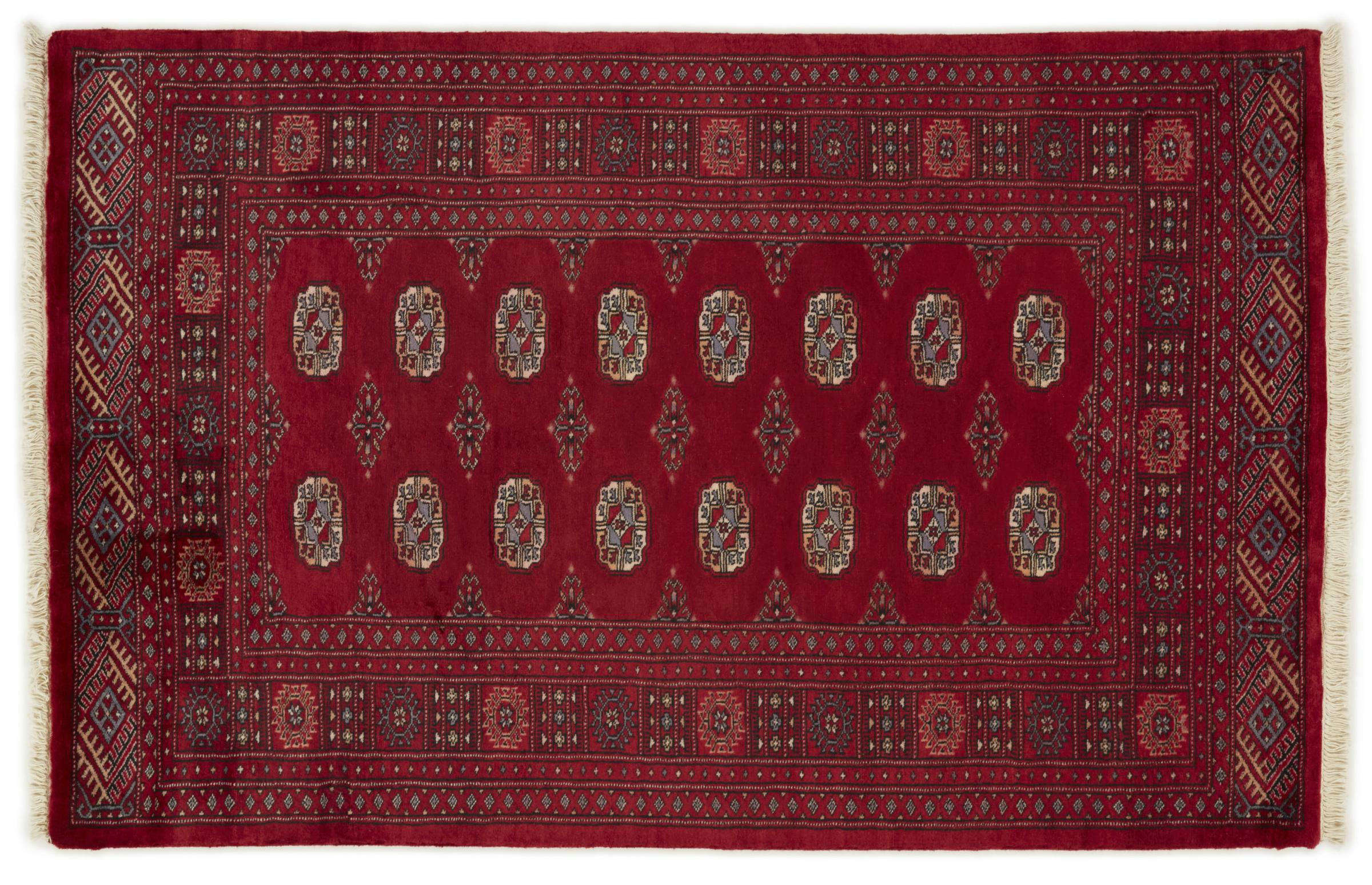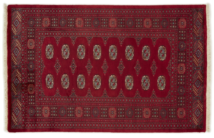 O mare parte din producția de covoare din Pakistan are loc în și în jurul orașelor Lahore și Karachi. Mulți dintre țesătorii de covoare din acea vreme au fugit în Pakistan în timpul războiului cu India și s-au stabilit acolo. Covoarele Pakistan Bukhara înnodate manual sunt deosebit de populare astăzi. Similar cu covoarele orientale afgane, cele pakistaneze sunt, de asemenea, păstrate în tonuri închise și au în mare parte tonuri roșii. Cunoscutul model de picioare de elefant (model octogonal care se repetă) poate fi găsit și pe un pakistanez.