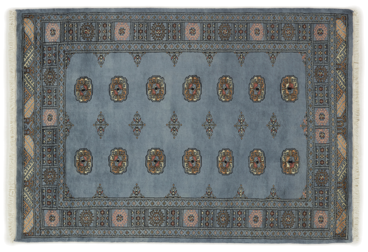 O mare parte din producția de covoare din Pakistan are loc în și în jurul orașelor Lahore și Karachi. Mulți dintre țesătorii de covoare din acea vreme au fugit în Pakistan în timpul războiului cu India și s-au stabilit acolo. Covoarele Pakistan Bukhara înnodate manual sunt deosebit de populare astăzi. Similar cu covoarele orientale afgane, cele pakistaneze sunt, de asemenea, păstrate în tonuri închise și au în mare parte tonuri roșii. Cunoscutul model de picioare de elefant (model octogonal care se repetă) poate fi găsit și pe un pakistanez.