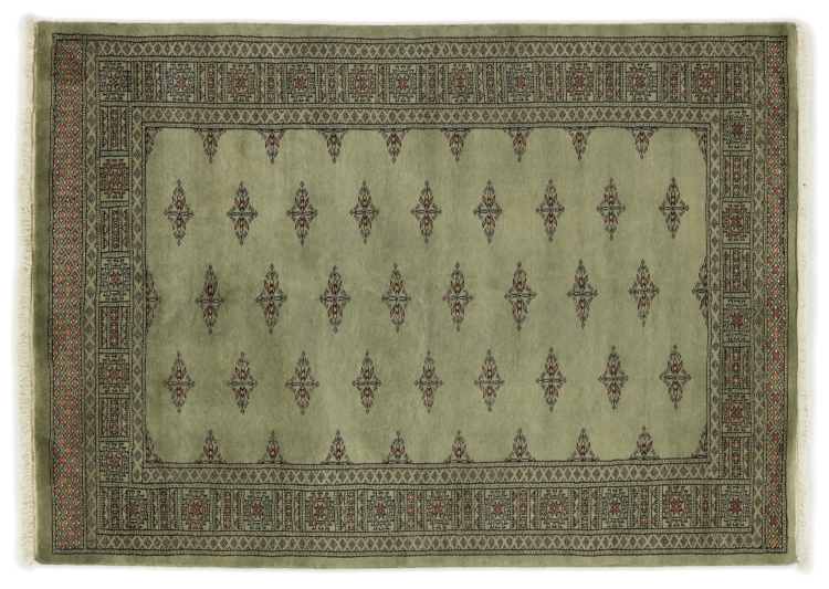 O mare parte din producția de covoare din Pakistan are loc în și în jurul orașelor Lahore și Karachi. Mulți dintre țesătorii de covoare din acea vreme au fugit în Pakistan în timpul războiului cu India și s-au stabilit acolo. Covoarele Pakistan Bukhara înnodate manual sunt deosebit de populare astăzi. Similar cu covoarele orientale afgane, cele pakistaneze sunt, de asemenea, păstrate în tonuri închise și au în mare parte tonuri roșii. Cunoscutul model de picioare de elefant (model octogonal care se repetă) poate fi găsit și pe un pakistanez.