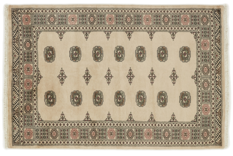O mare parte din producția de covoare din Pakistan are loc în și în jurul orașelor Lahore și Karachi. Mulți dintre țesătorii de covoare din acea vreme au fugit în Pakistan în timpul războiului cu India și s-au stabilit acolo. Covoarele Pakistan Bukhara înnodate manual sunt deosebit de populare astăzi. Similar cu covoarele orientale afgane, cele pakistaneze sunt, de asemenea, păstrate în tonuri închise și au în mare parte tonuri roșii. Cunoscutul model de picioare de elefant (model octogonal care se repetă) poate fi găsit și pe un pakistanez.