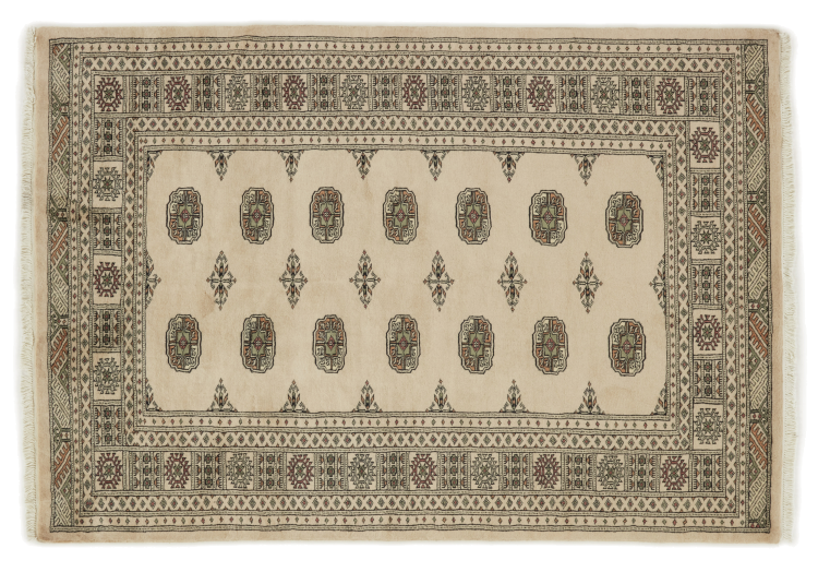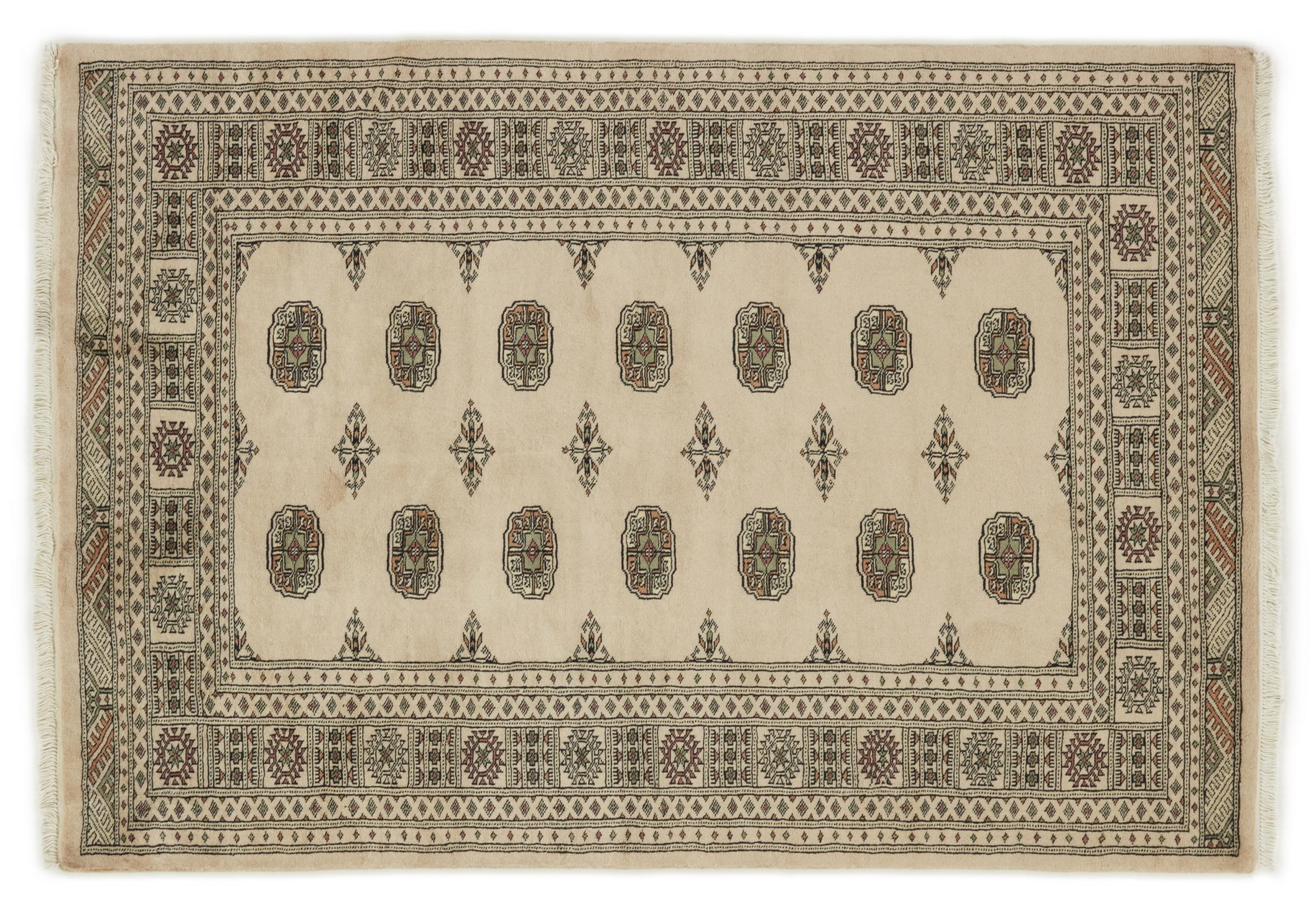 O mare parte din producția de covoare din Pakistan are loc în și în jurul orașelor Lahore și Karachi. Mulți dintre țesătorii de covoare din acea vreme au fugit în Pakistan în timpul războiului cu India și s-au stabilit acolo. Covoarele Pakistan Bukhara înnodate manual sunt deosebit de populare astăzi. Similar cu covoarele orientale afgane, cele pakistaneze sunt, de asemenea, păstrate în tonuri închise și au în mare parte tonuri roșii. Cunoscutul model de picioare de elefant (model octogonal care se repetă) poate fi găsit și pe un pakistanez.