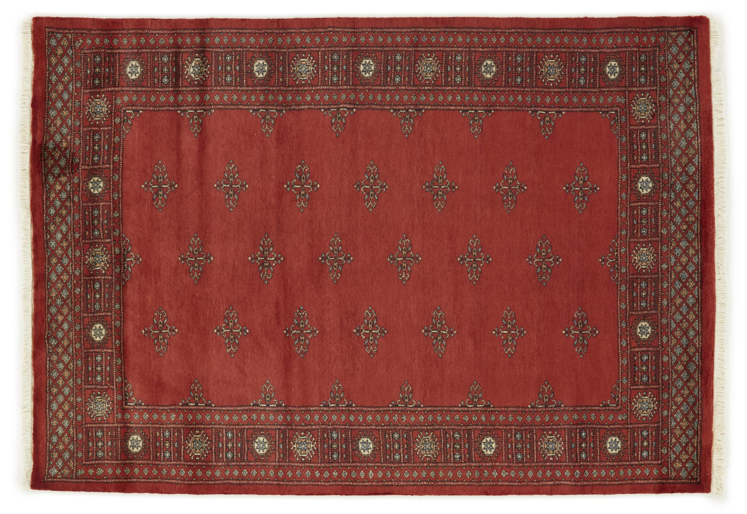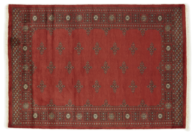 O mare parte din producția de covoare din Pakistan are loc în și în jurul orașelor Lahore și Karachi. Mulți dintre țesătorii de covoare din acea vreme au fugit în Pakistan în timpul războiului cu India și s-au stabilit acolo. Covoarele Pakistan Bukhara înnodate manual sunt deosebit de populare astăzi. Similar cu covoarele orientale afgane, cele pakistaneze sunt, de asemenea, păstrate în tonuri închise și au în mare parte tonuri roșii. Cunoscutul model de picioare de elefant (model octogonal care se repetă) poate fi găsit și pe un pakistanez.
