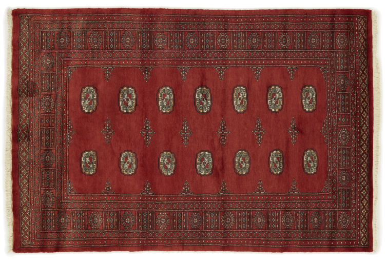 O mare parte din producția de covoare din Pakistan are loc în și în jurul orașelor Lahore și Karachi. Mulți dintre țesătorii de covoare din acea vreme au fugit în Pakistan în timpul războiului cu India și s-au stabilit acolo. Covoarele Pakistan Bukhara înnodate manual sunt deosebit de populare astăzi. Similar cu covoarele orientale afgane, cele pakistaneze sunt, de asemenea, păstrate în tonuri închise și au în mare parte tonuri roșii. Cunoscutul model de picioare de elefant (model octogonal care se repetă) poate fi găsit și pe un pakistanez.