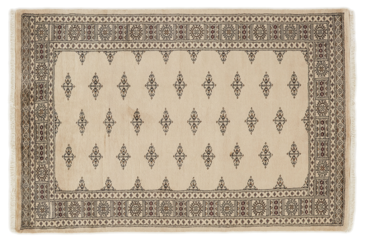 O mare parte din producția de covoare din Pakistan are loc în și în jurul orașelor Lahore și Karachi. Mulți dintre țesătorii de covoare din acea vreme au fugit în Pakistan în timpul războiului cu India și s-au stabilit acolo. Covoarele Pakistan Bukhara înnodate manual sunt deosebit de populare astăzi. Similar cu covoarele orientale afgane, cele pakistaneze sunt, de asemenea, păstrate în tonuri închise și au în mare parte tonuri roșii. Cunoscutul model de picioare de elefant (model octogonal care se repetă) poate fi găsit și pe un pakistanez.